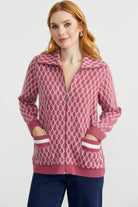 Renk kombinli, şal yaka triko hırka yüksek oranda yün içermektedir. Fermuar kapamalı. Cepli.
