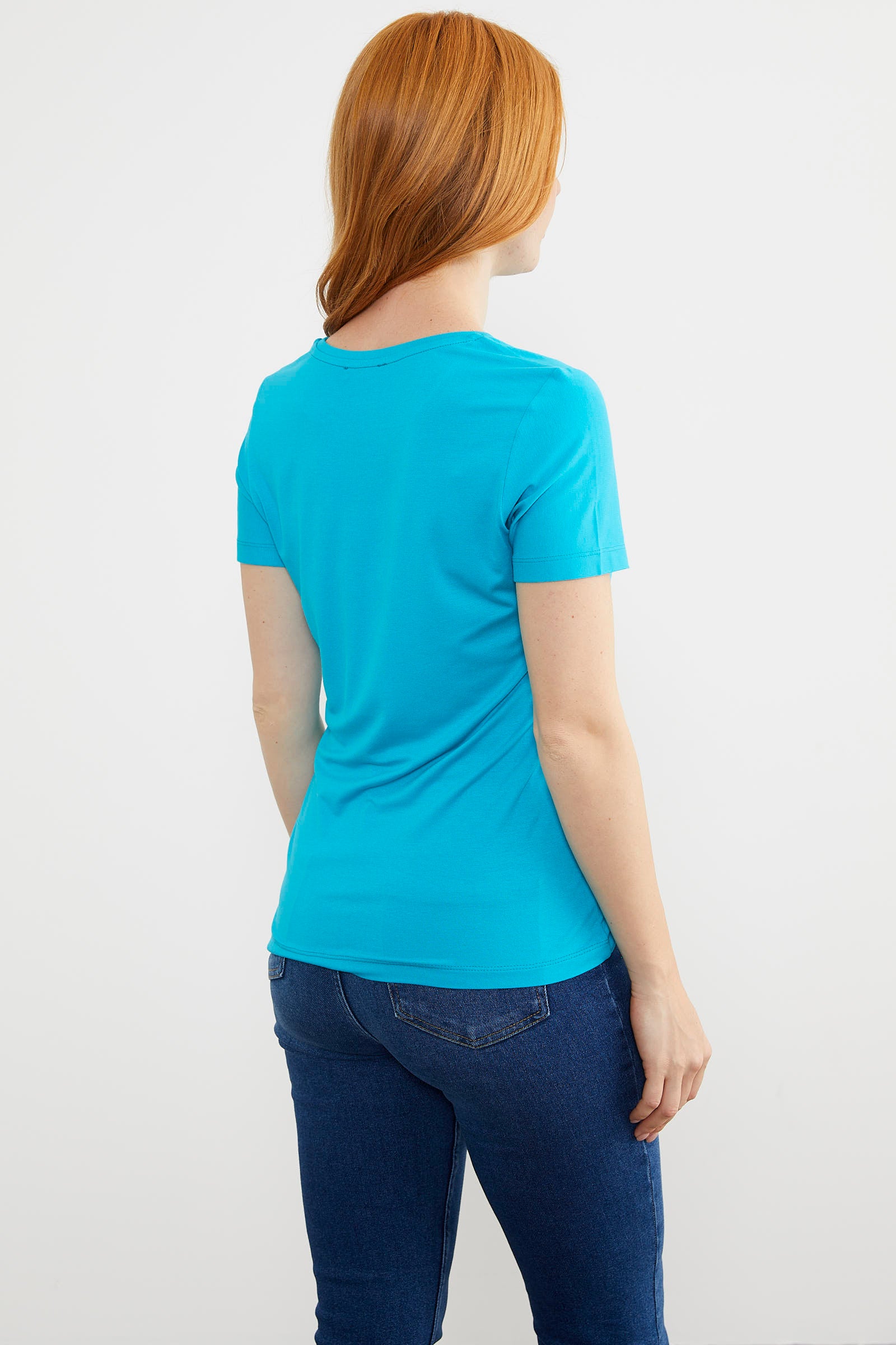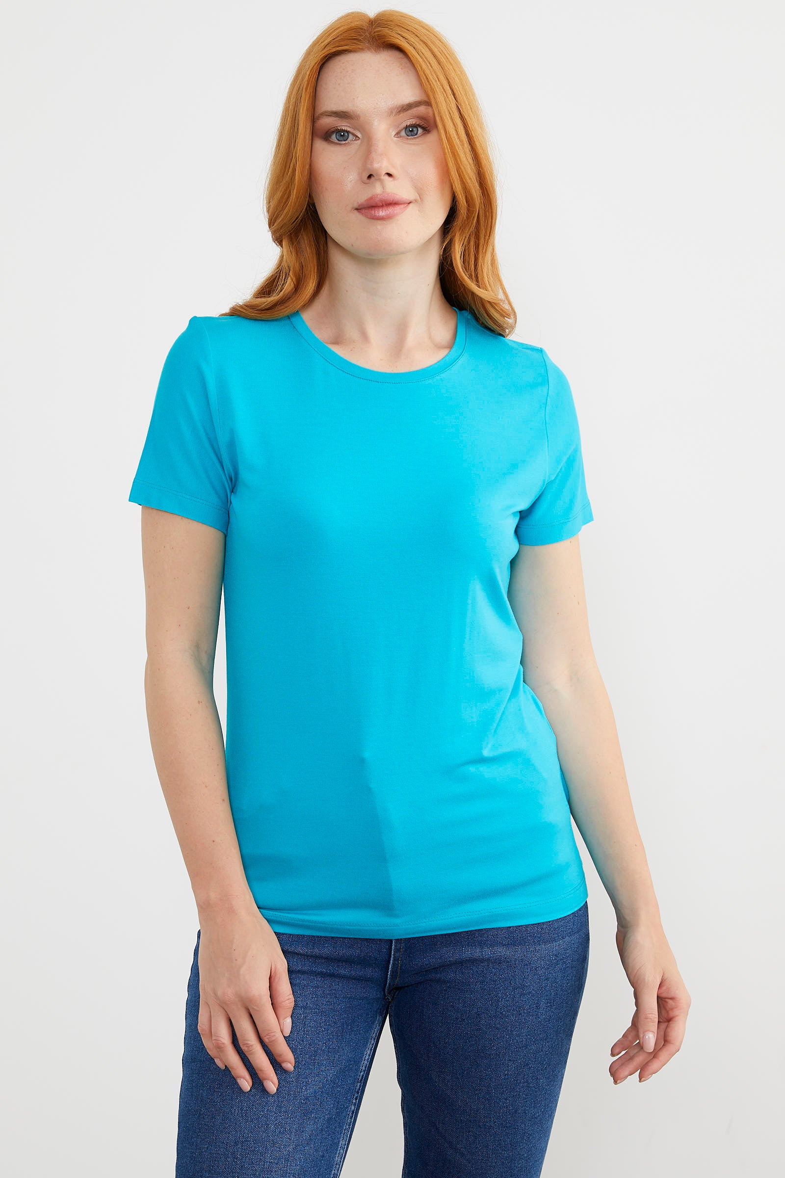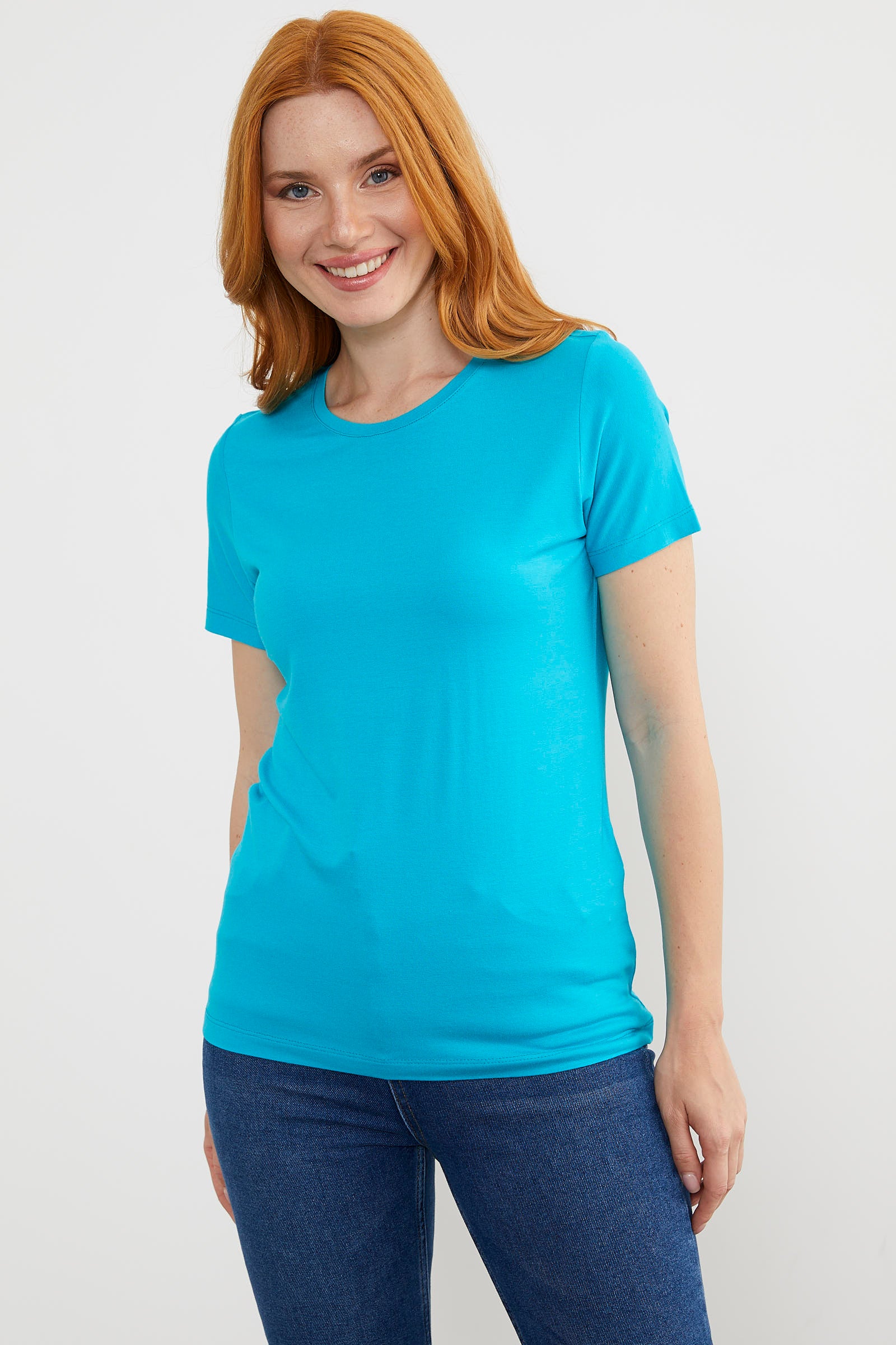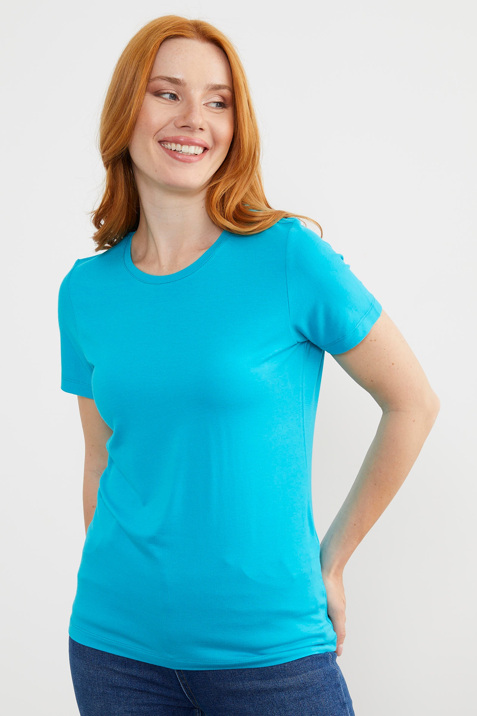 Crew Neck Short Sleeve Basic T-Shirt - Turquoise