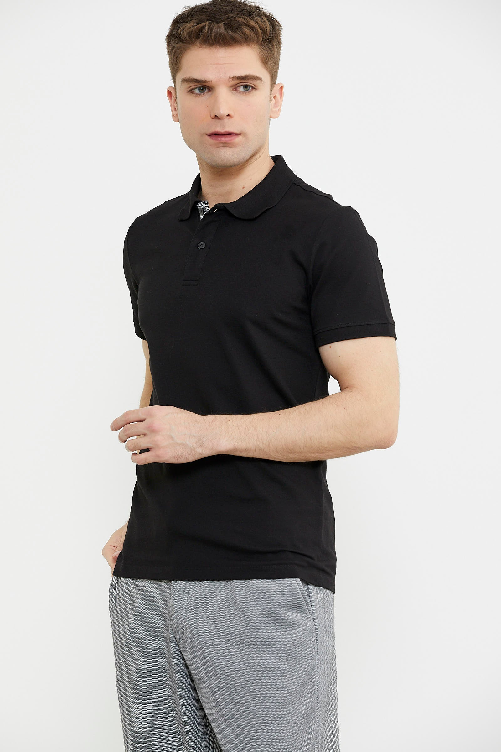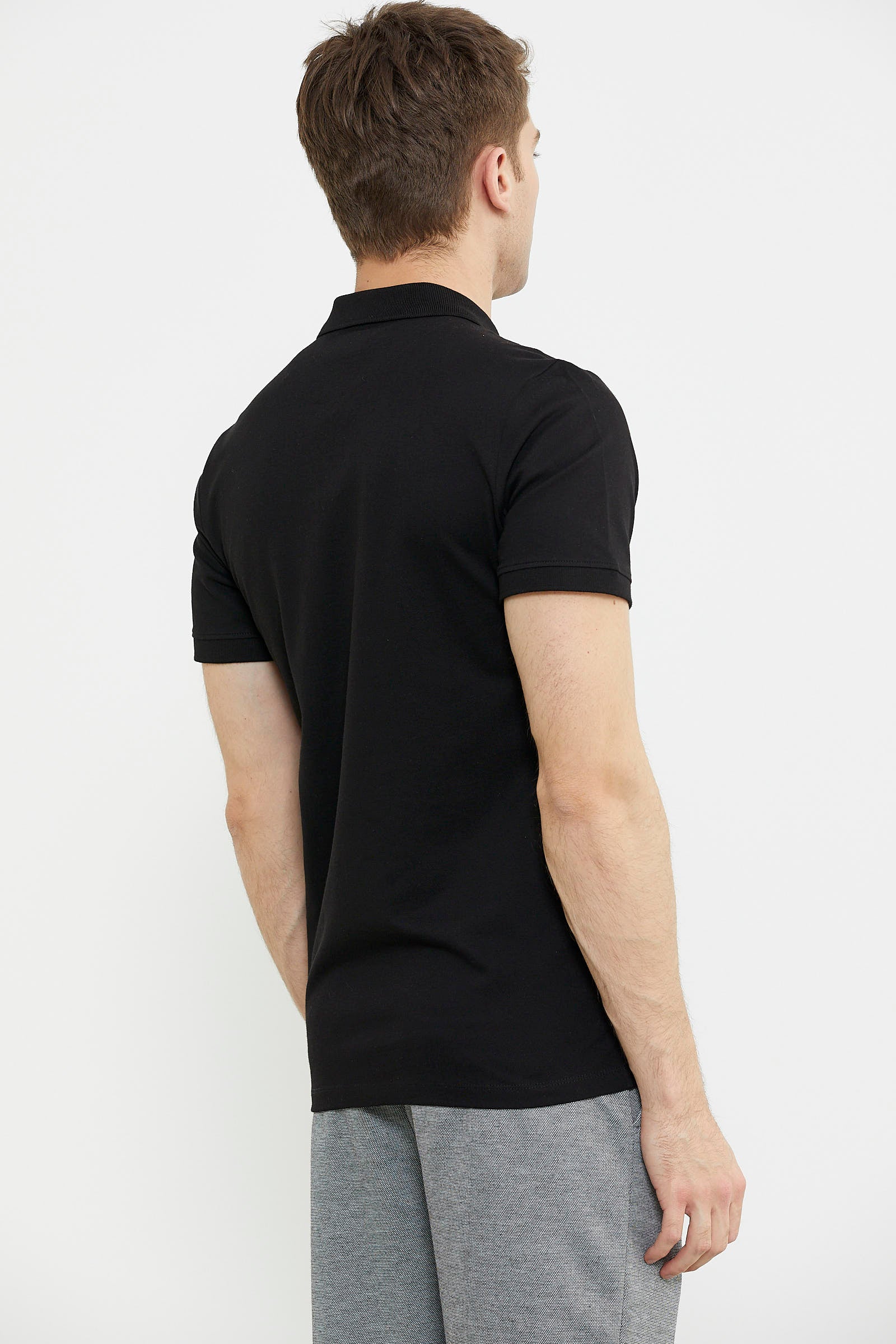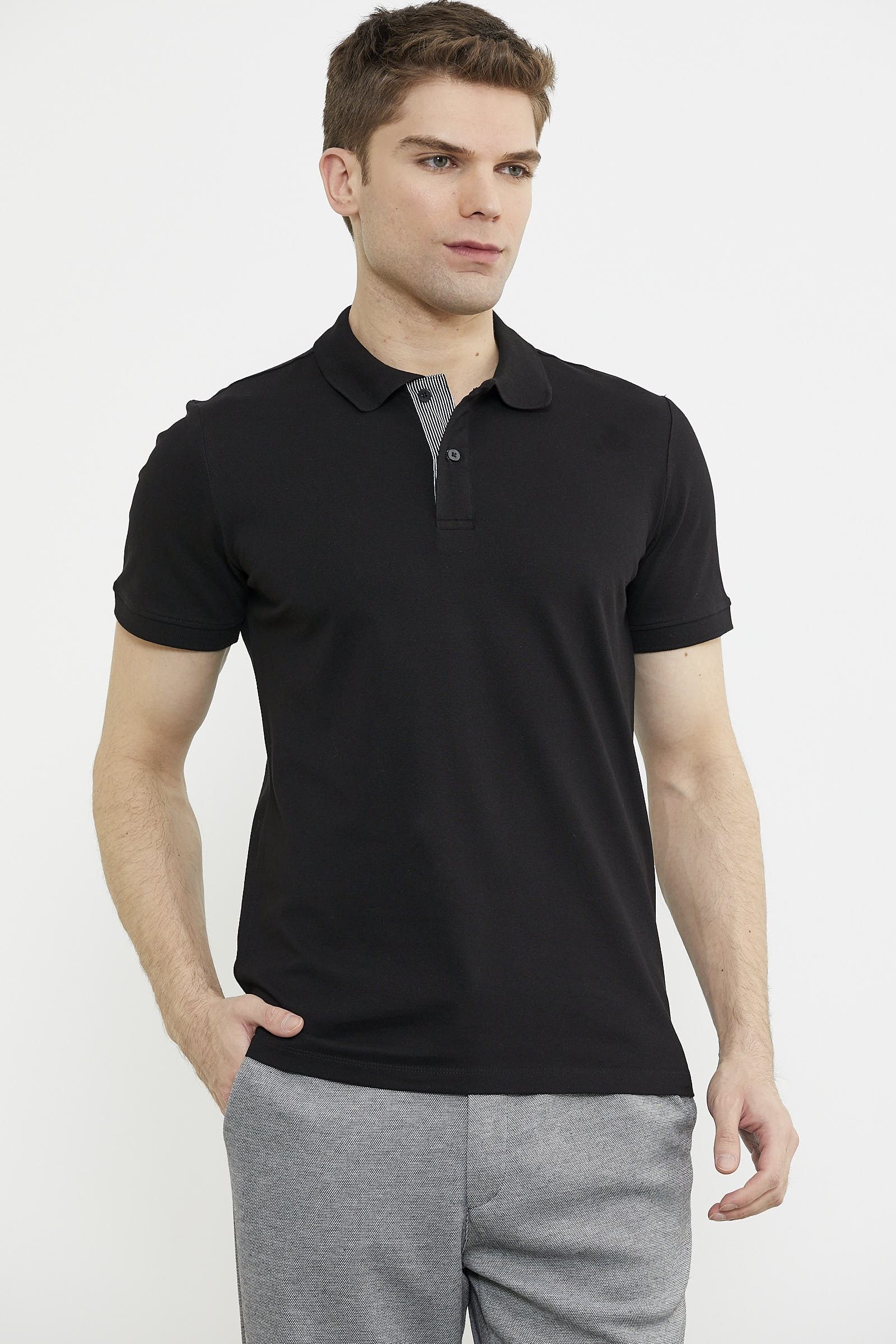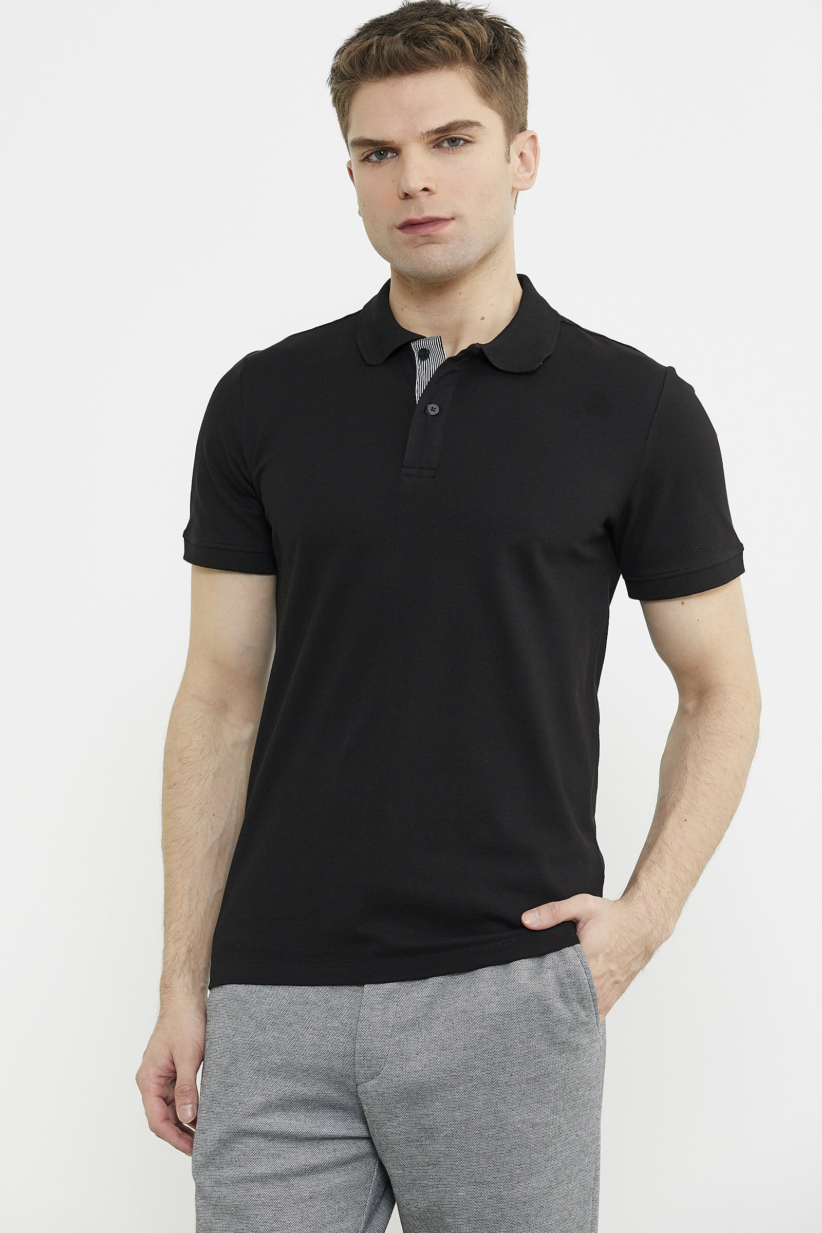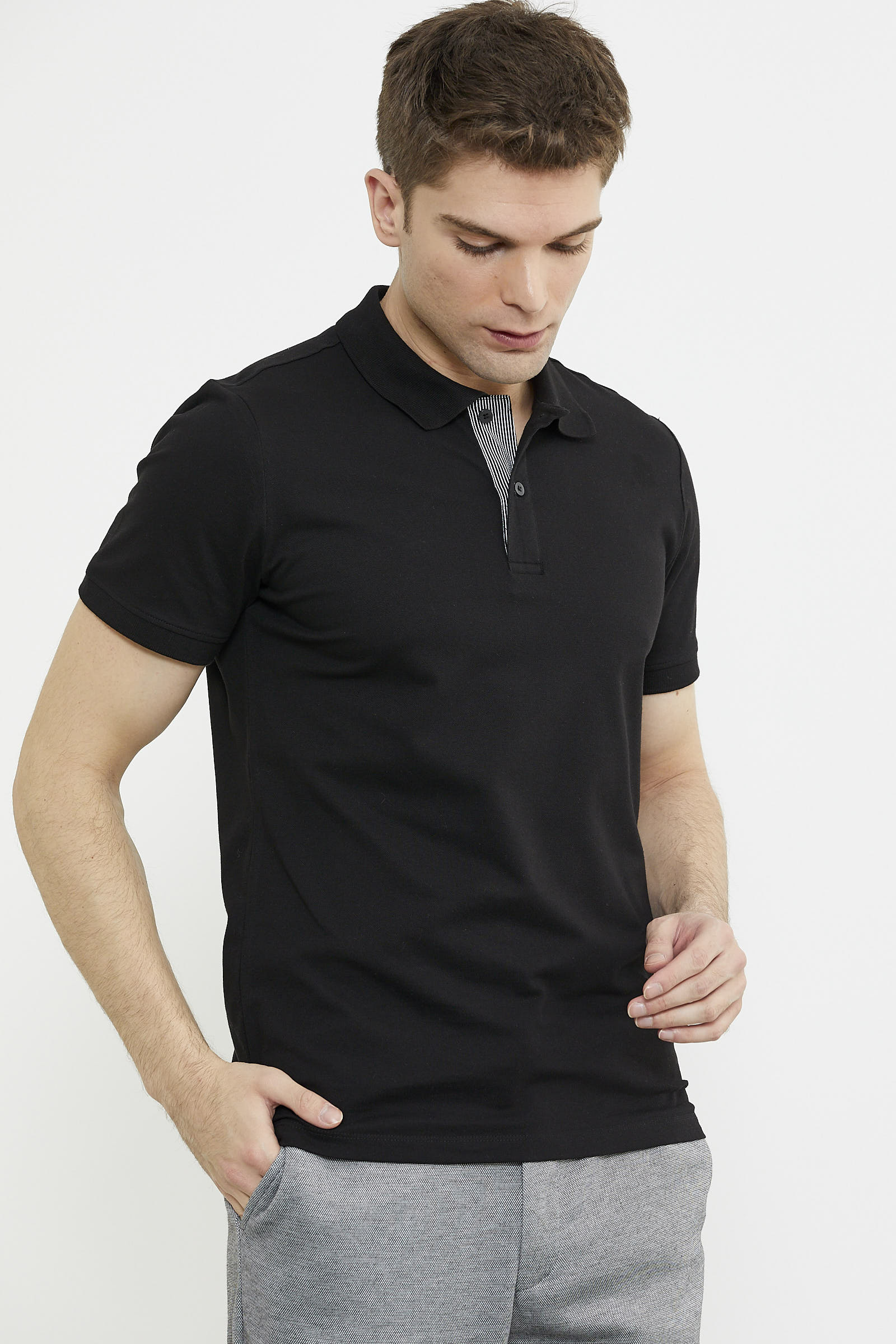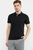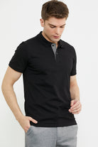 Detailed Polo Collar Short Sleeve T-Shirt - Black