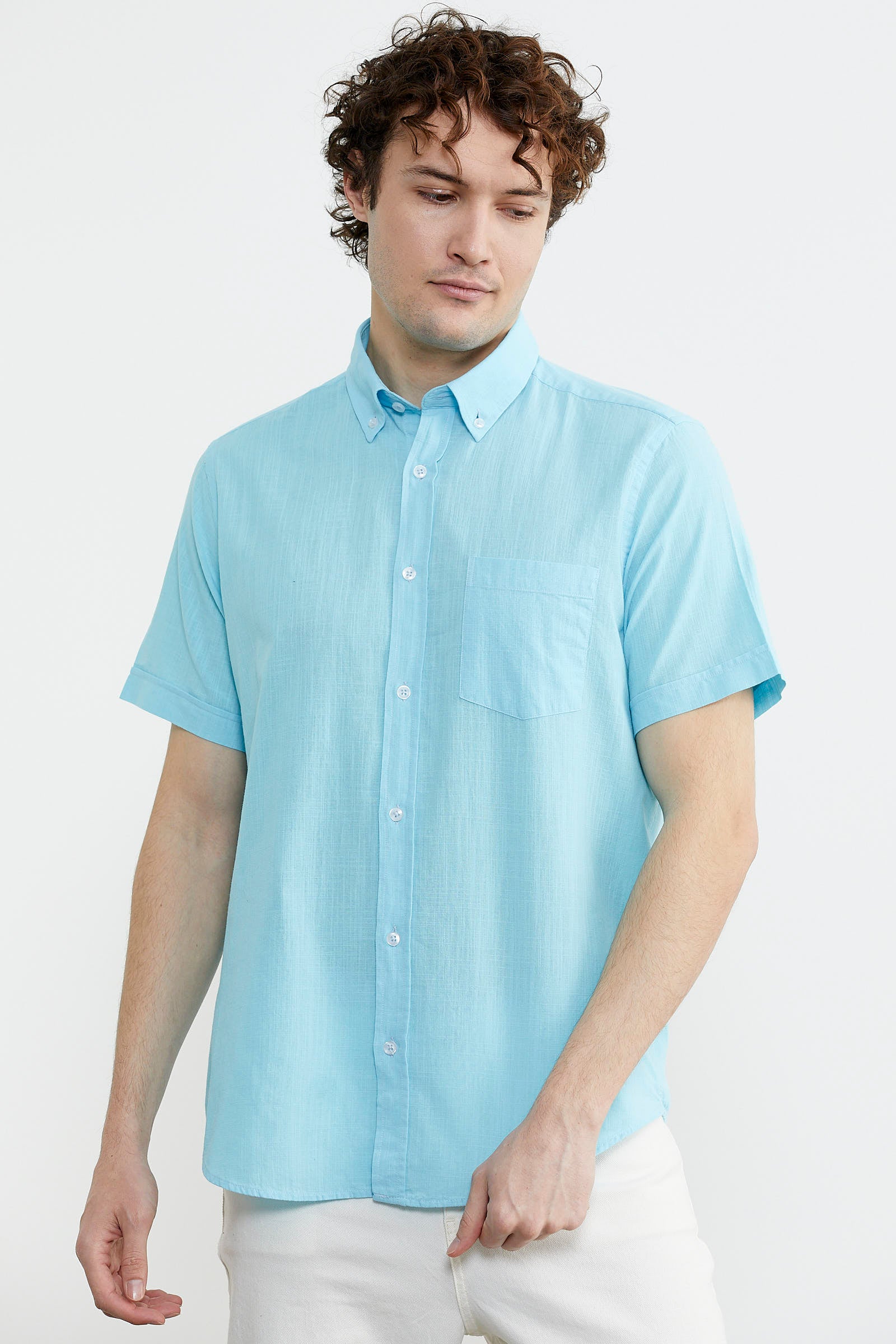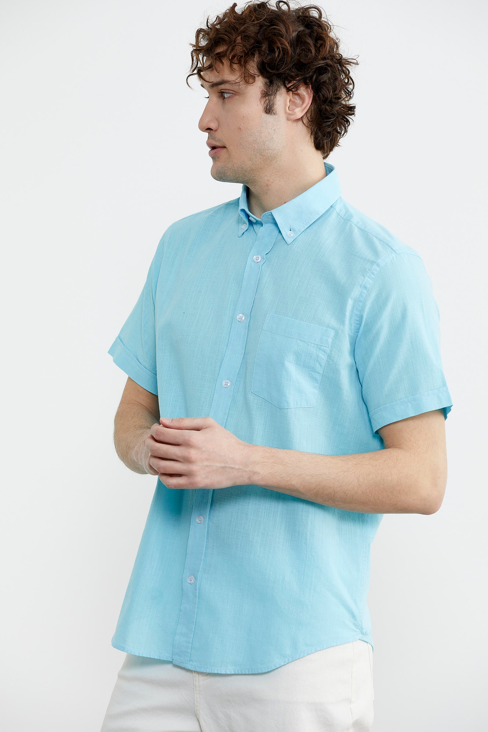 Short Sleeve Pocket Summer Shirt - Turquoise