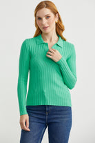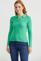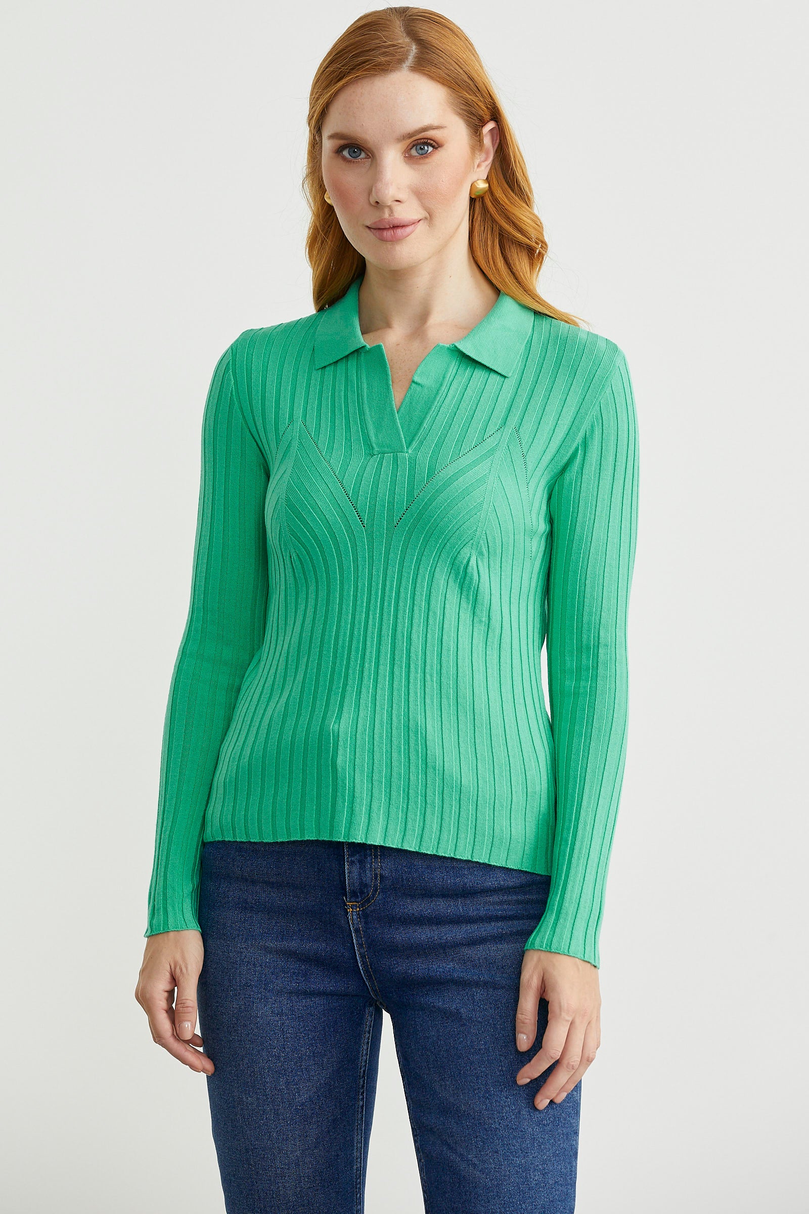 Polo Yaka Fitilli Triko Kazak - Yeşil