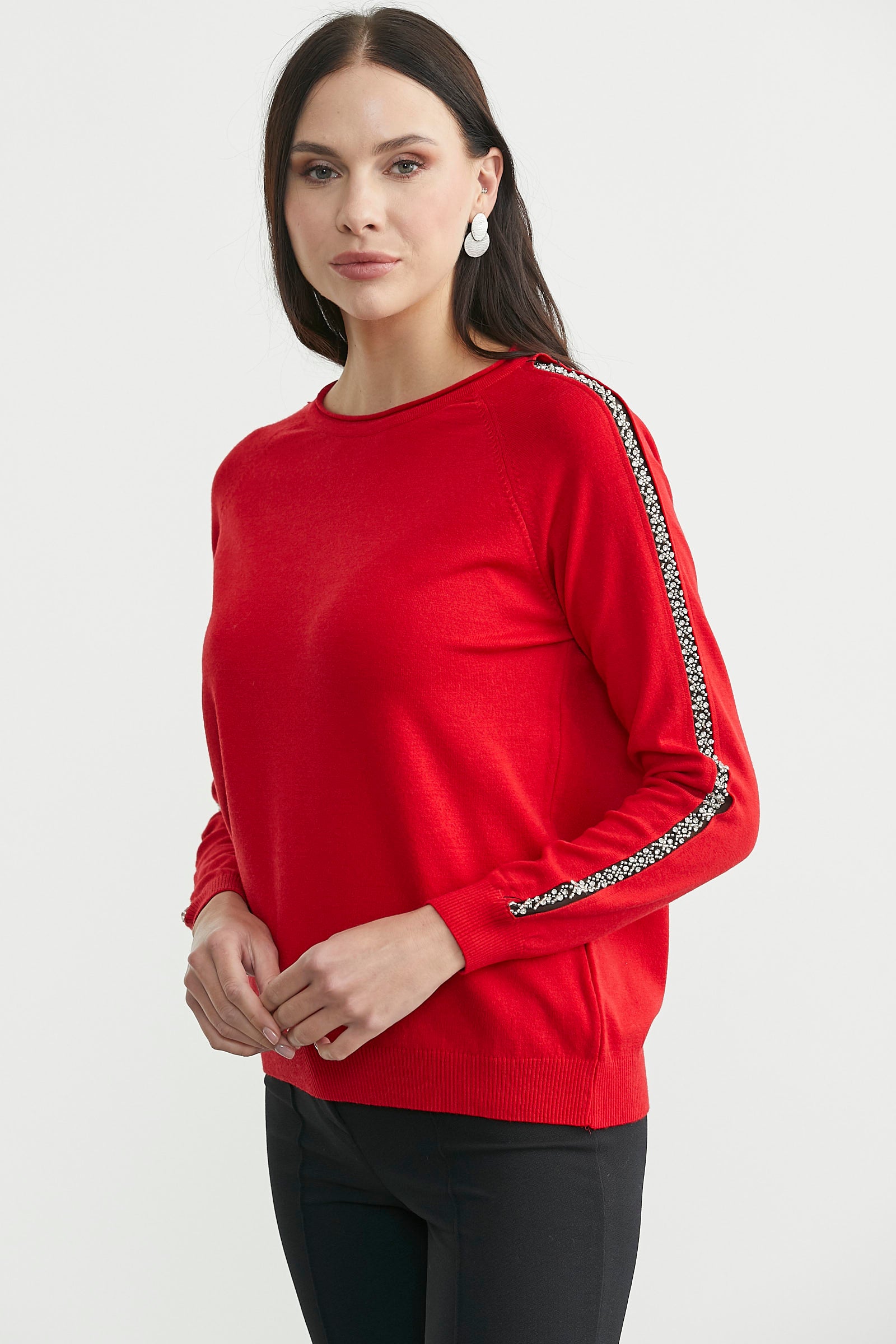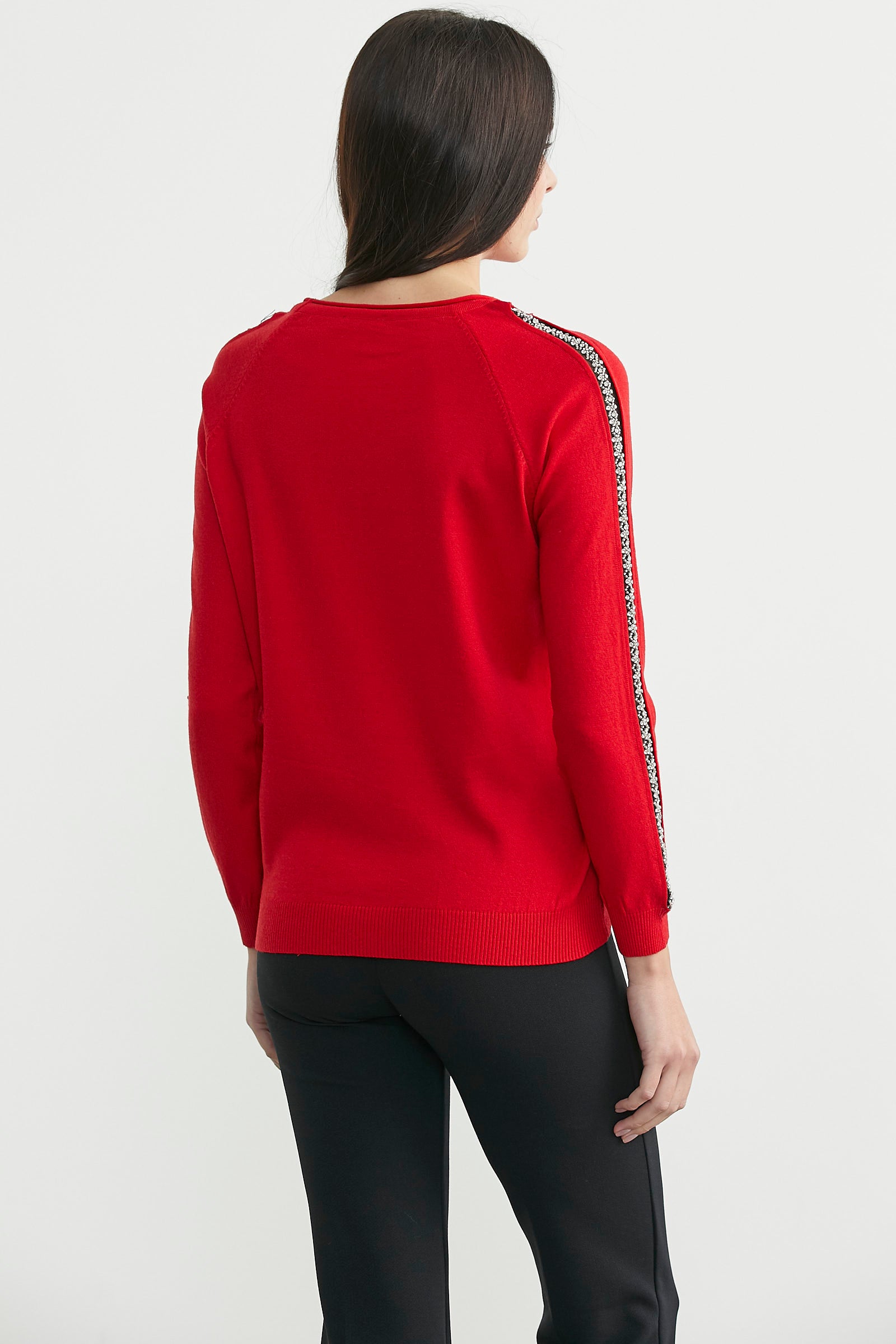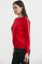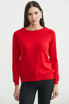 Yuvarlak Yaka Kol Detaylı Triko Kazak - Kırmızı