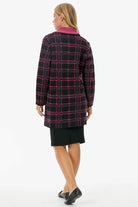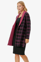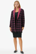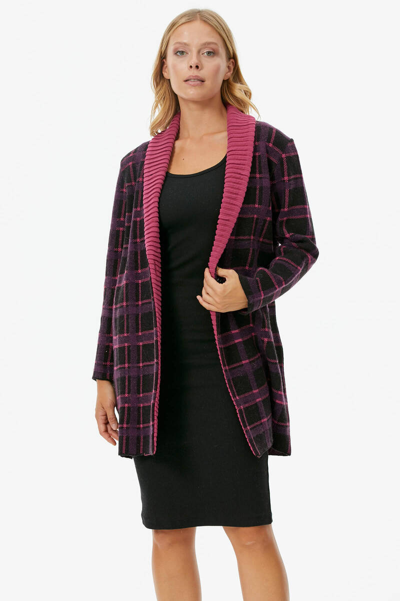Shawl Collar Plaid Pattern Knitwear Long Jacket - Black