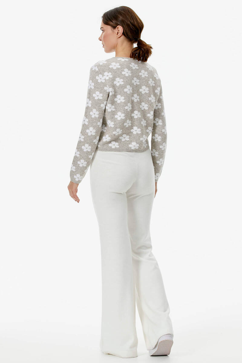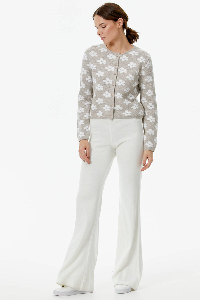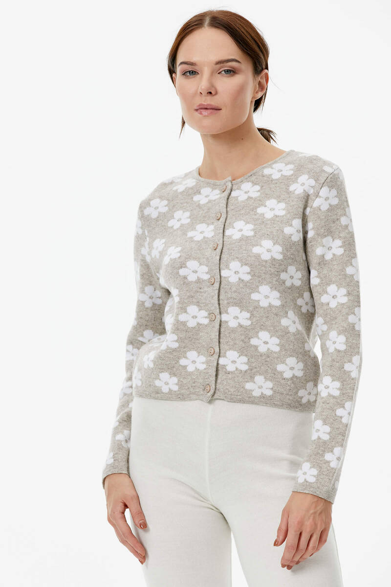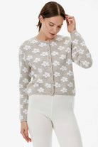 Zero Collar Buttoned Floral Patterned Knitwear Cardigan - Mink