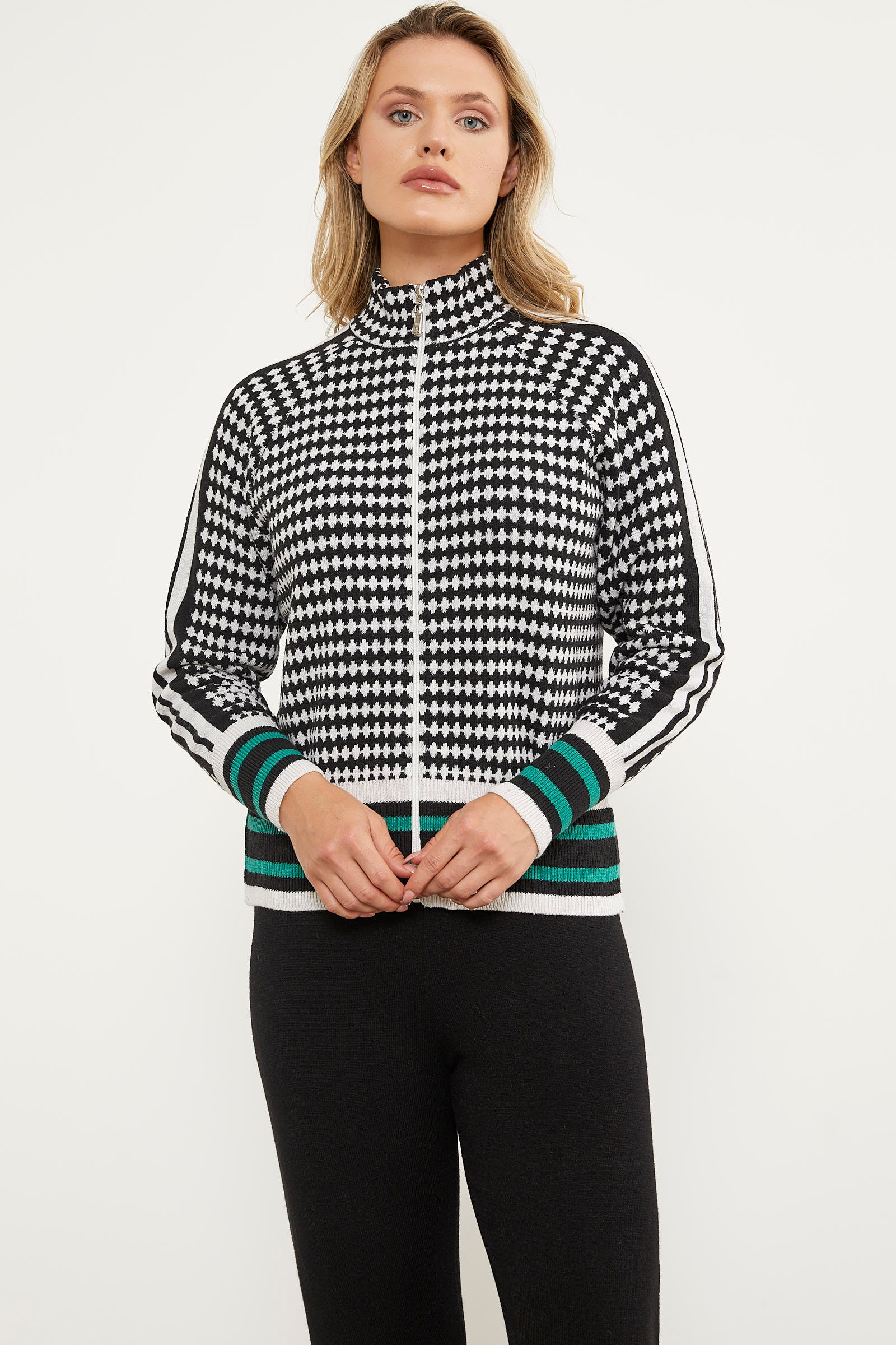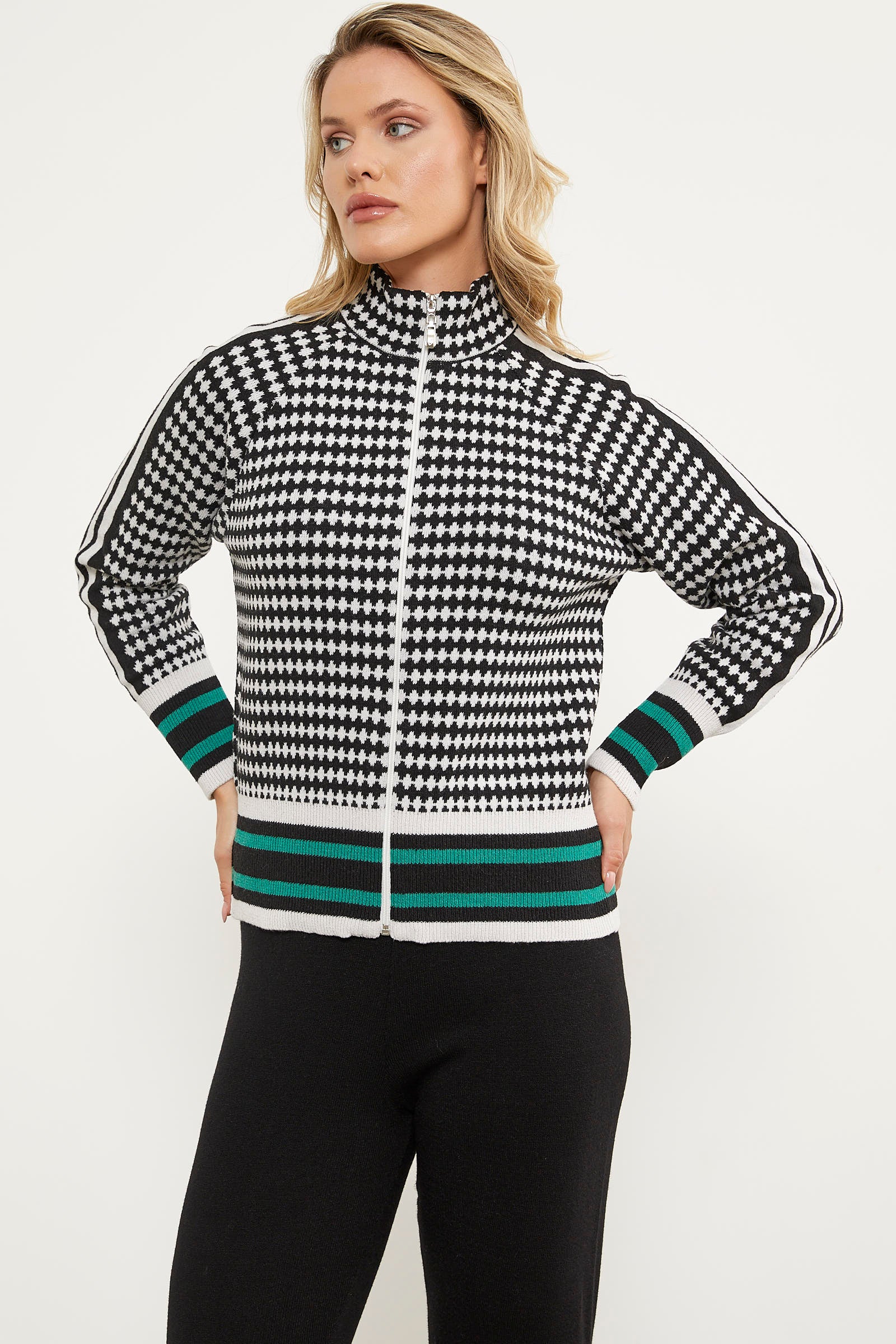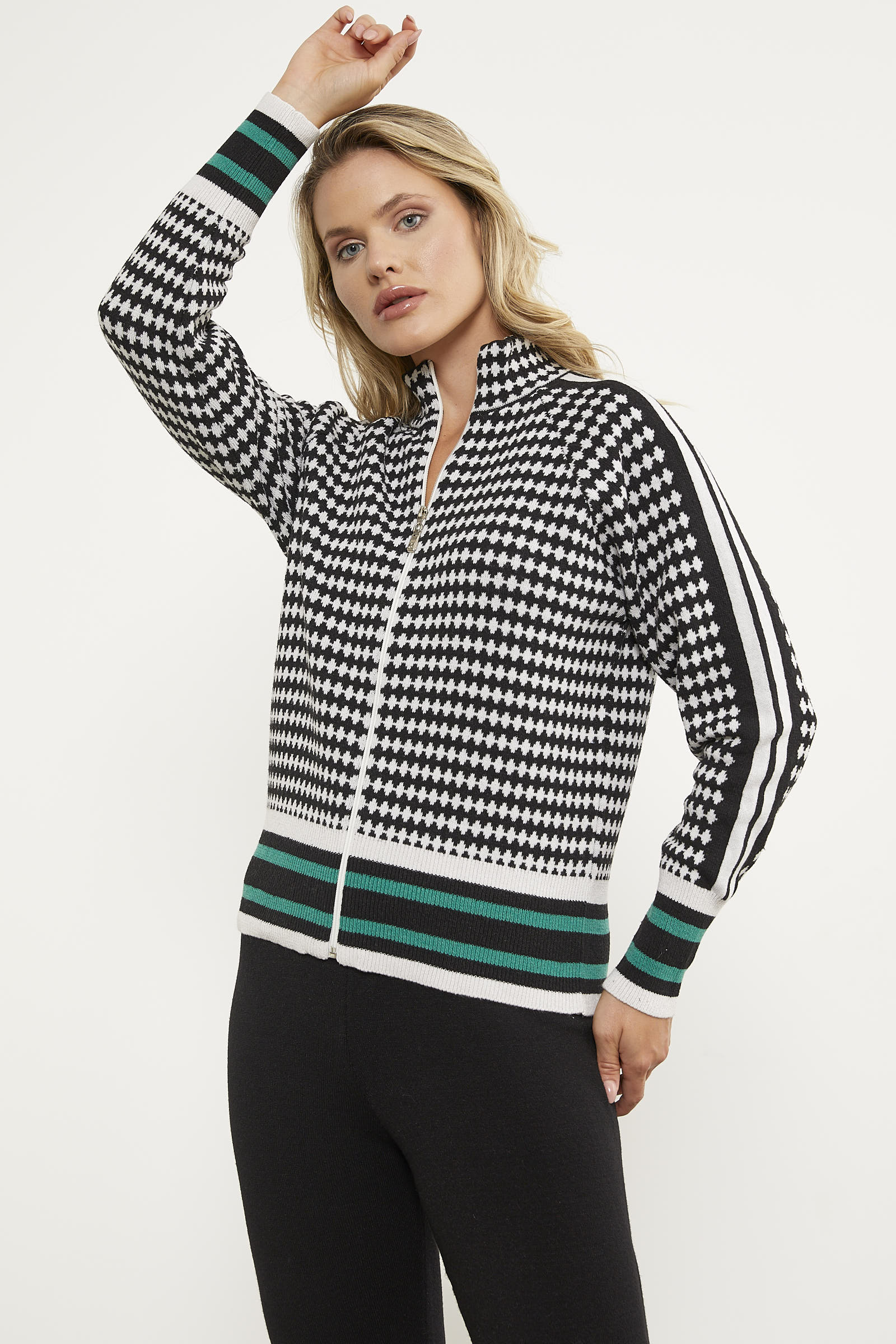 Knitwear cardigan with a crew neck, honeycomb pattern, sleeve stripe and button accessories. You will love the cardigan where you can freely reflect your sporty personality. You can create free combinations both at work and in your daily life.