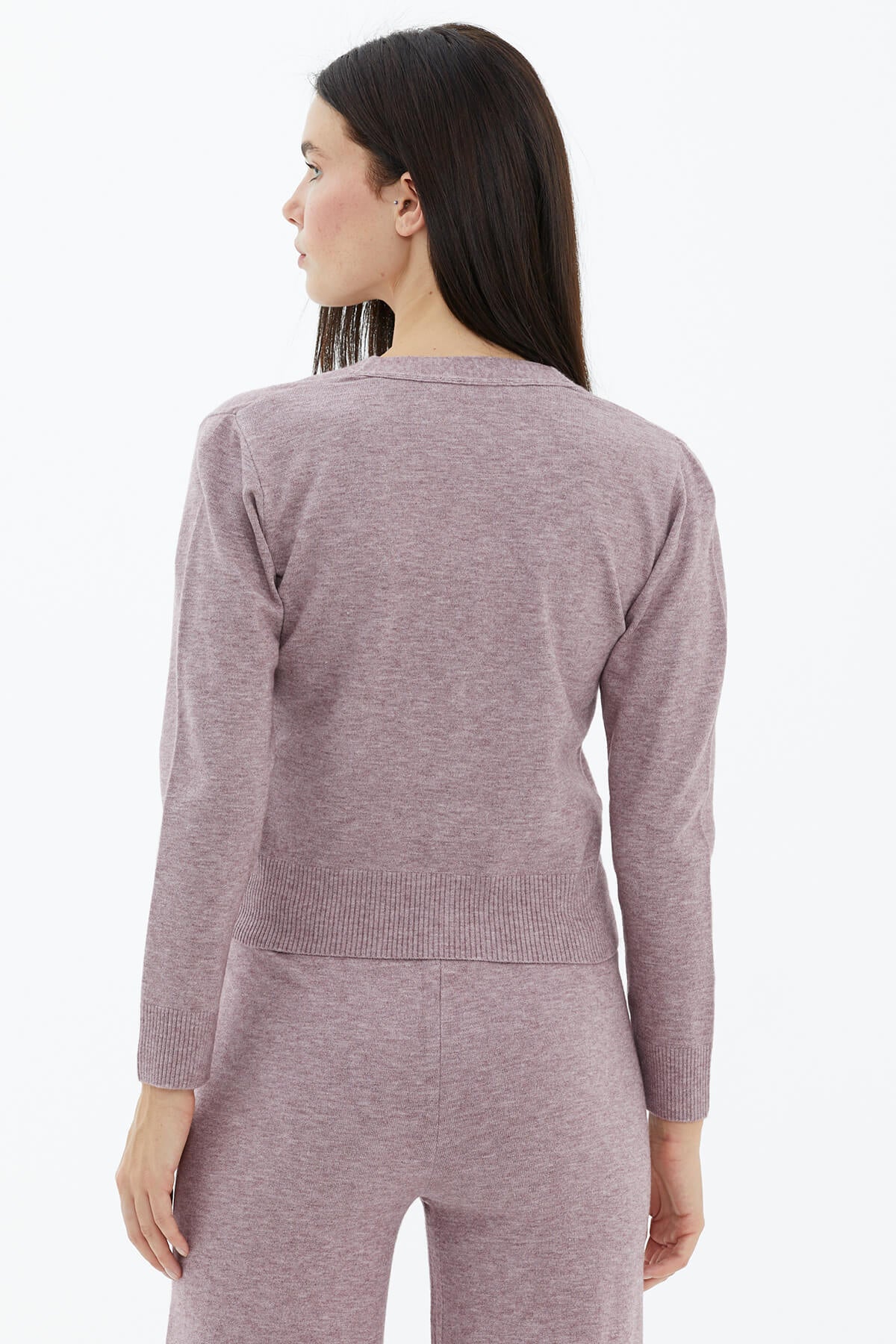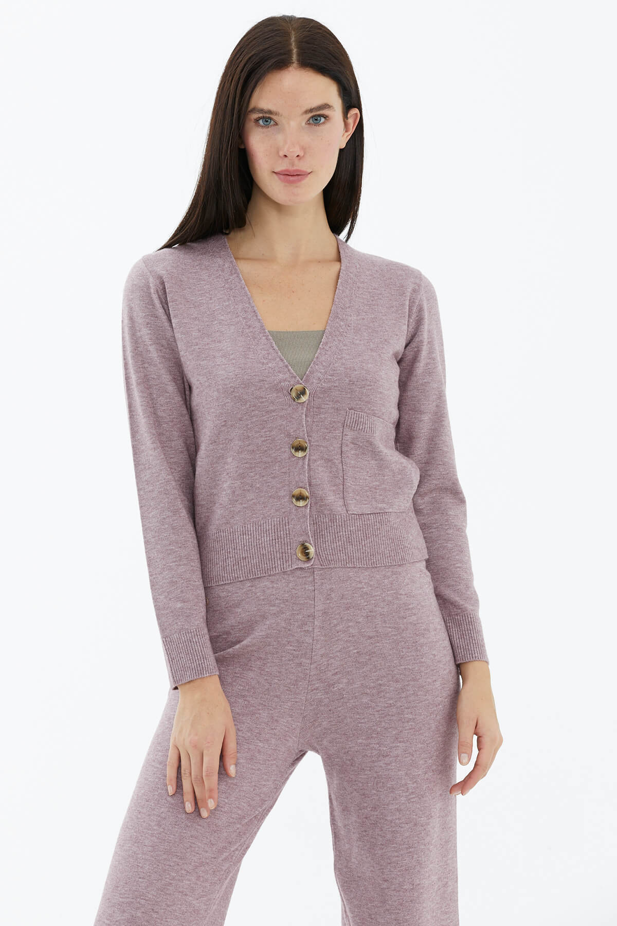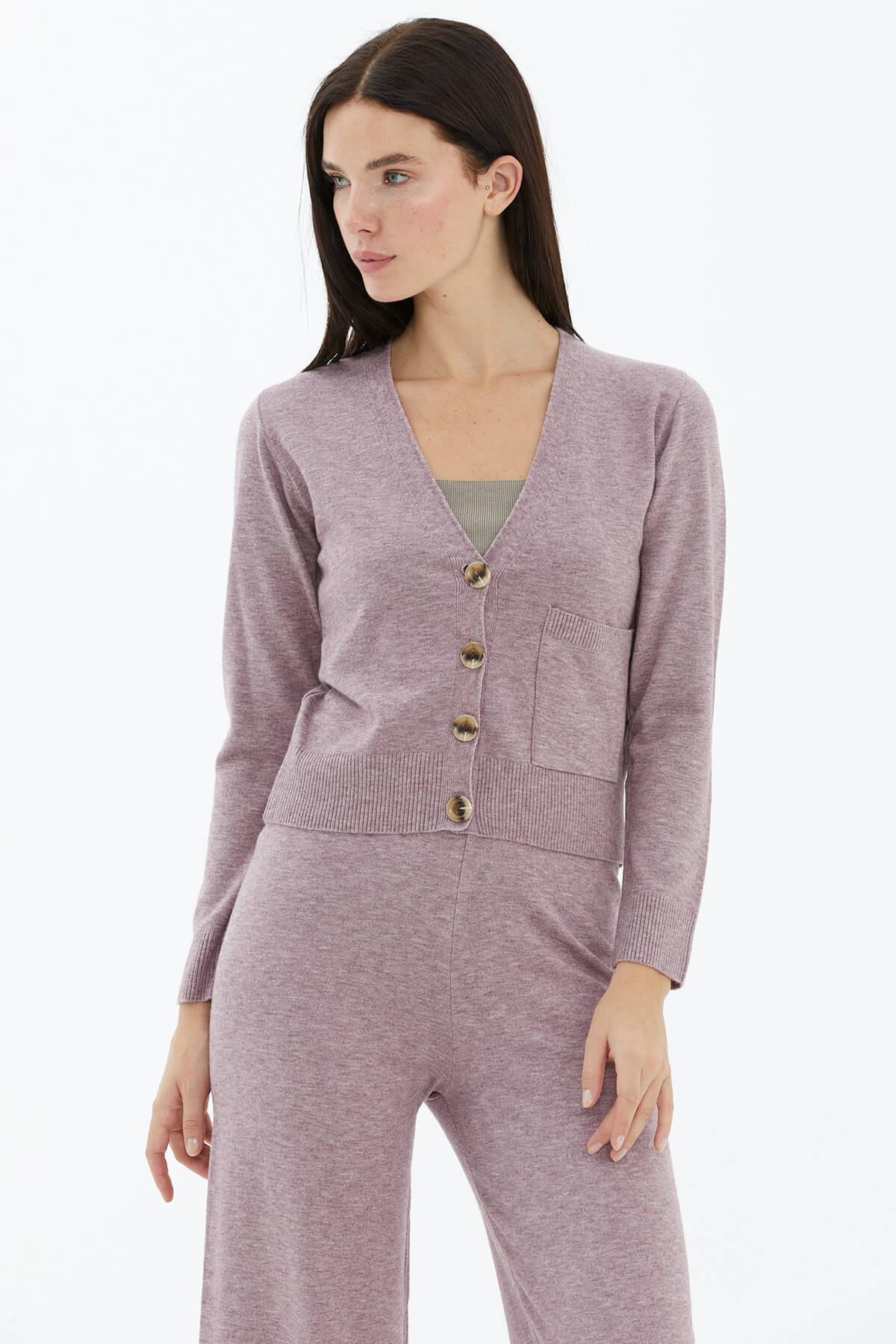 V-Neck Buttoned Pocket Knitwear Cardigan - Rose