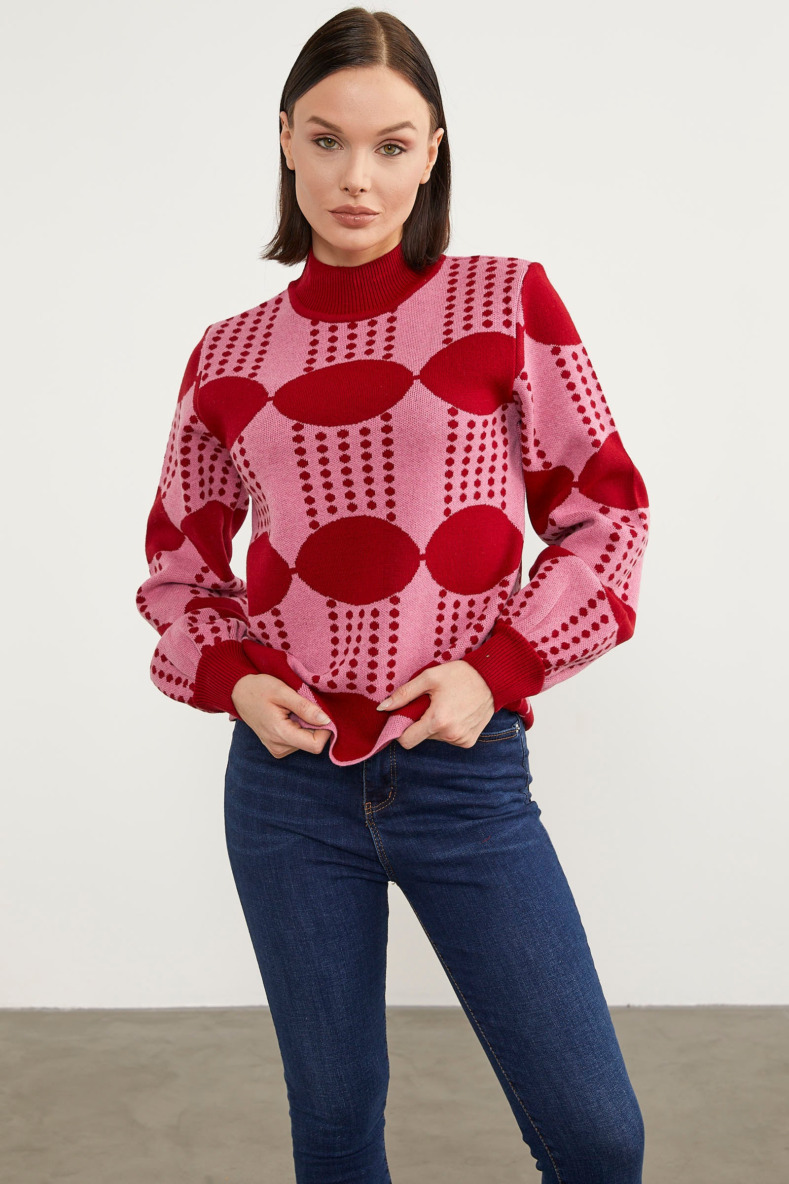 You can catch the modern trend with the two-tone knitted sweater that will add energy to the depression of cold days with its vibrant colors and lively patterns. You will feel comfortable thanks to its flexible and comfortable texture.
