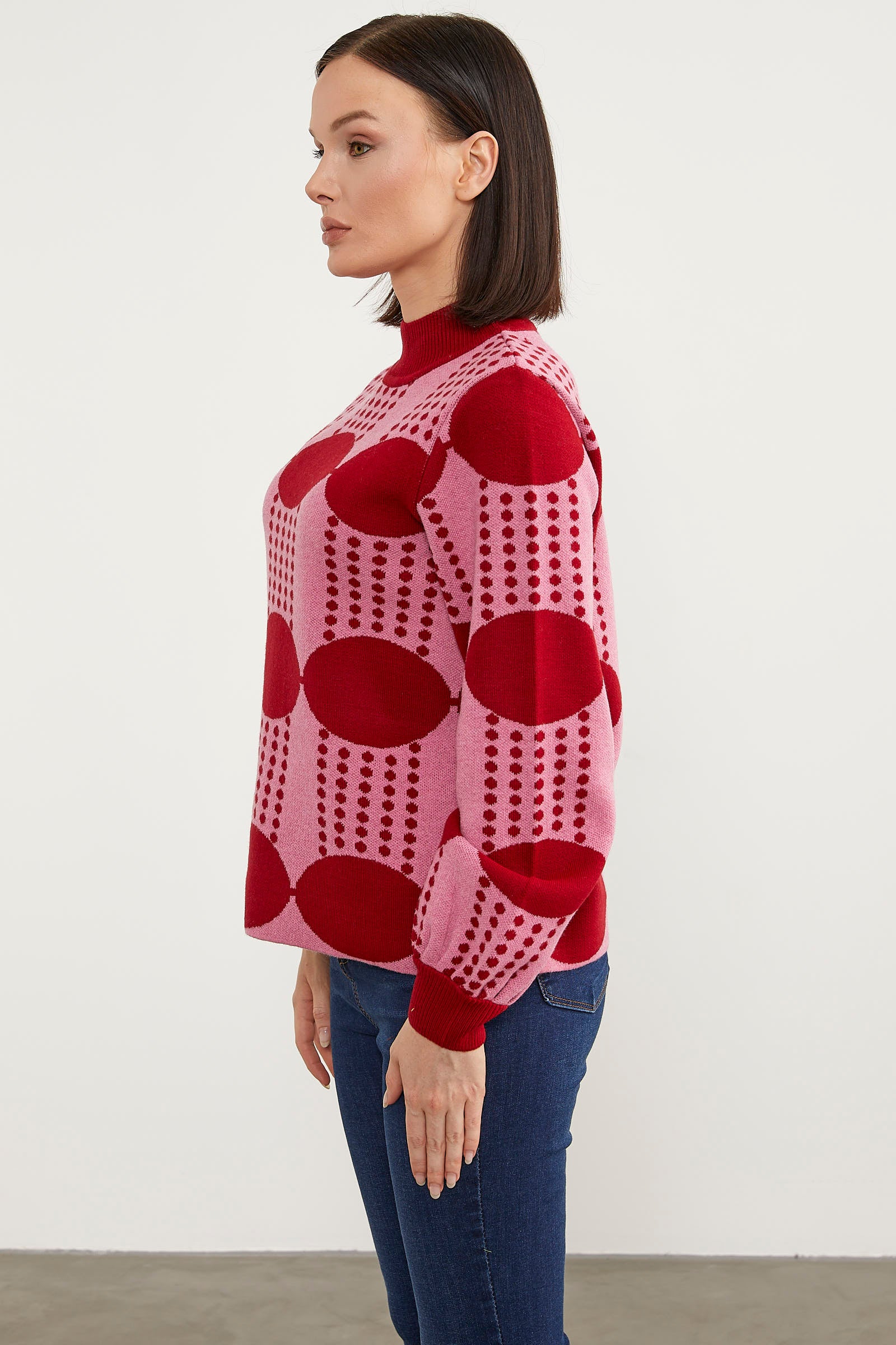 Half Turtleneck Double Color Knitwear Sweater - Red