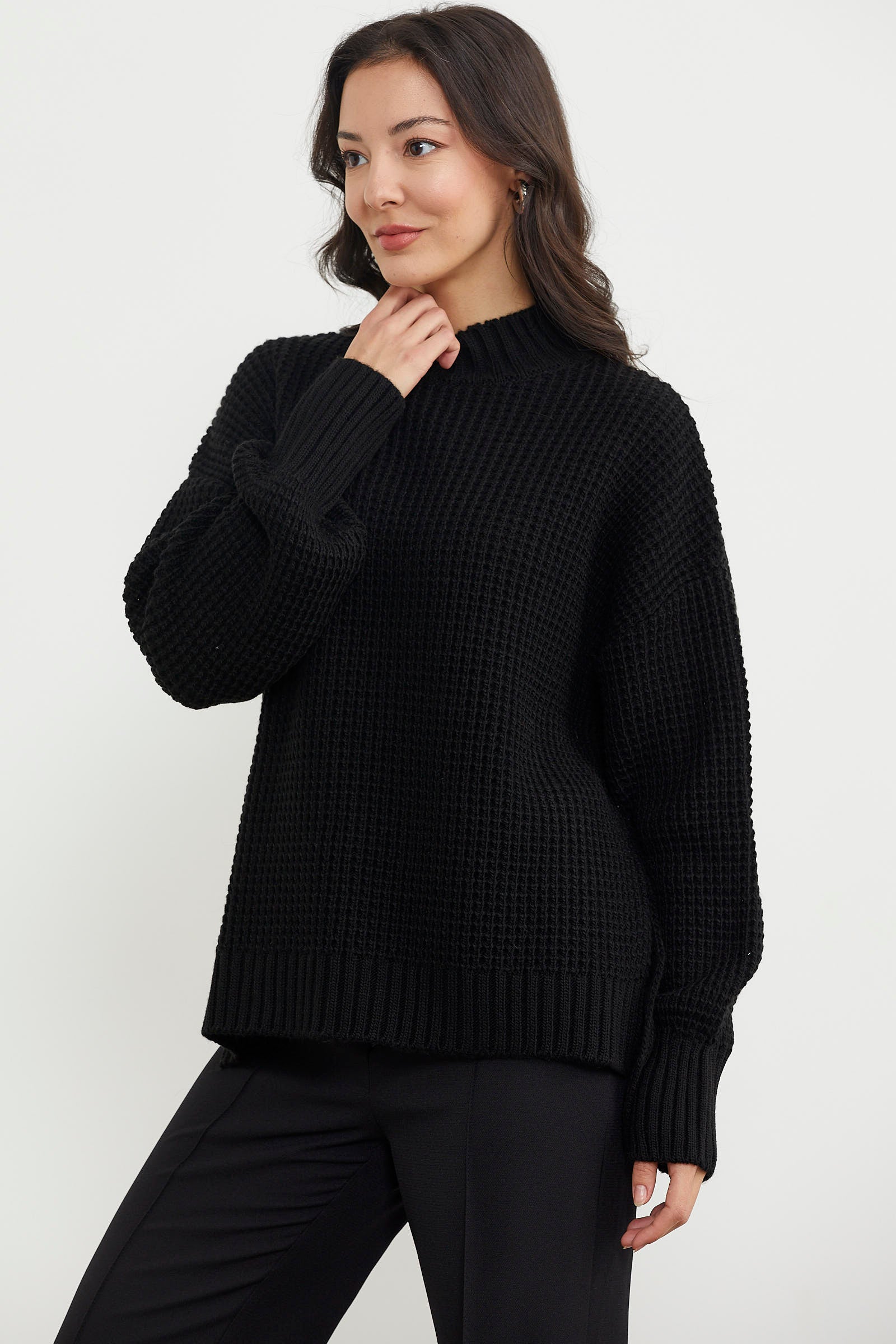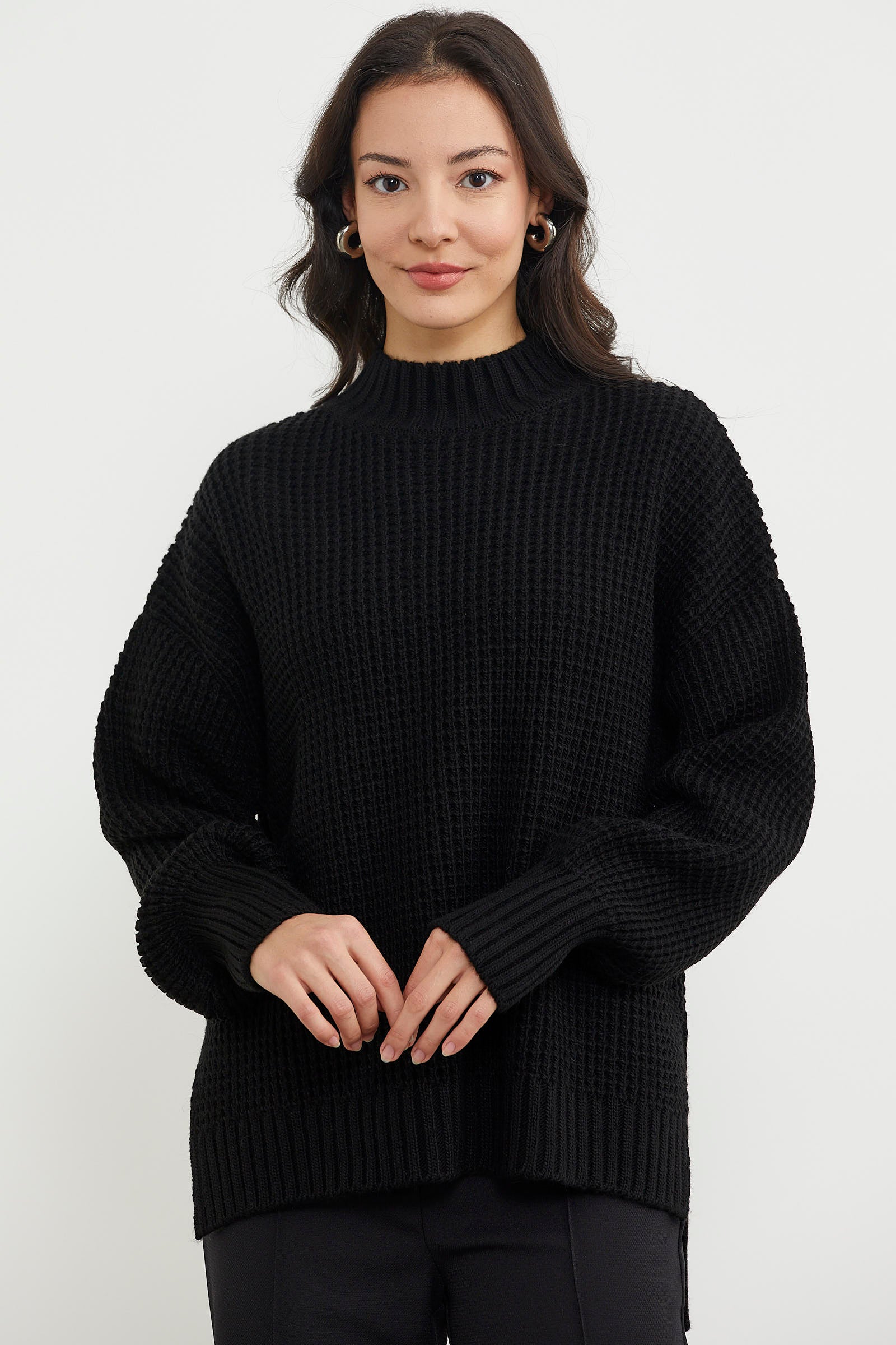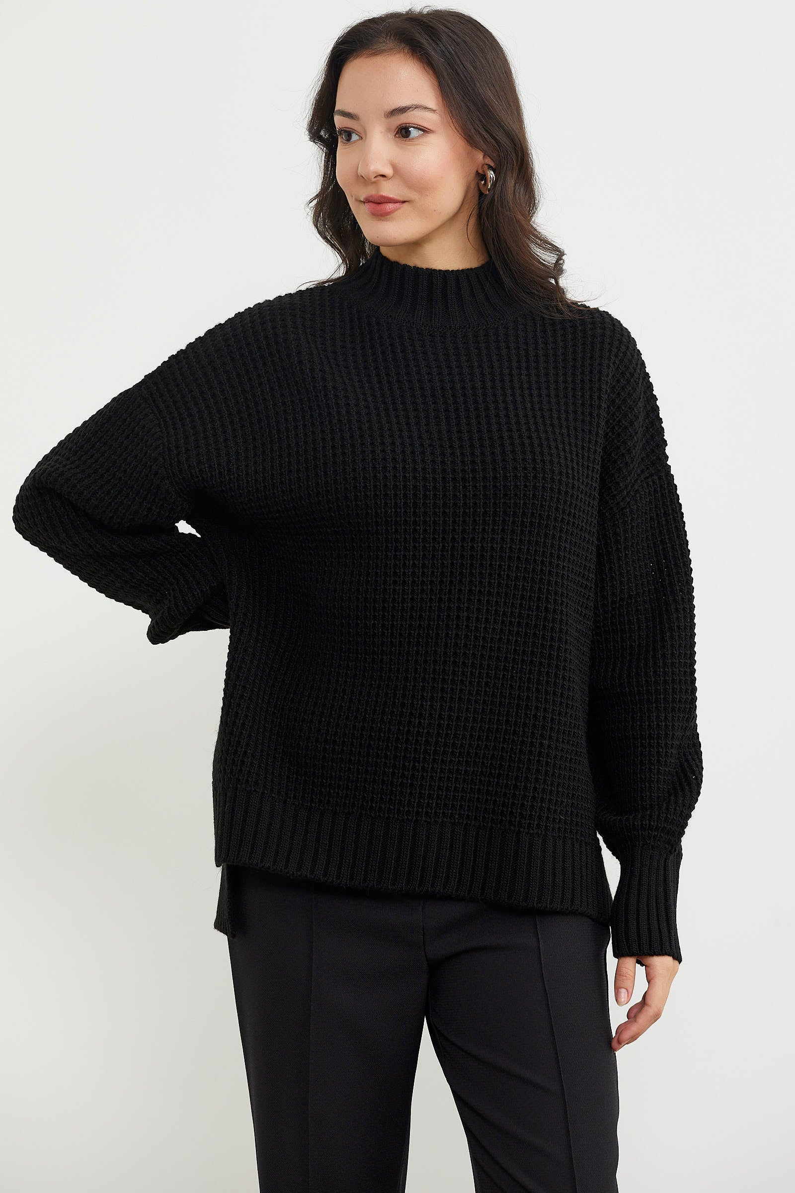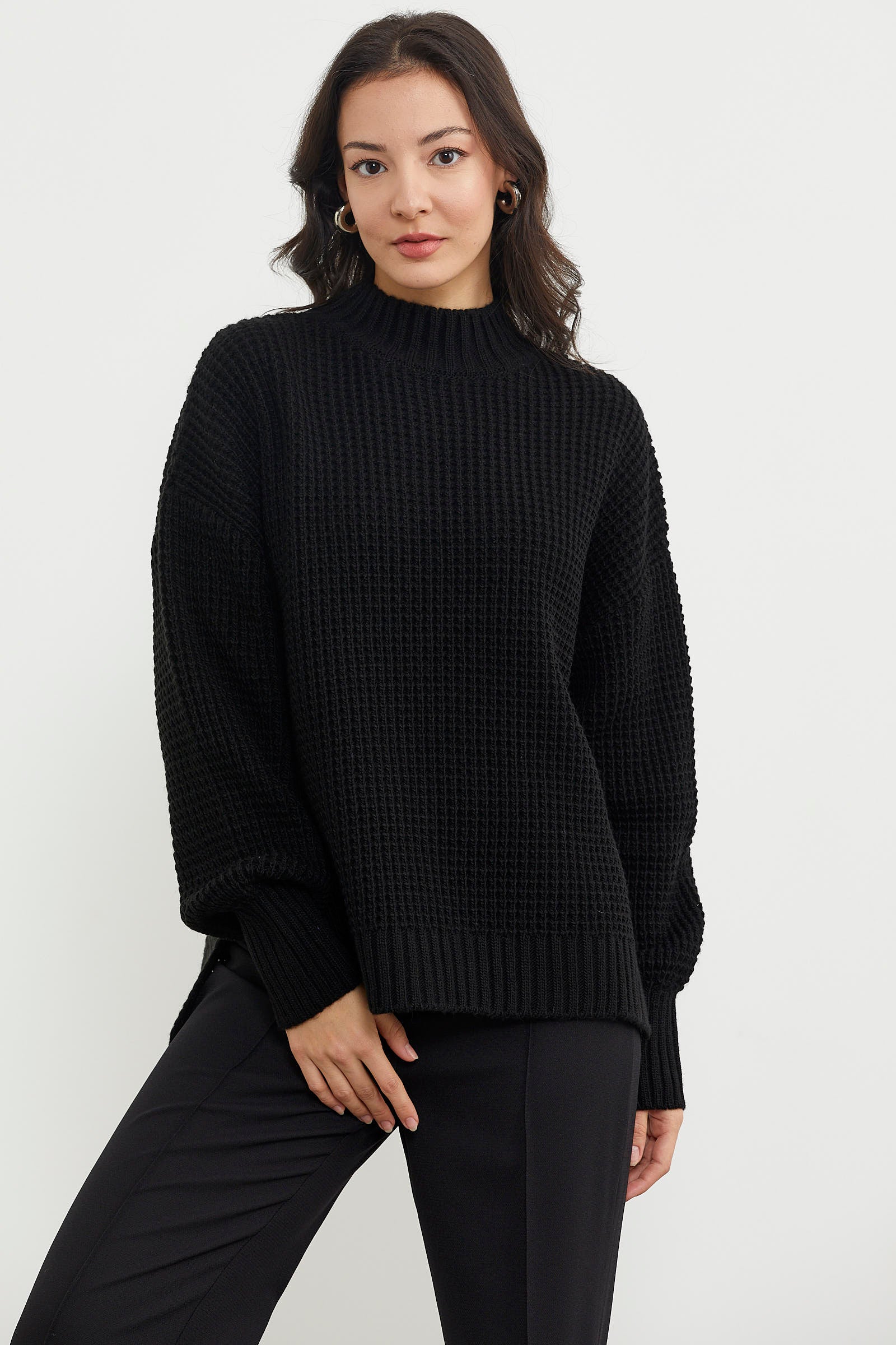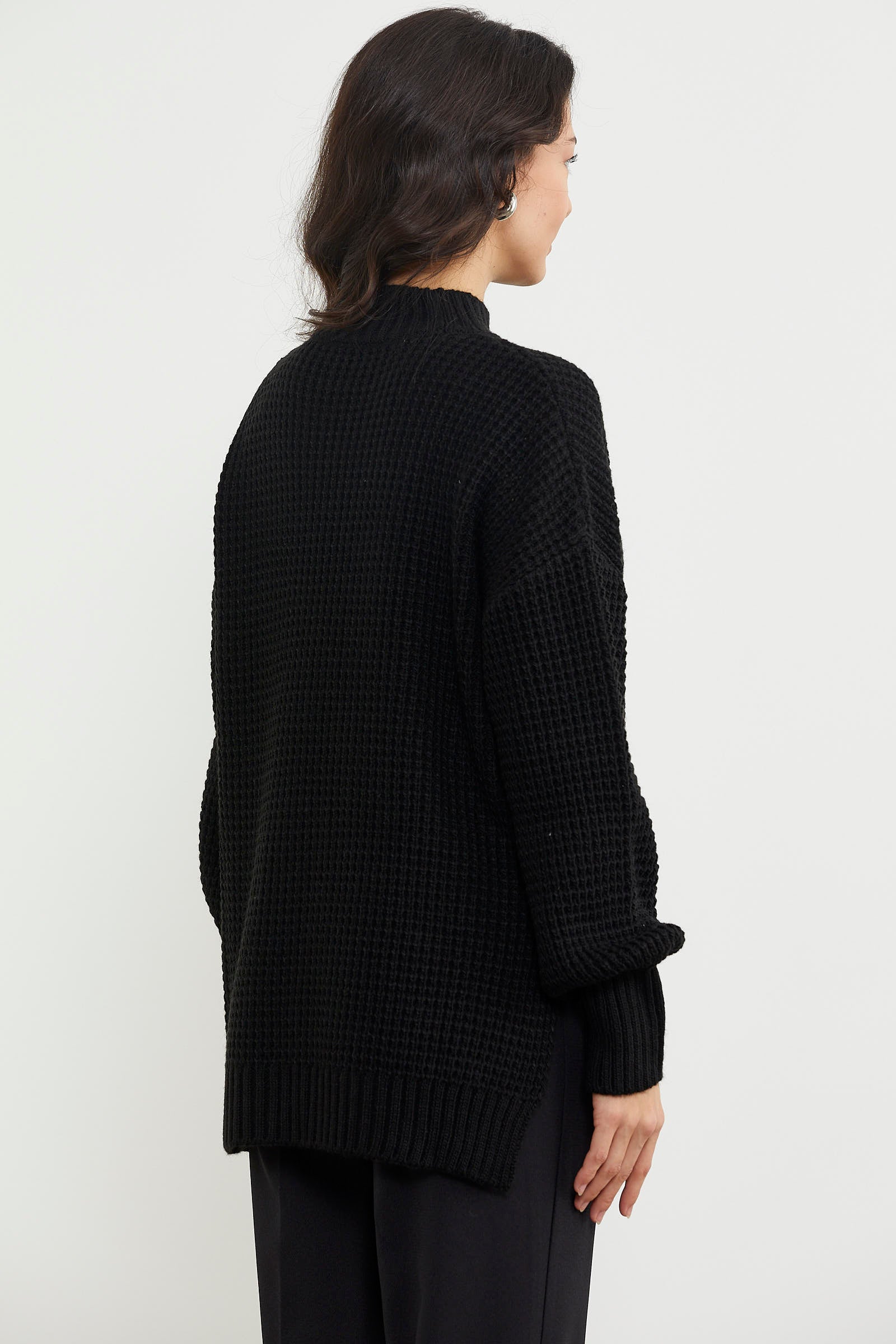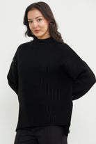 Long Back Loose Knitwear Sweater - Black