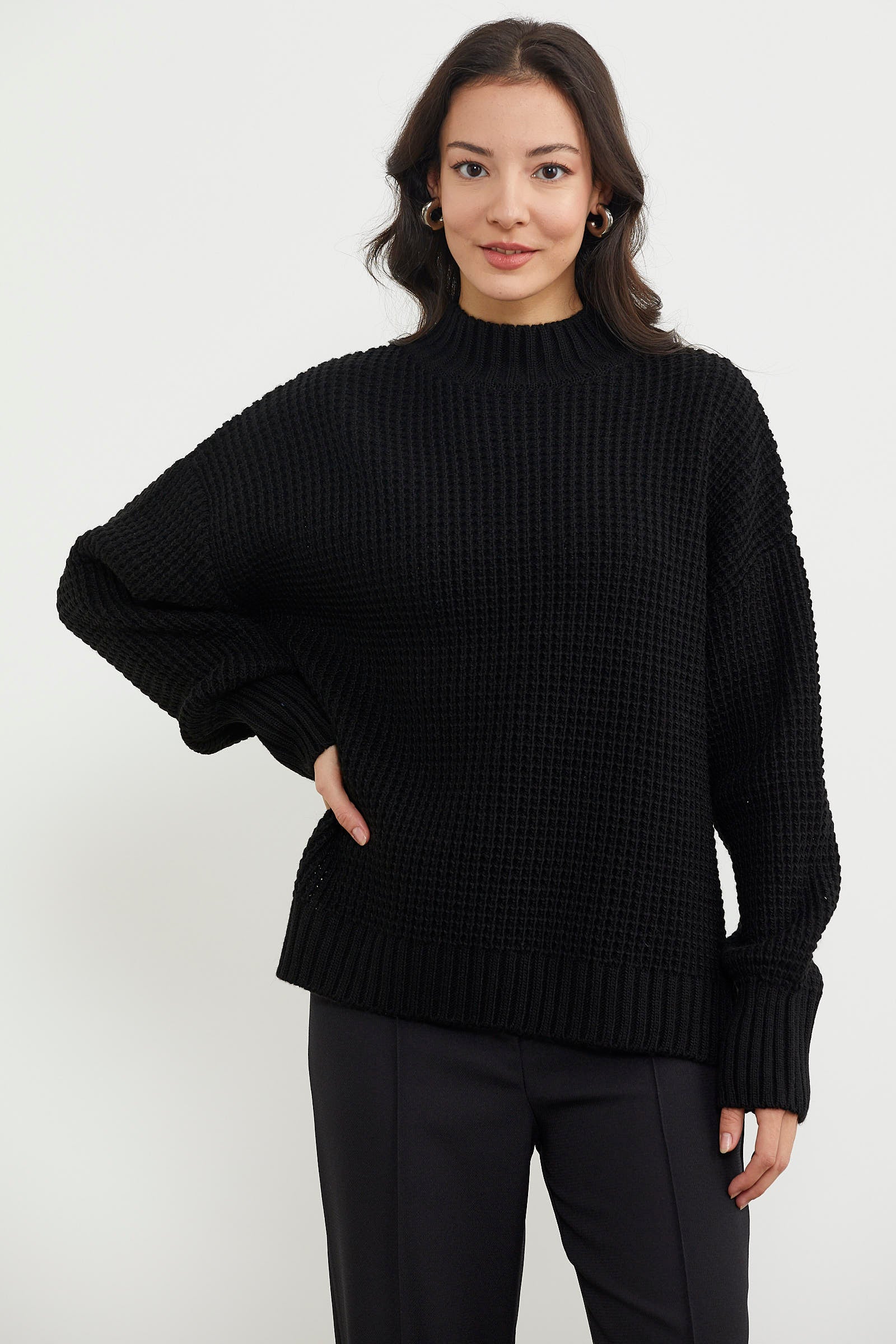 The vibrantly colored, casual long knit sweater with a high collar and a vibrant look, thanks to its careful cut, will be your piece without compromising your style when creating combinations with ease.