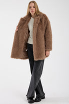 Astarlı Uzun Suni Kürk Kaban - Vizon