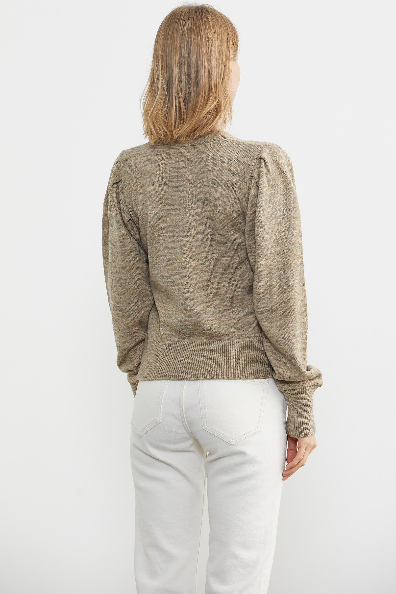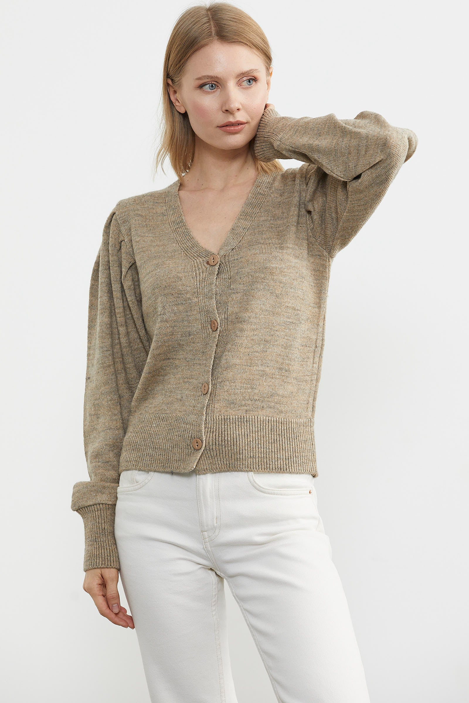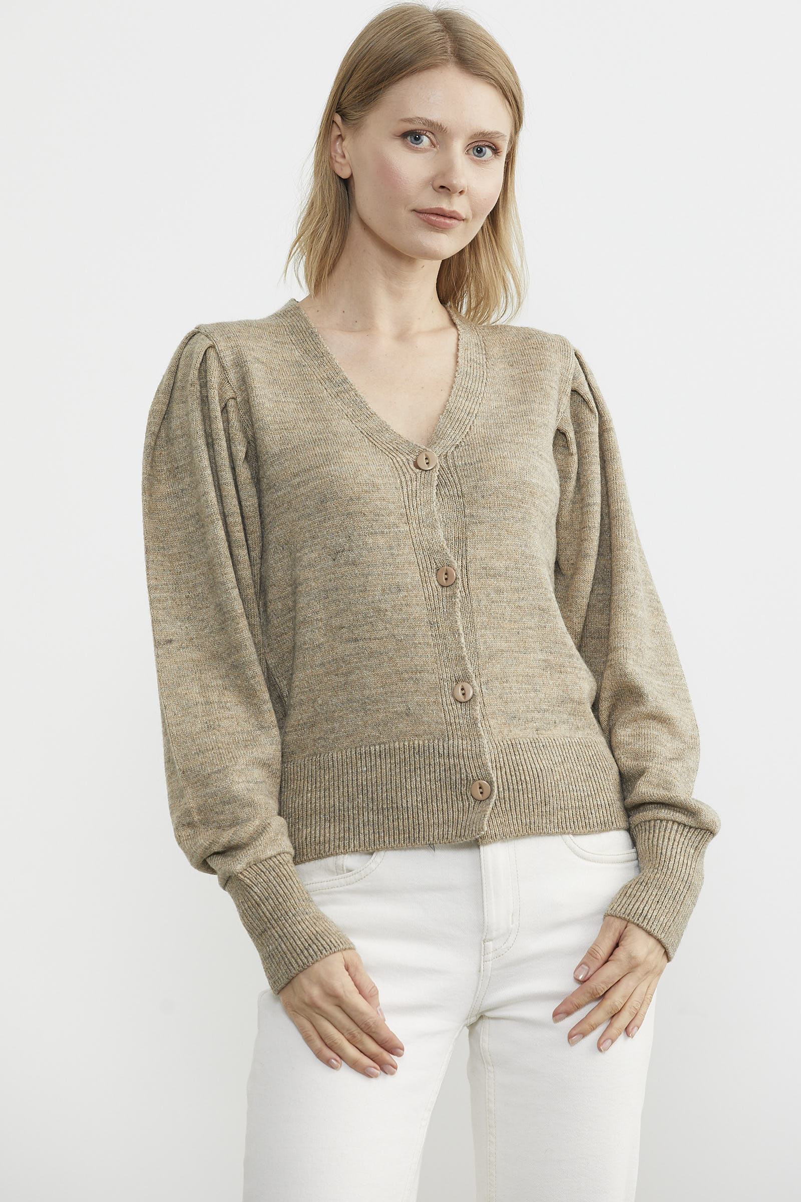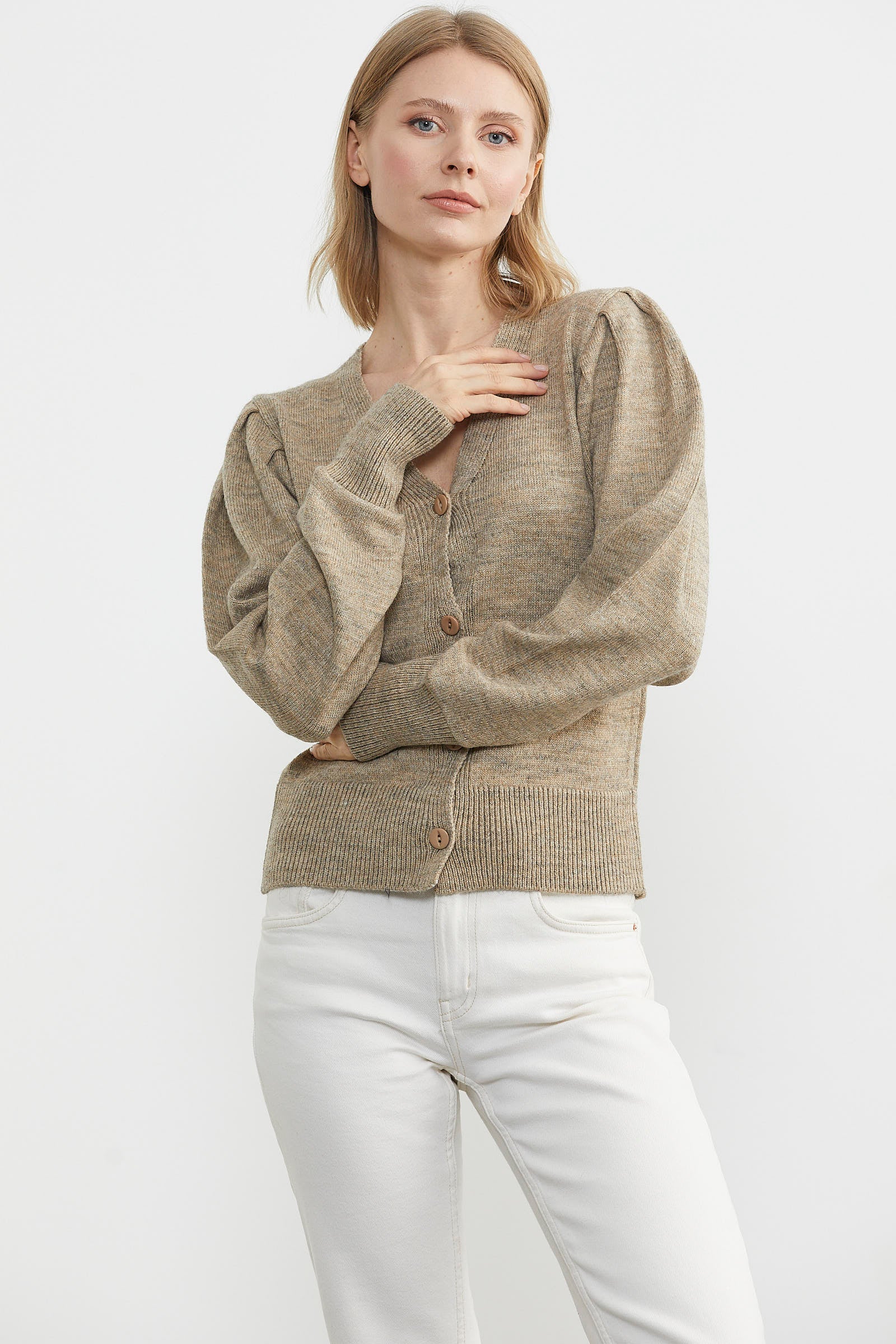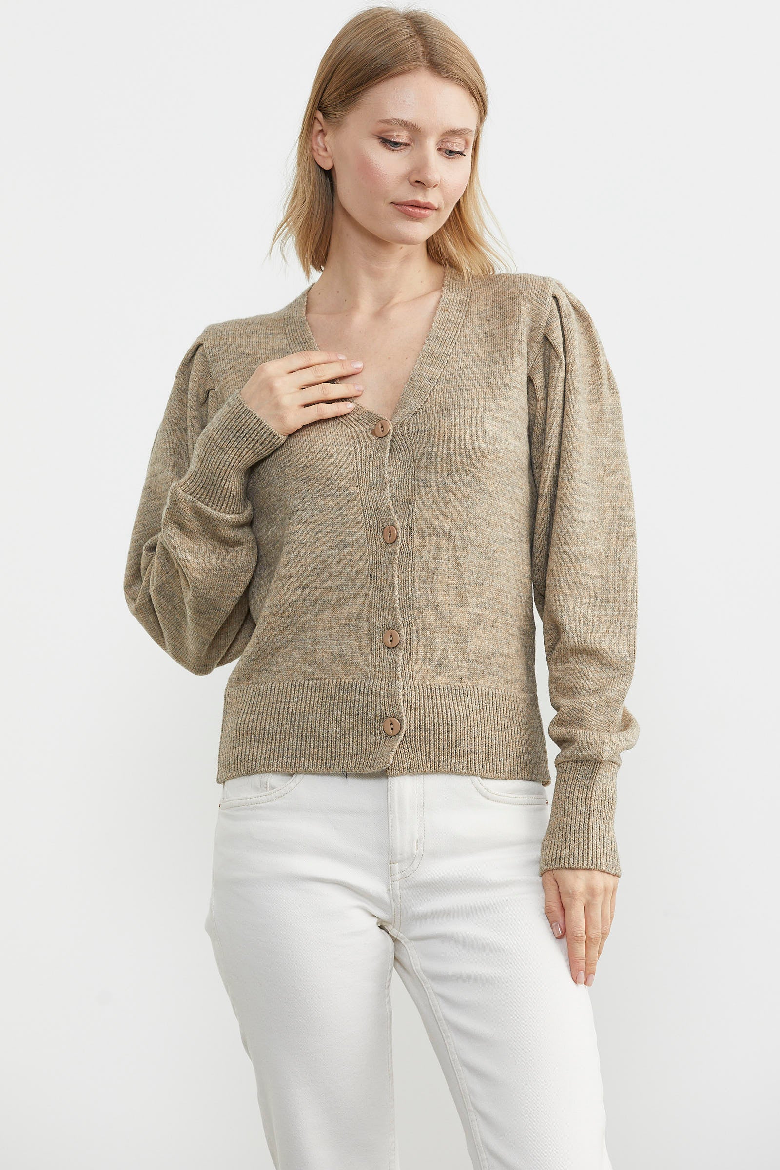 Balloon Sleeve Basic Knitwear Cardigan - Dark Beige
