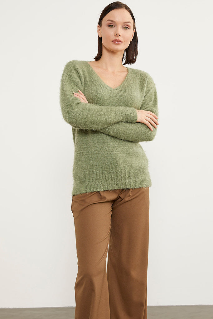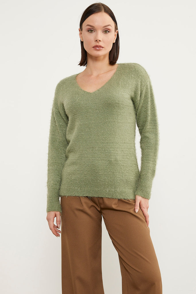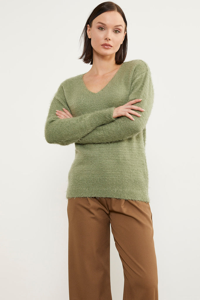 Achieve effortless elegance with this basic knit sweater that will brighten your mood in cold weather with its different color options and wrap you with its soft texture. A key piece that you can complete with your combinations in both your work and school life.