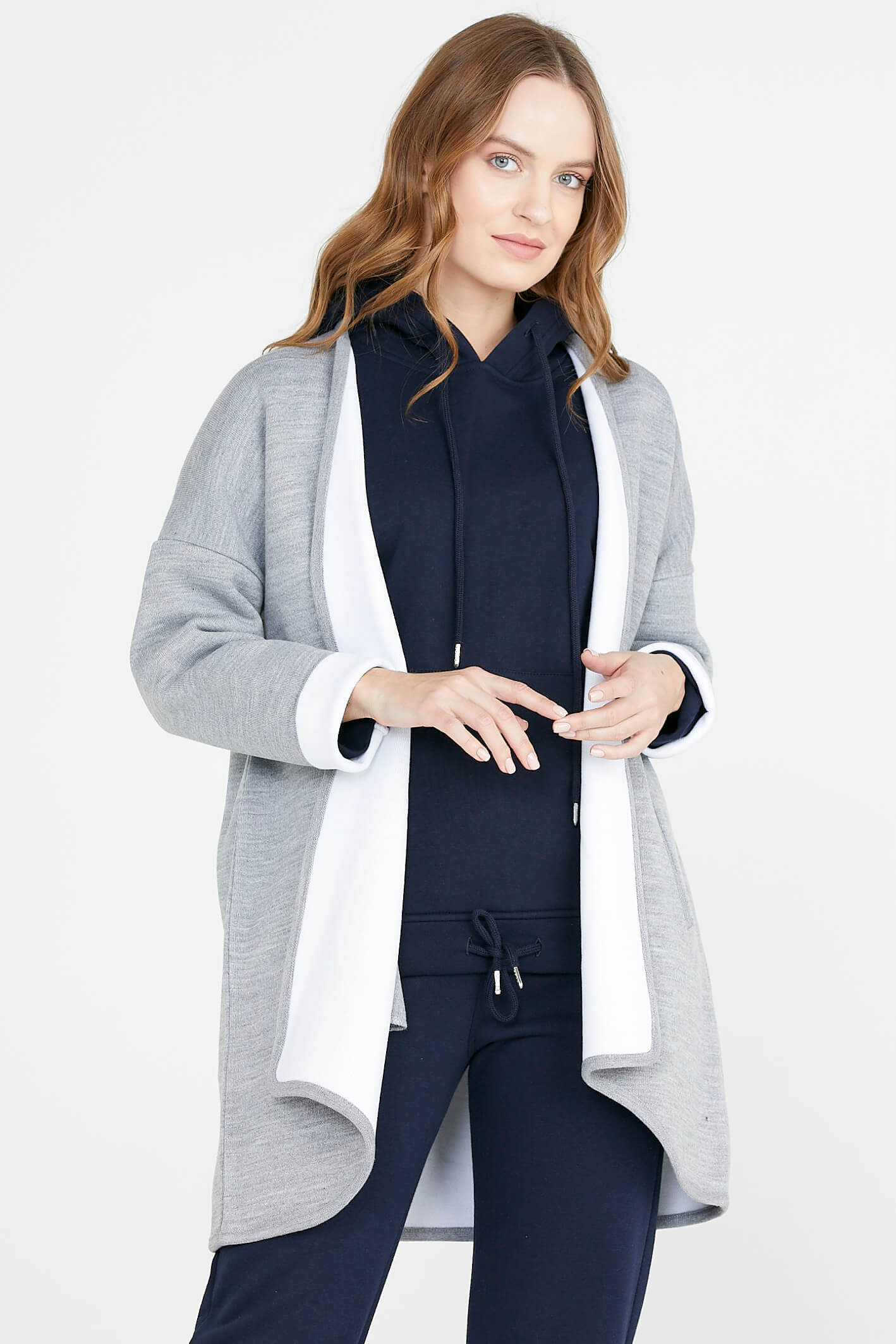 Knitwear cardigan makes a difference with its dual color. Energizing its plain form with asymmetrical stitching details, this design provides integrity with its collar and long sleeves. Knitwear cardigan is one of your indispensable clothes, making a stylish touch to your modern city style.