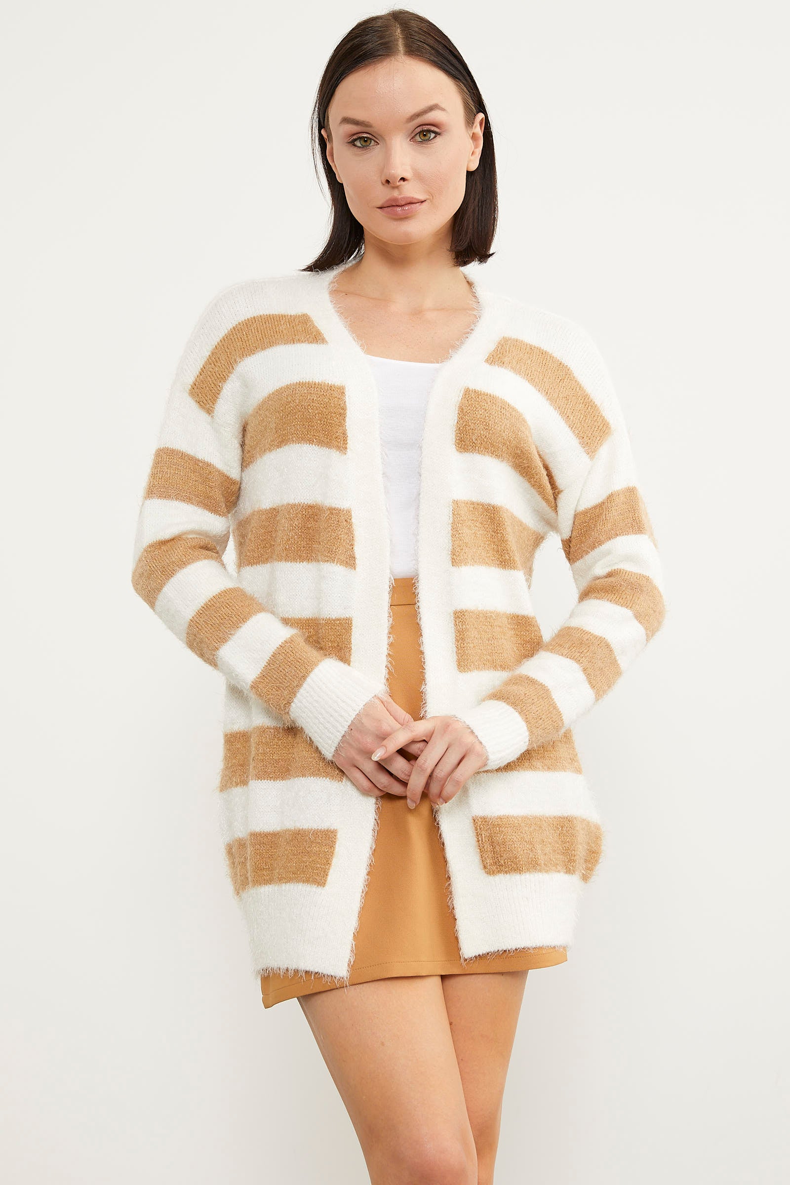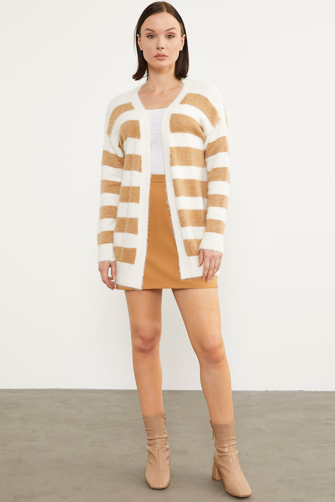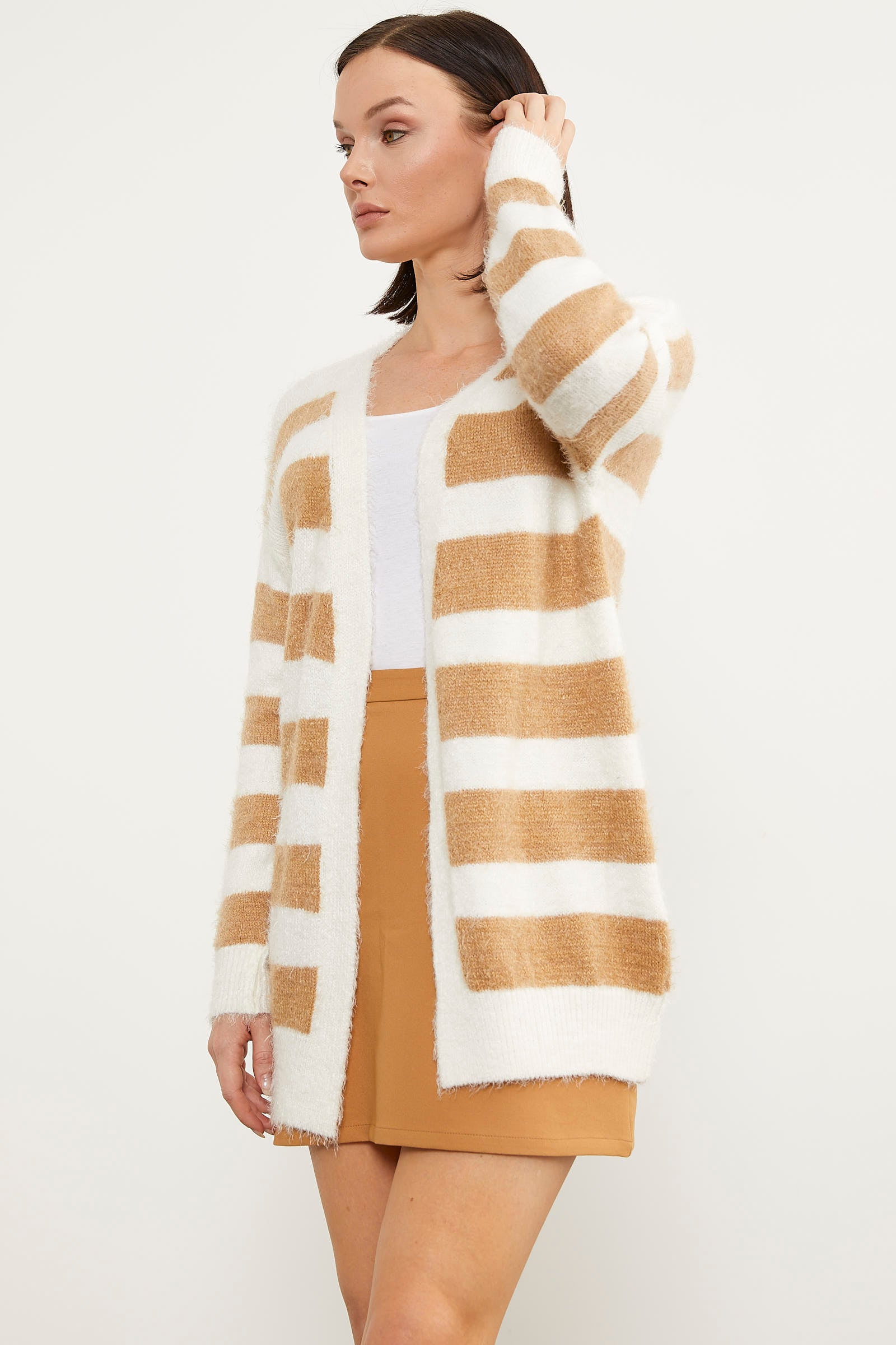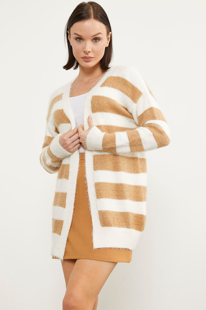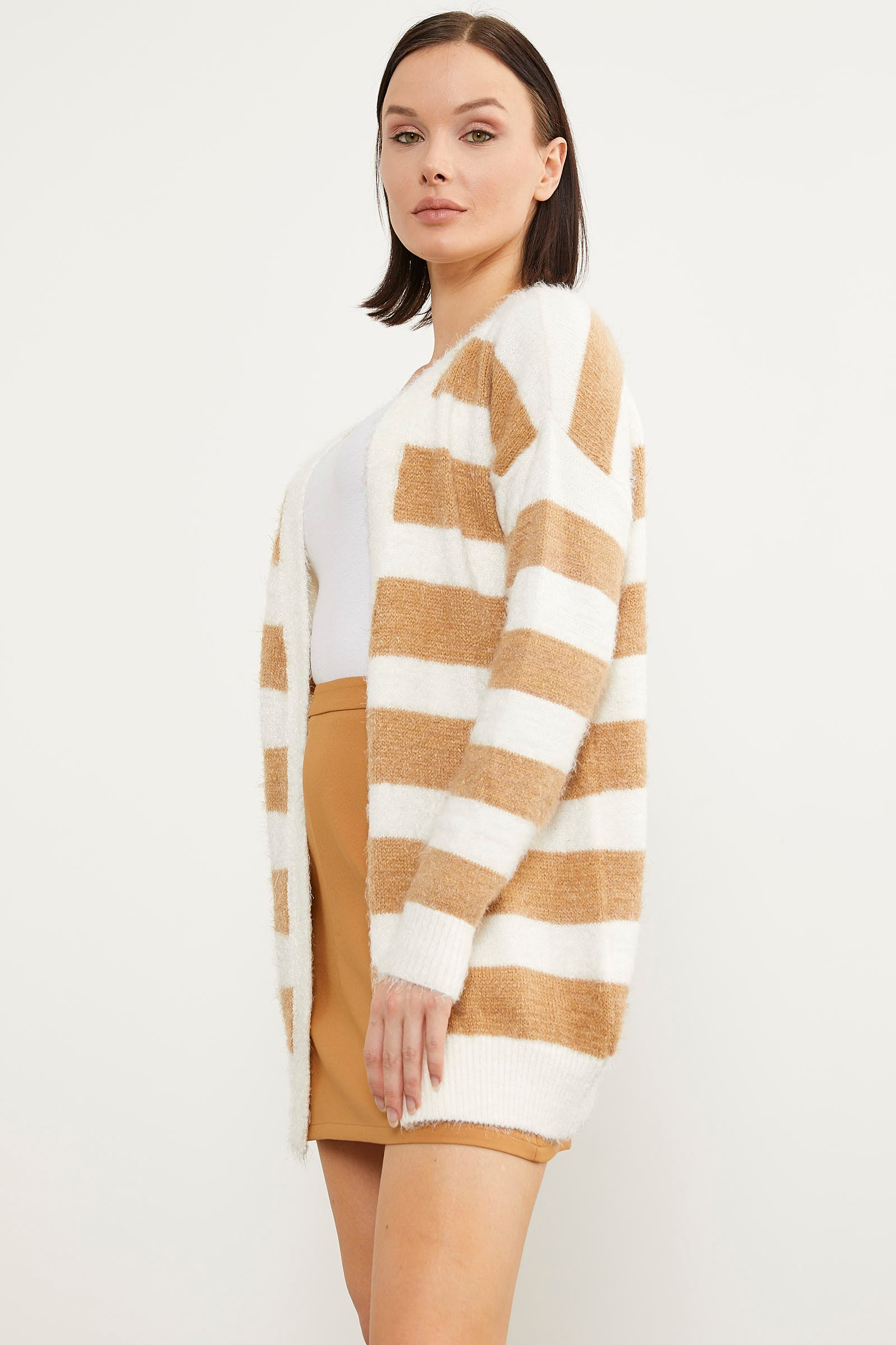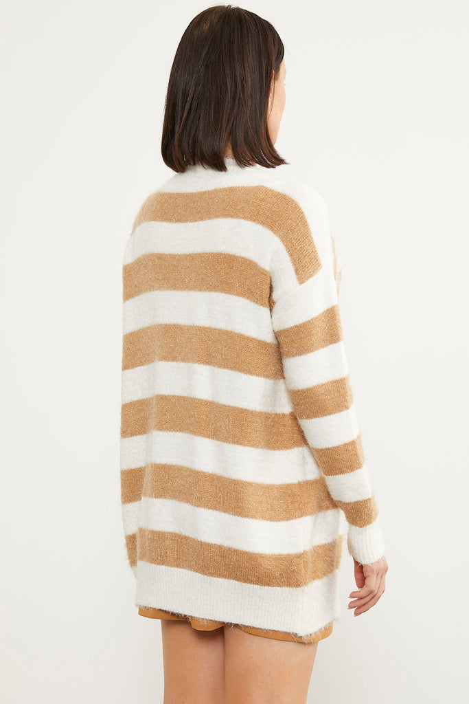 Striped Color Gradient Knitwear Cardigan - Caramel