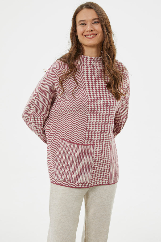 You can feel warm and comfortable when choosing the wide fit, large front pocket, houndstooth patterned knitted sweater with different color alternatives that suits your style. Thanks to its pattern, it will add movement to even your basic combinations.