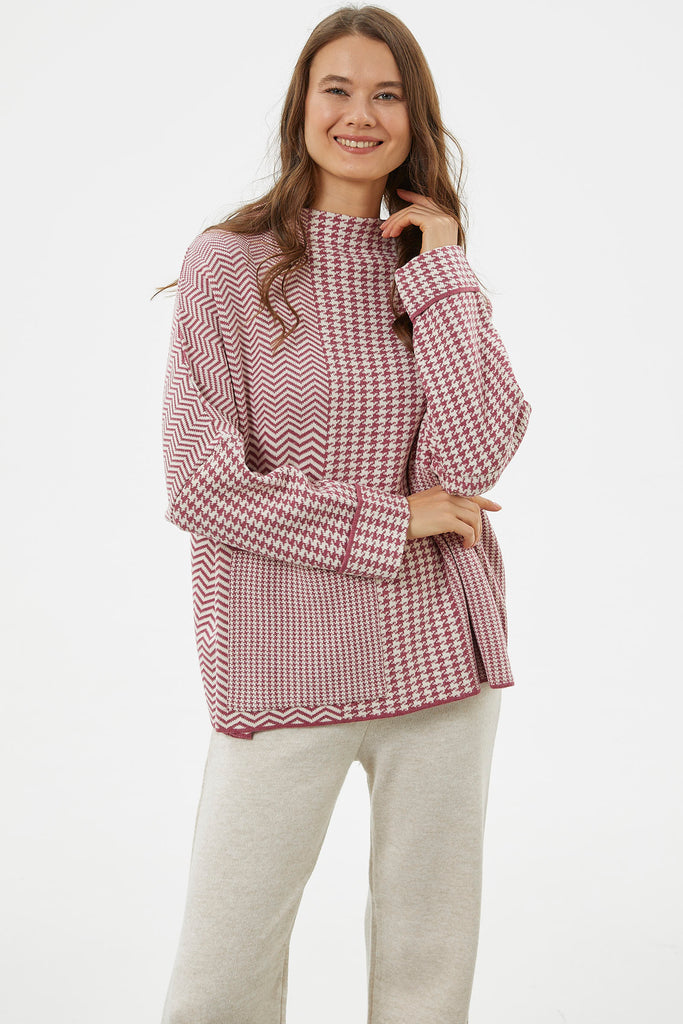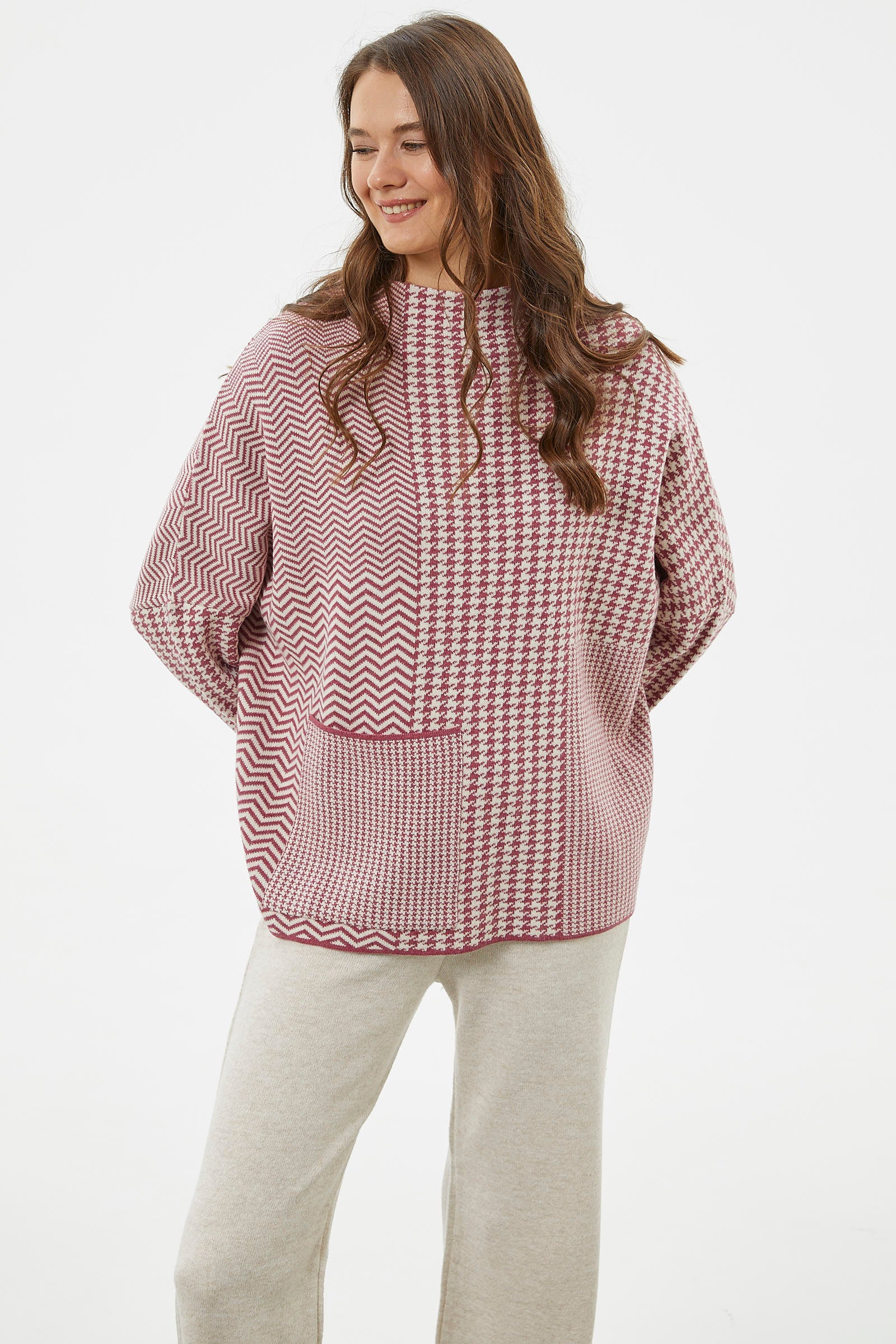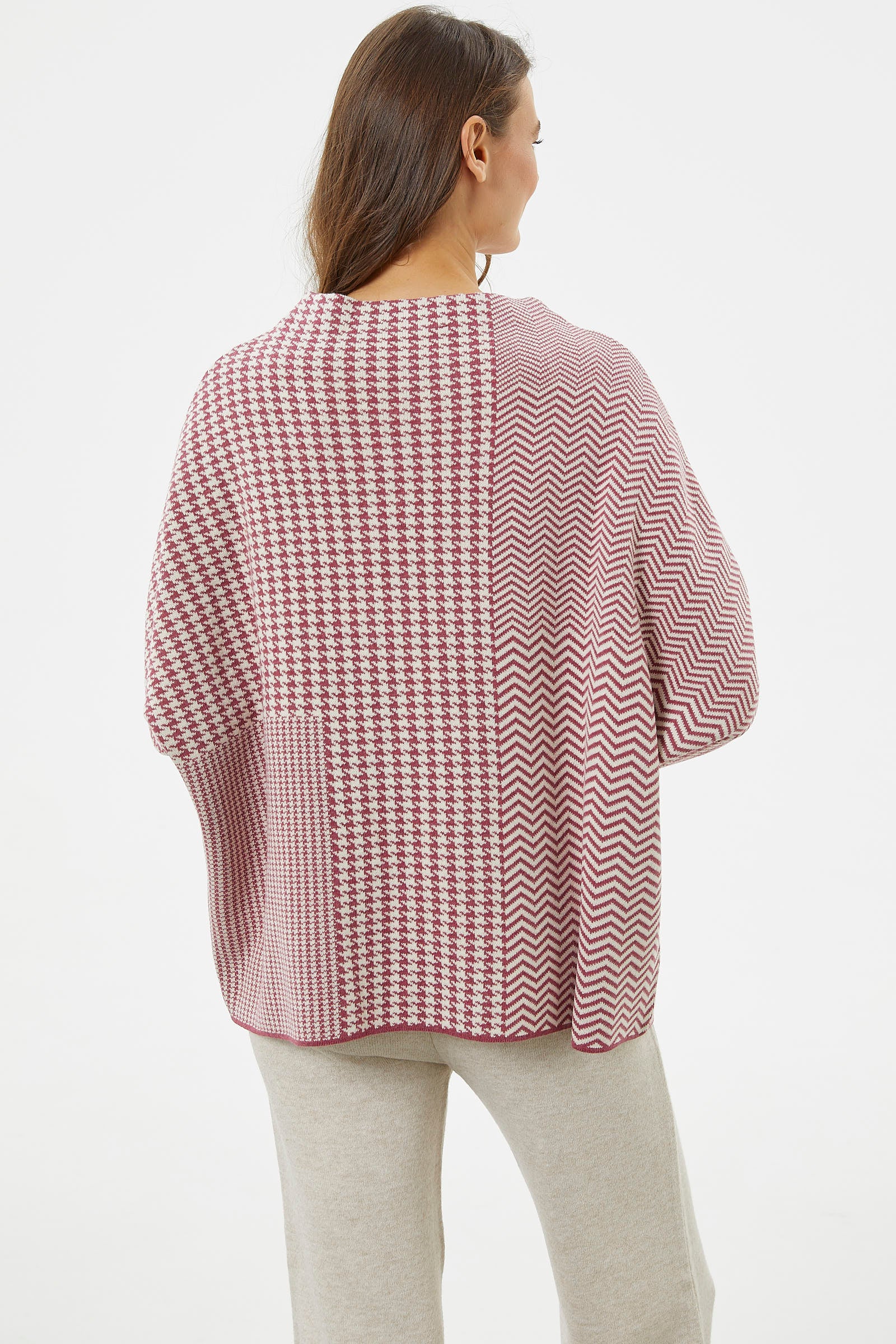 Very Wide Fit Houndstooth Pattern Knitwear Sweater - Rose