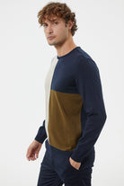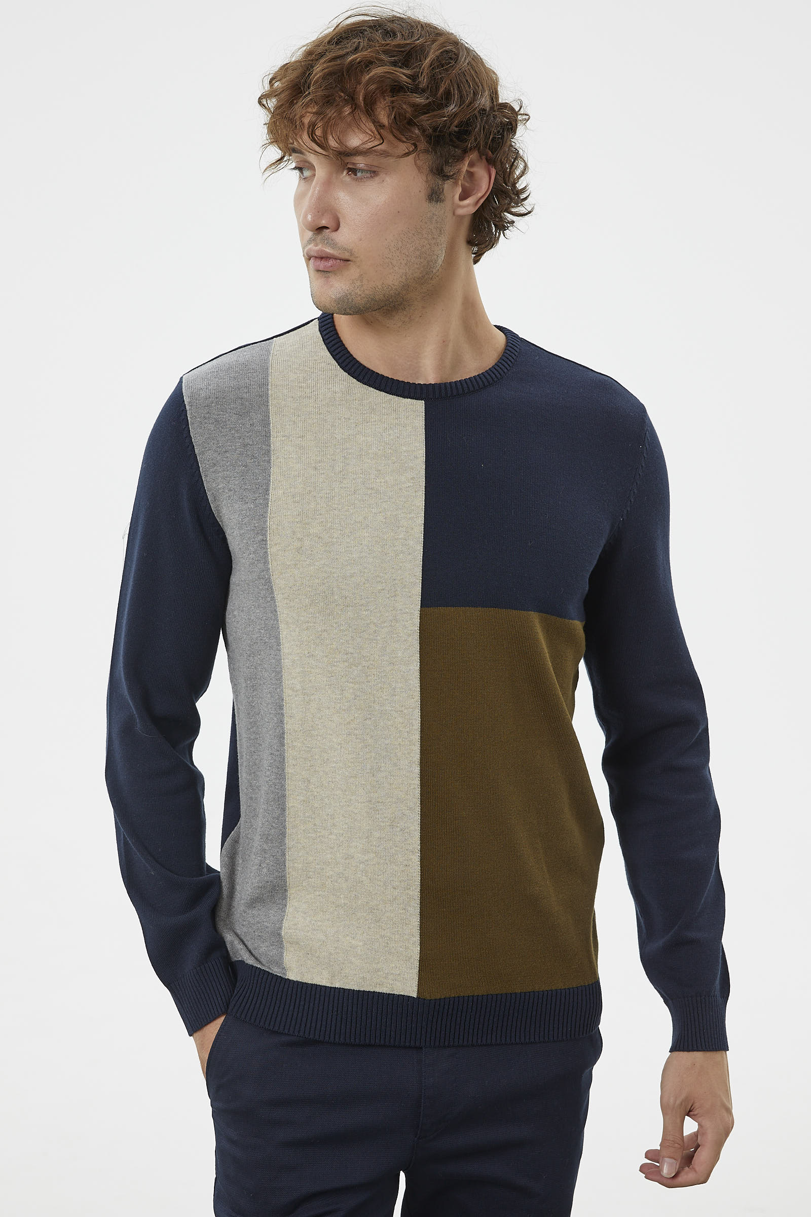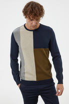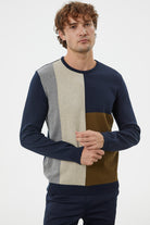 Multicolor Block Pattern Knitwear Sweater - Navy Blue