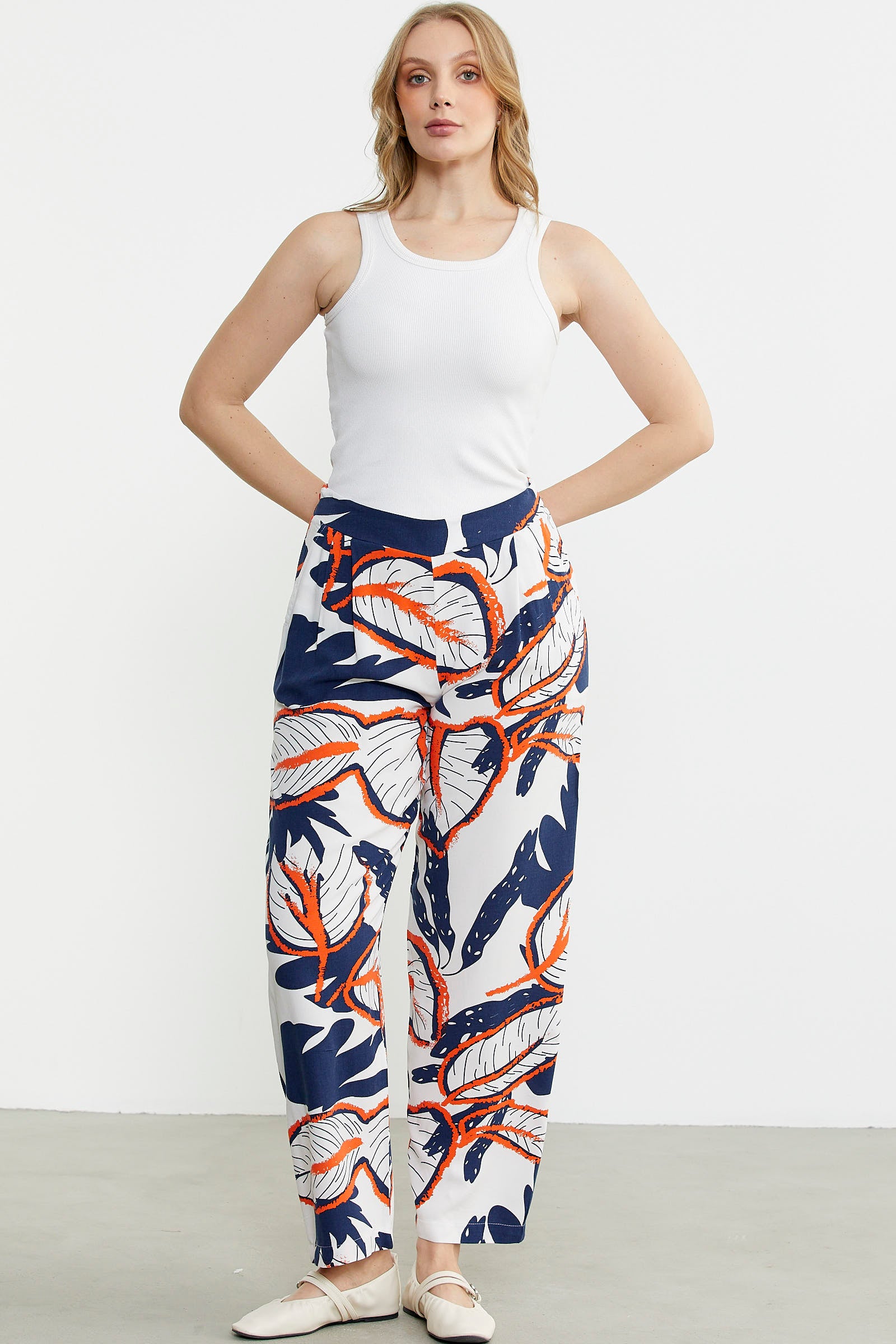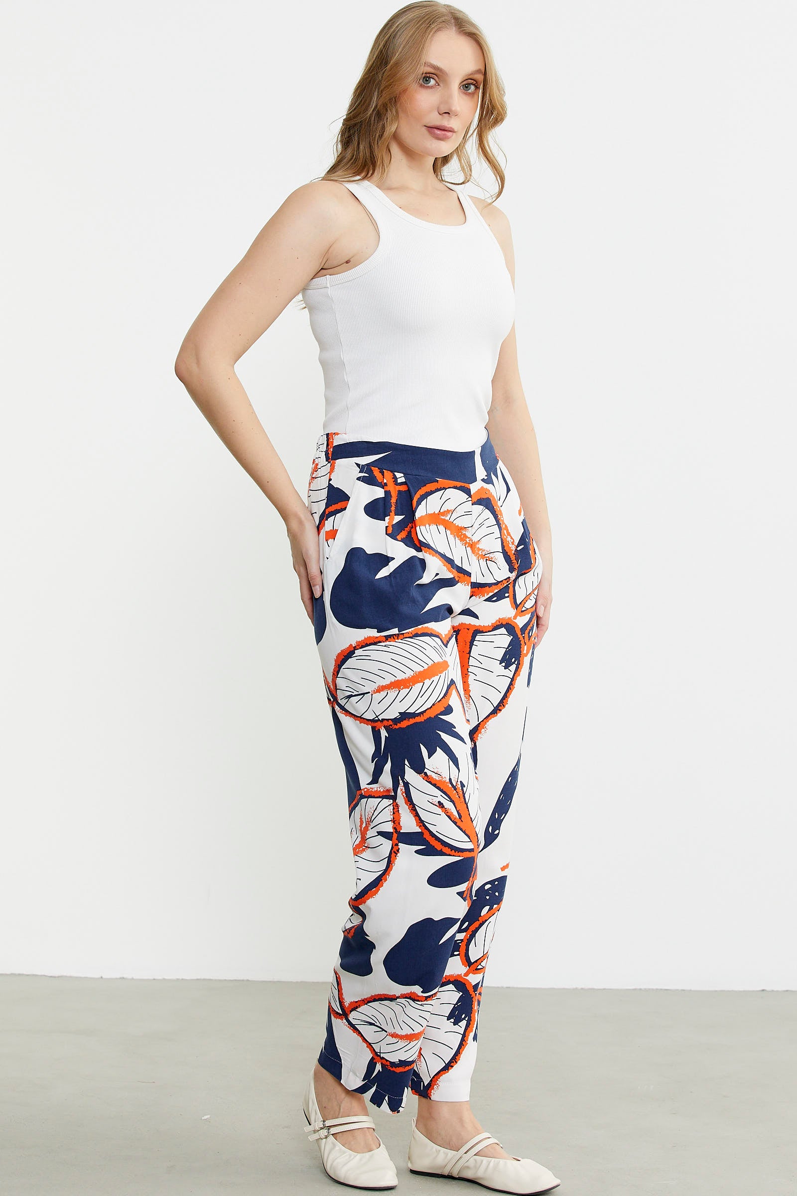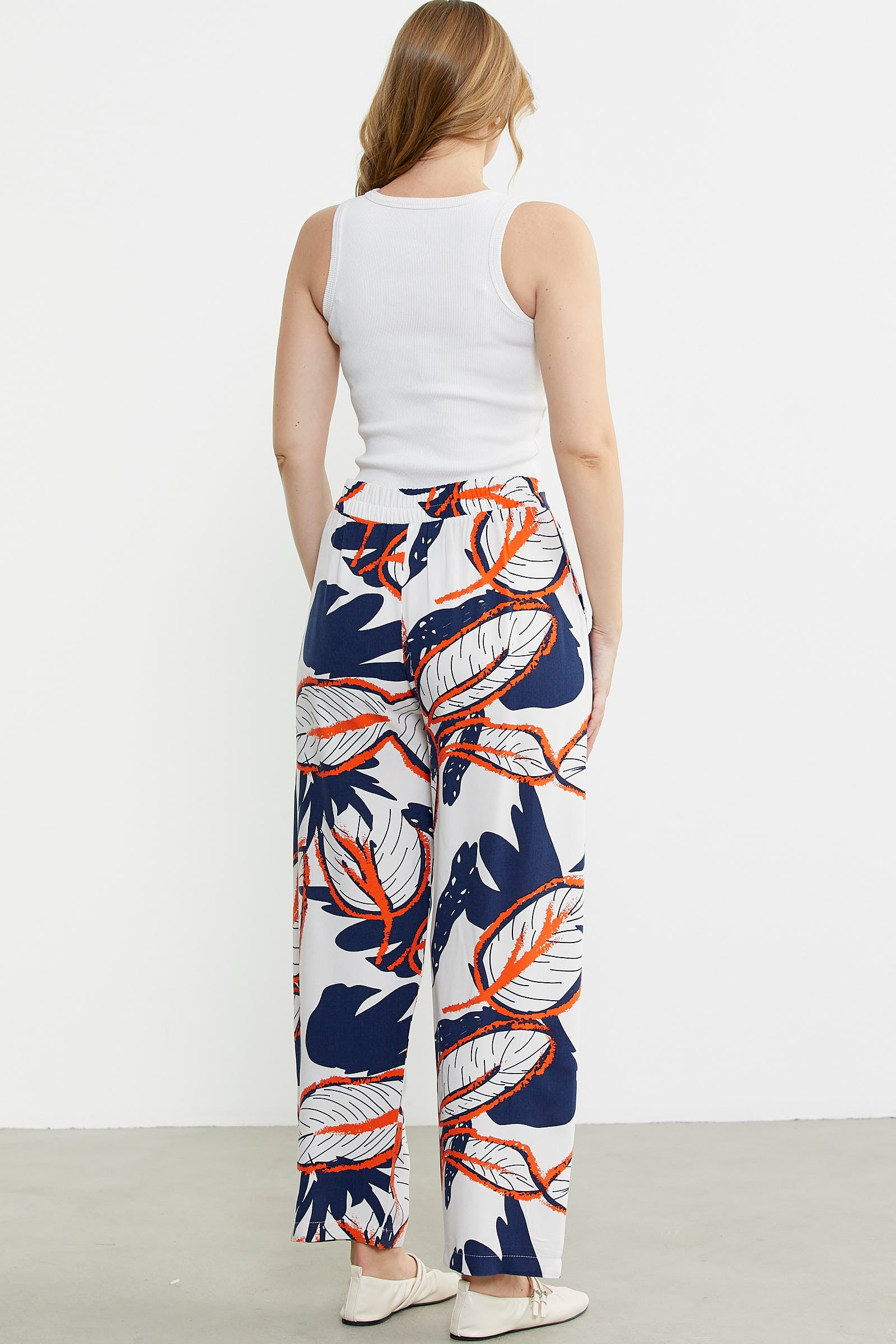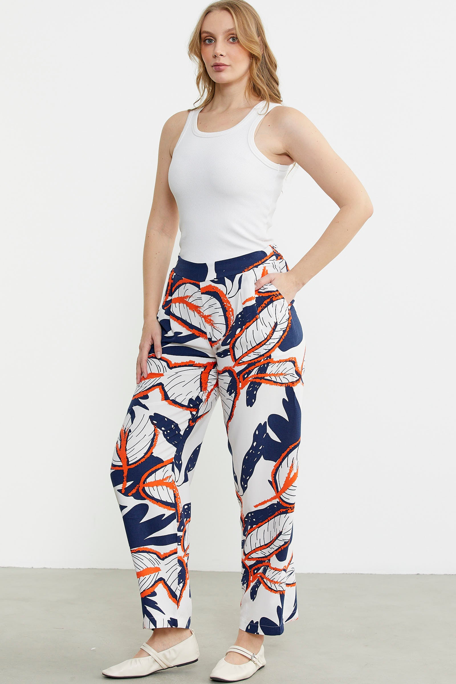 Patterned Relaxed Fit Viscose Trousers - Navy Blue