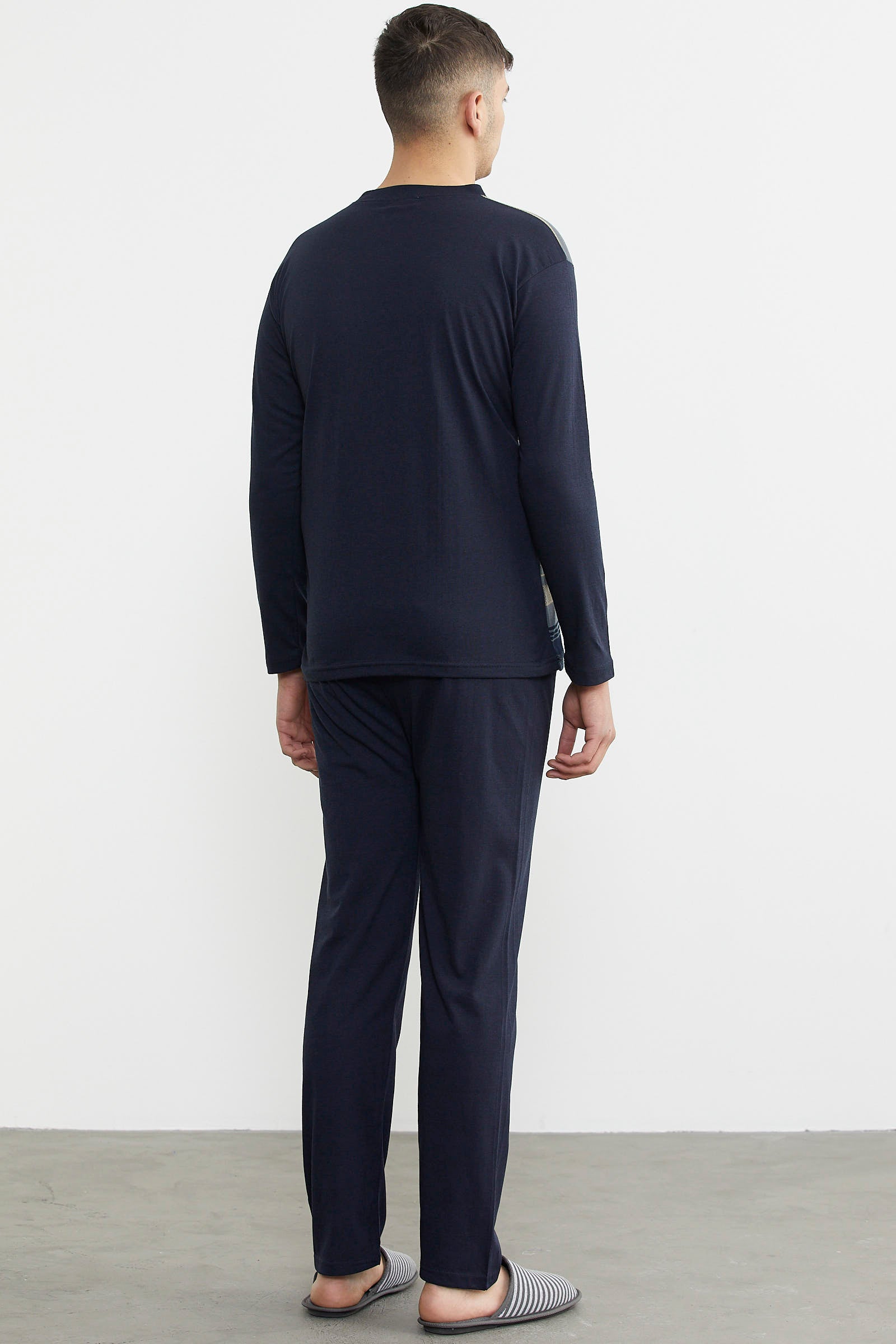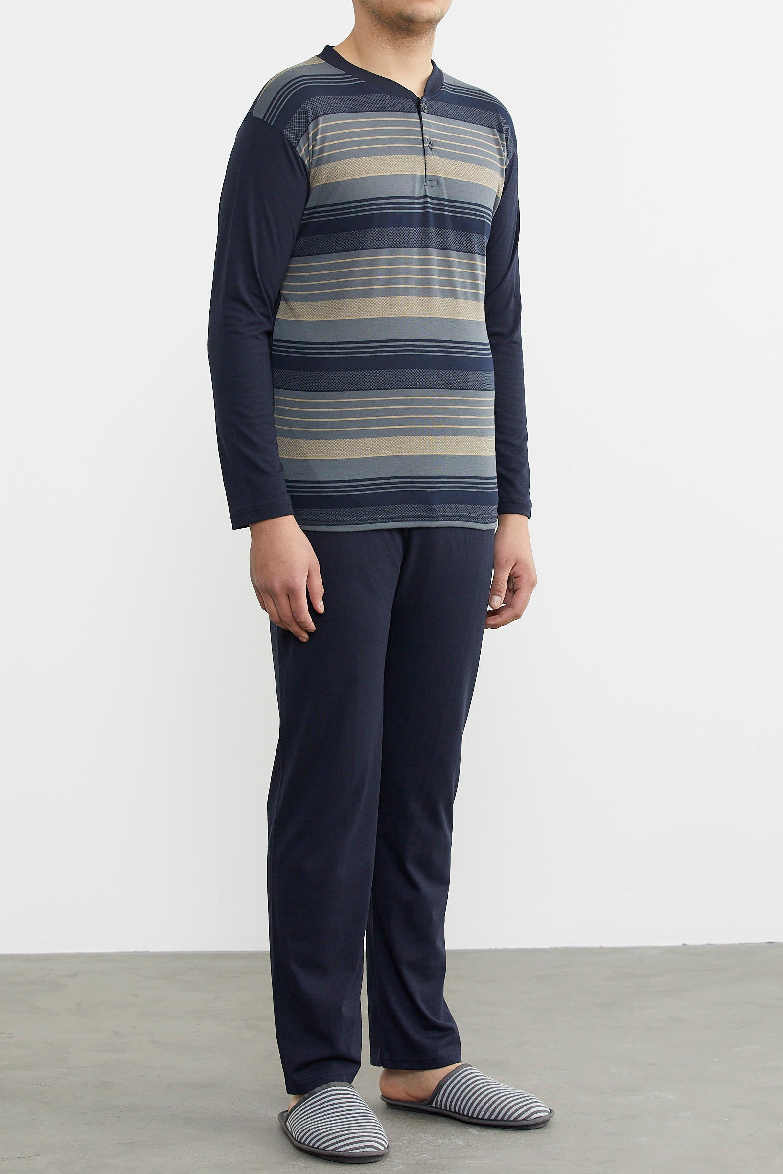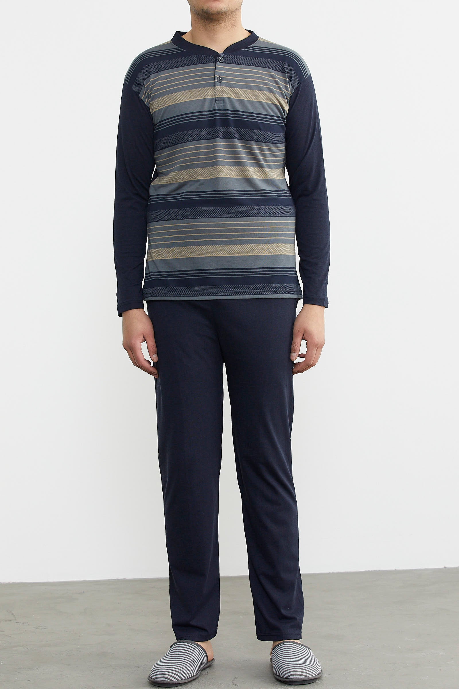 Patterned Summer Pajama Set - Anthracite - Navy Blue