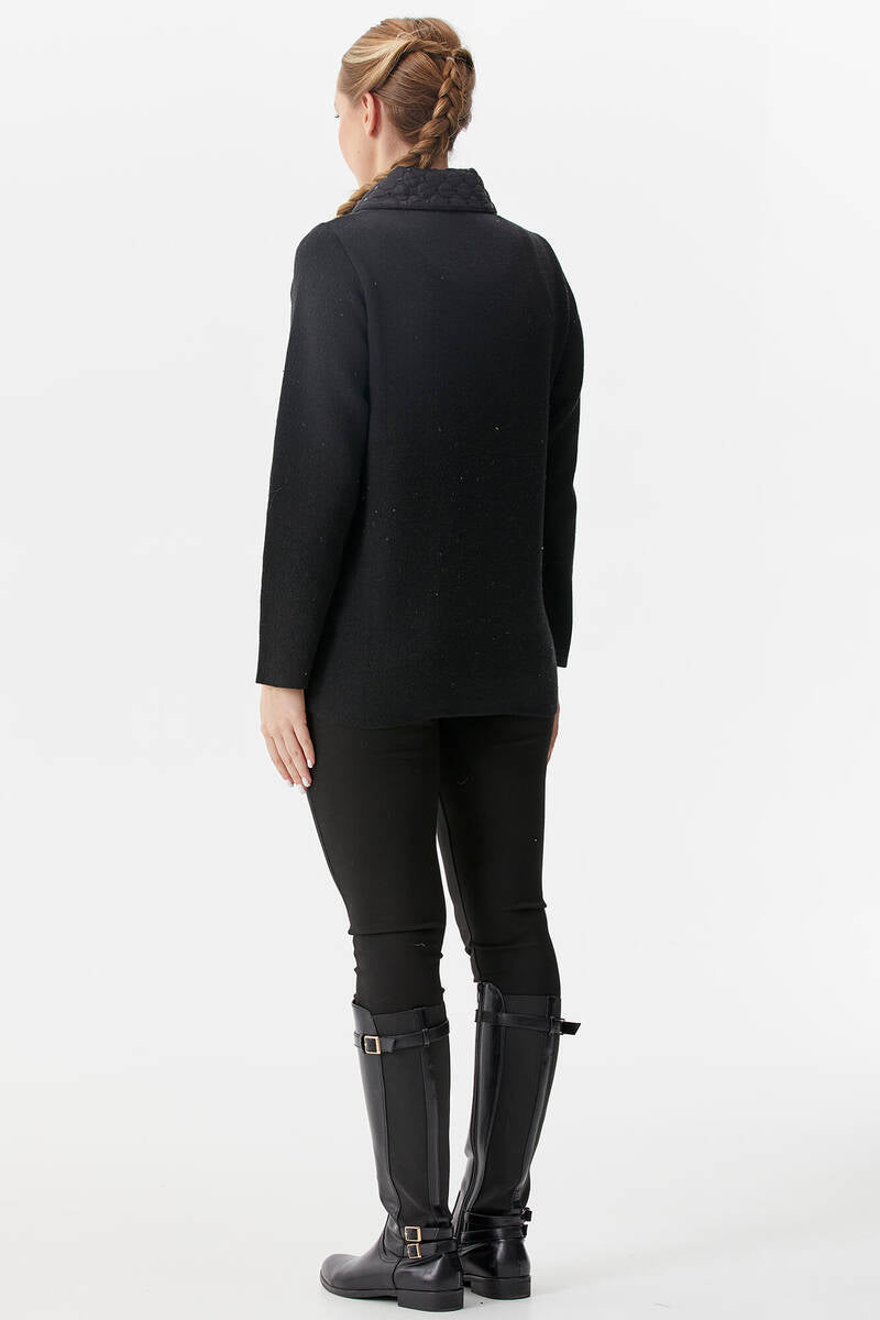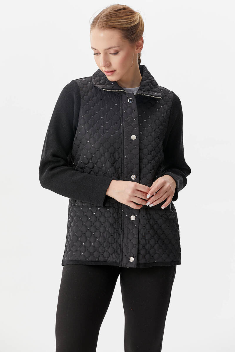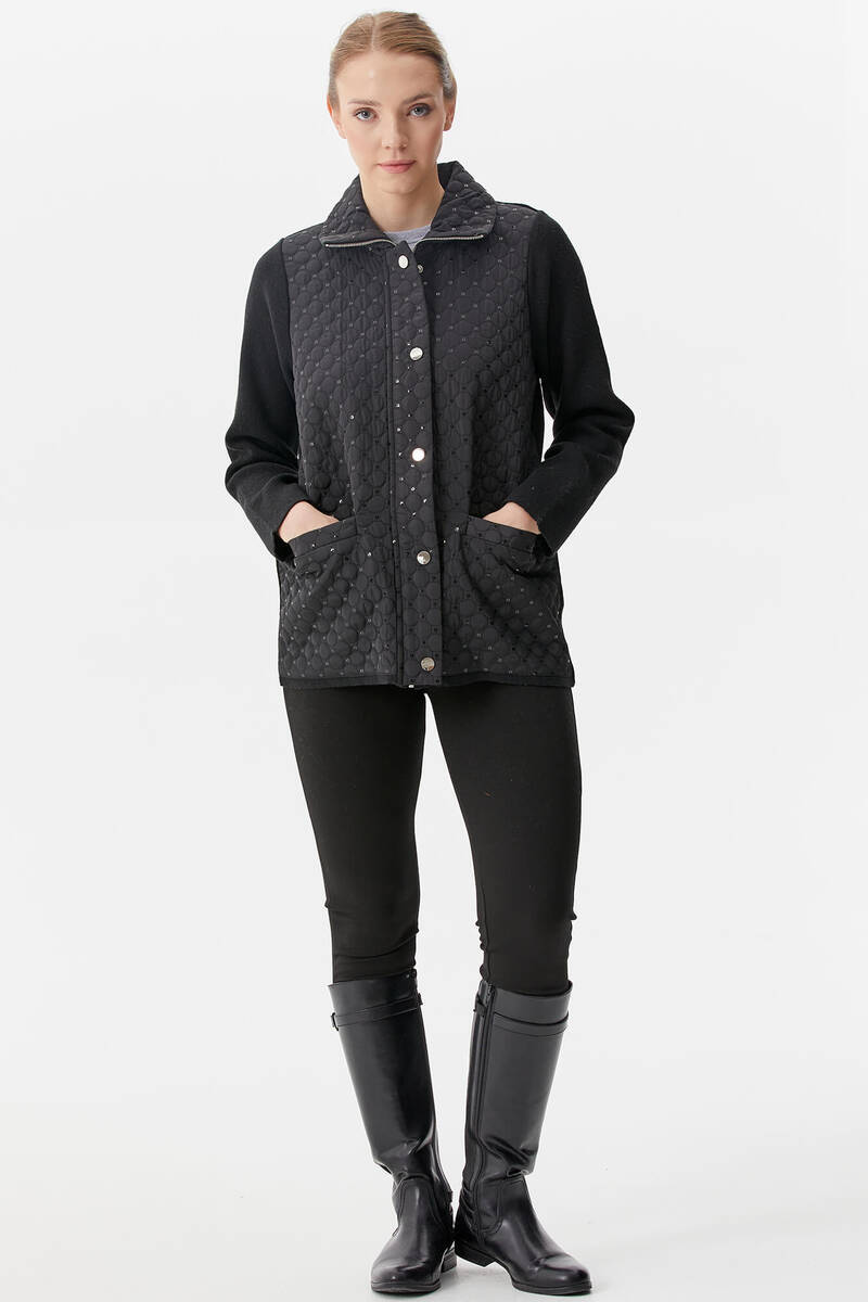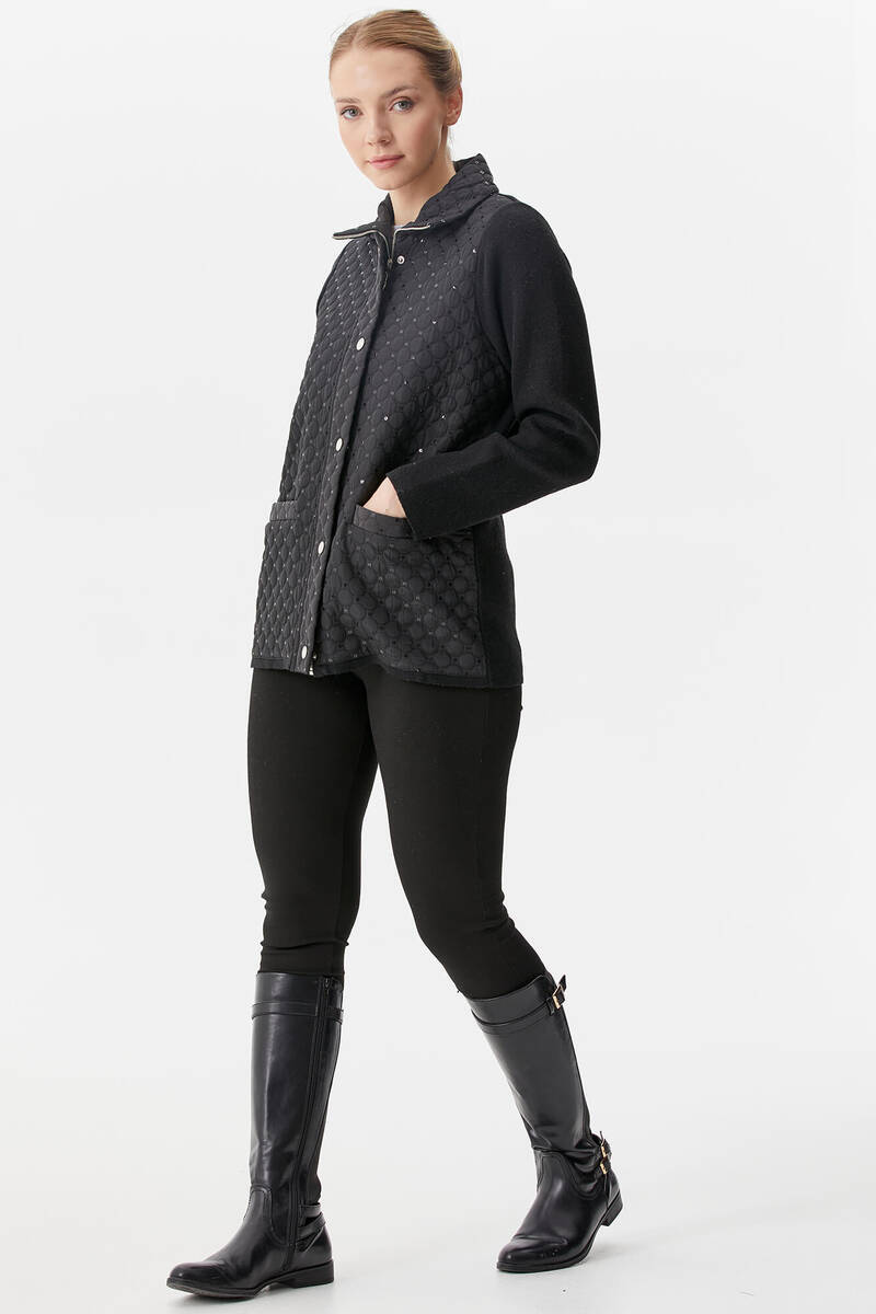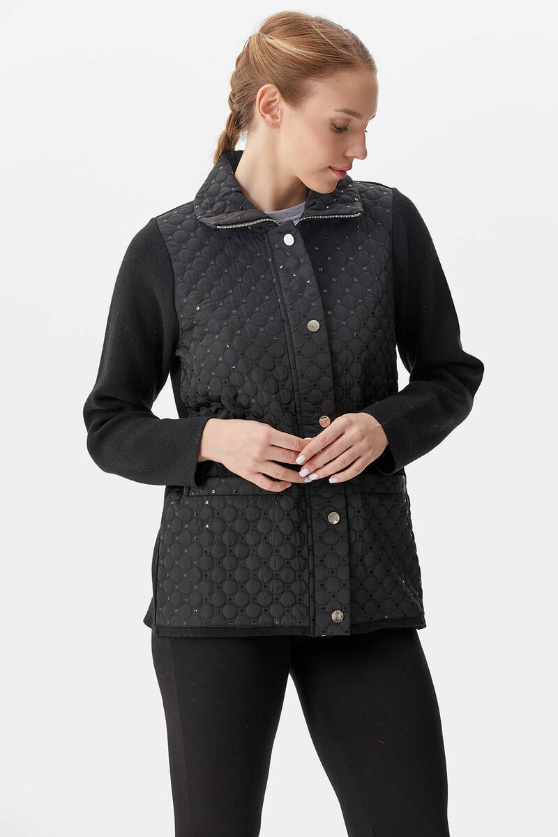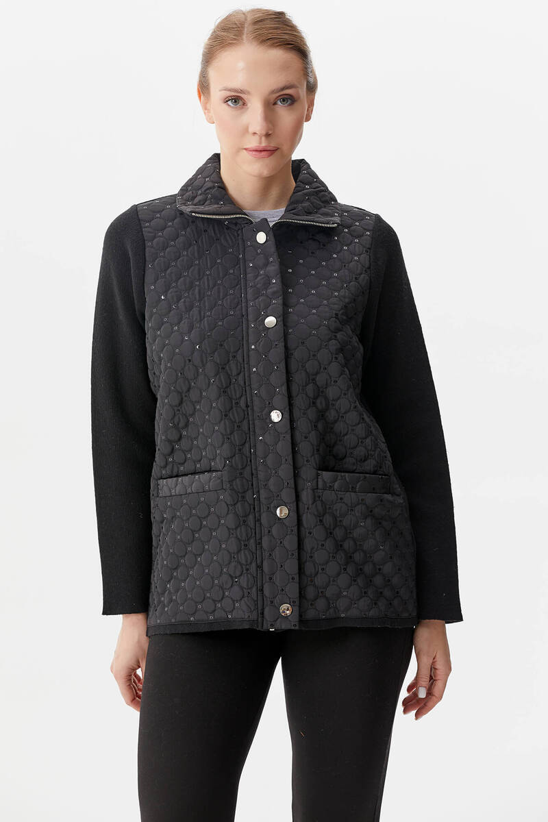 Stand Up Collar Studded Front Quilted Knitwear Jacket - Black