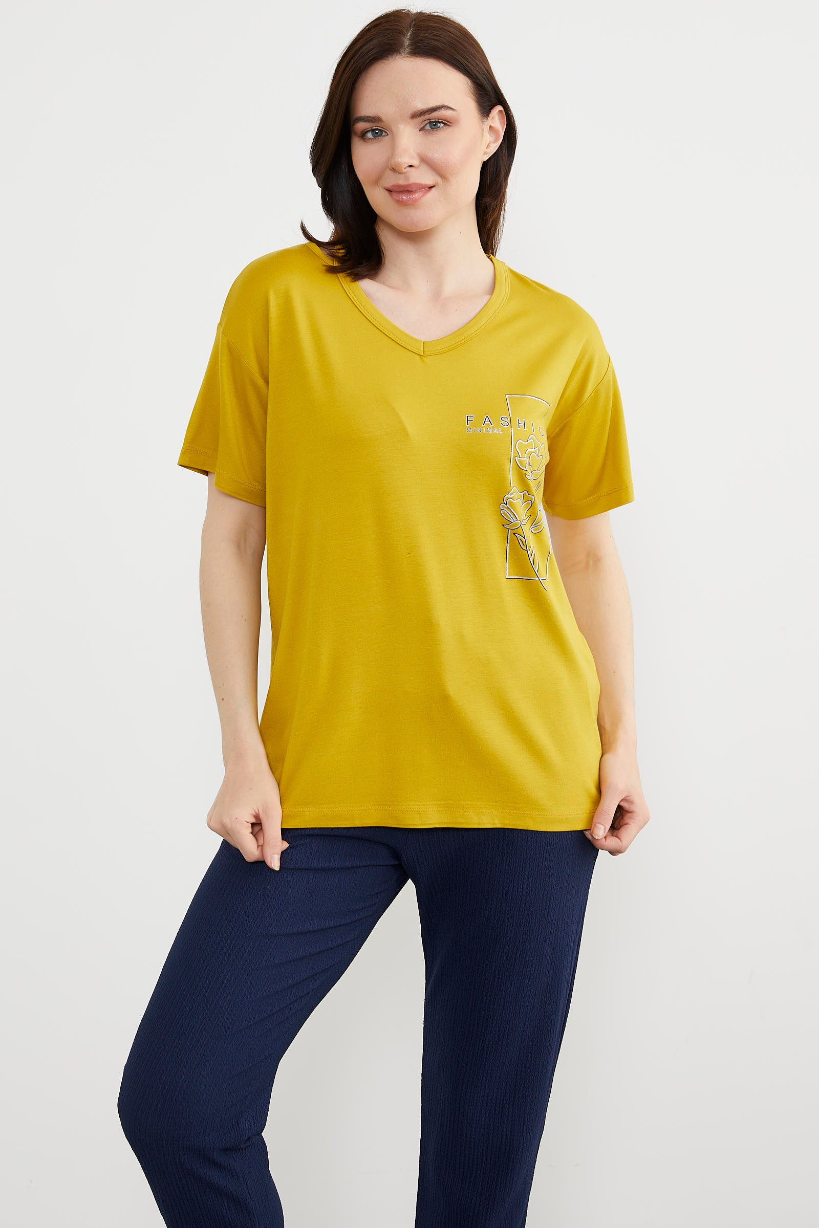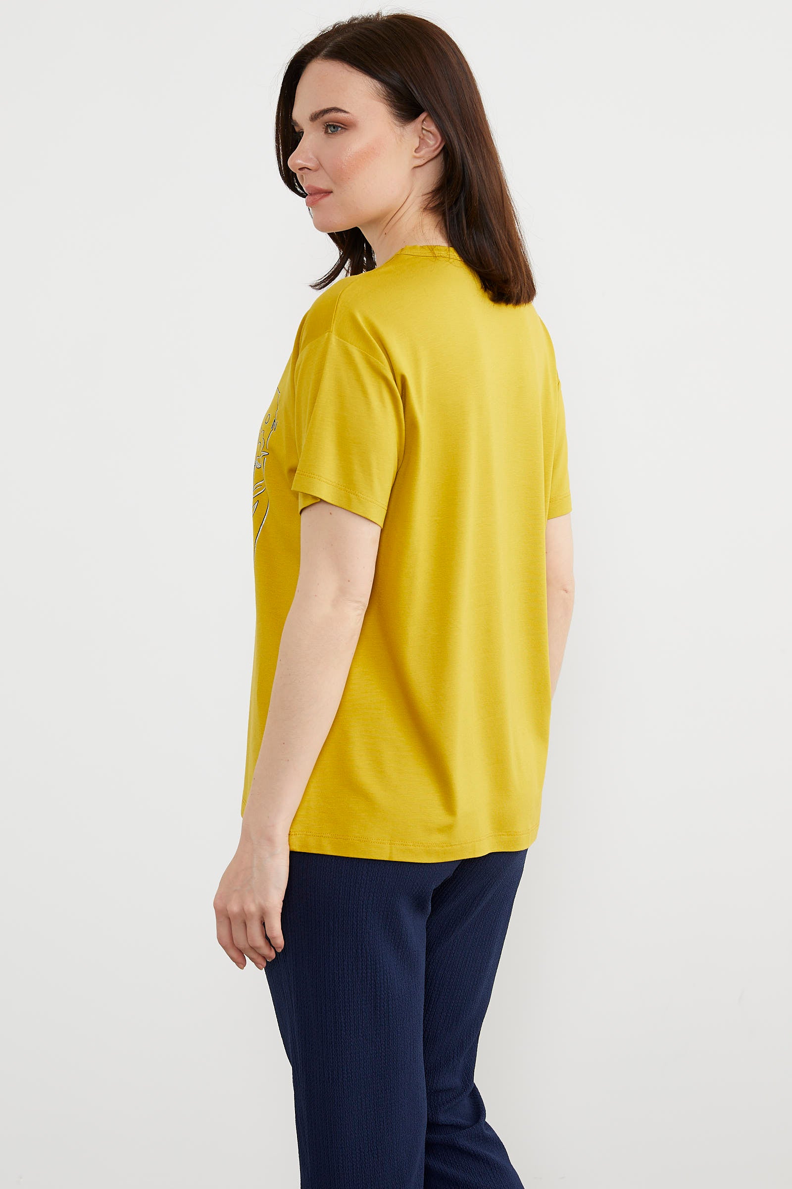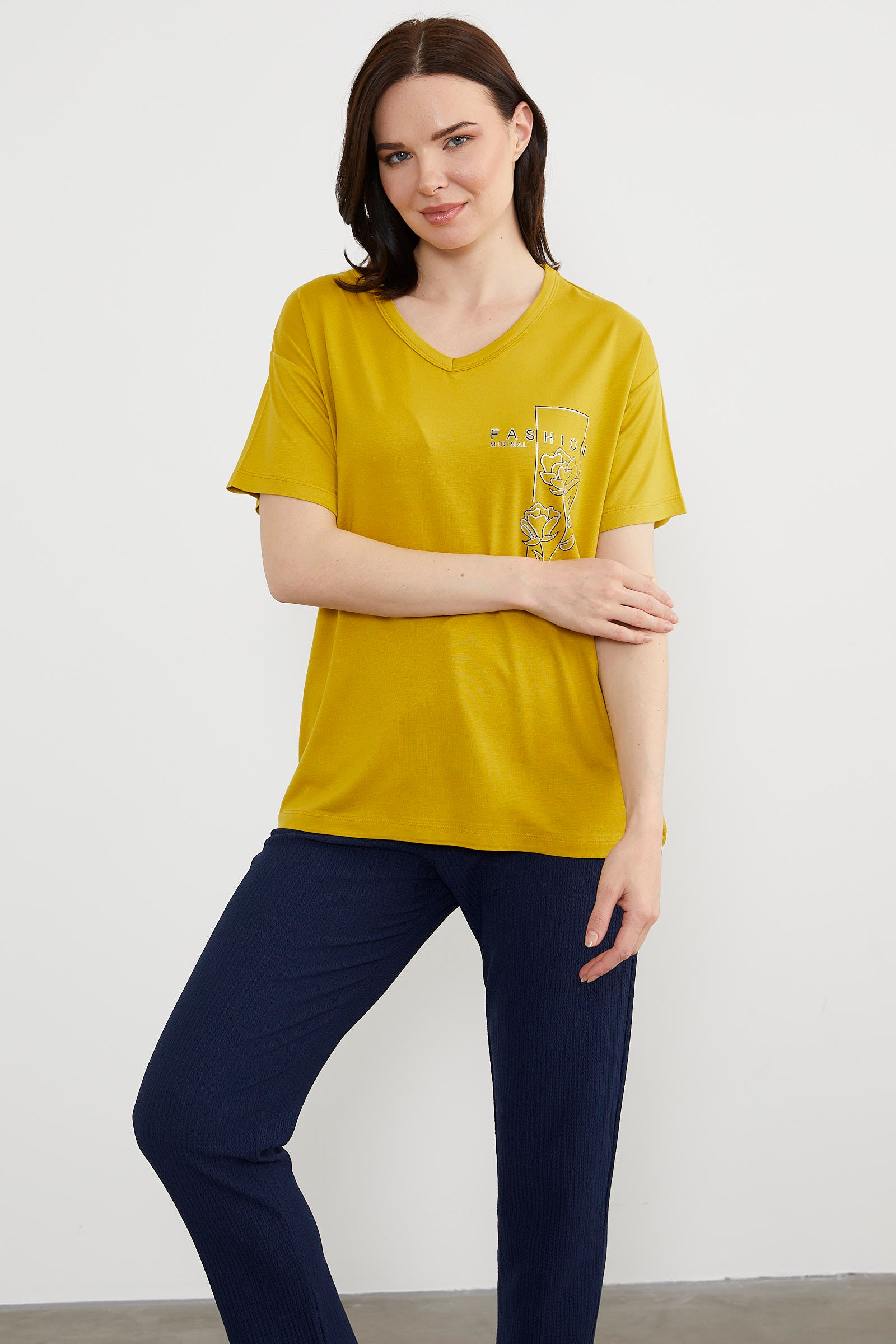 Practical t-shirt with a V-neck and elegant shoulder details. It will complement your combinations with different color options.