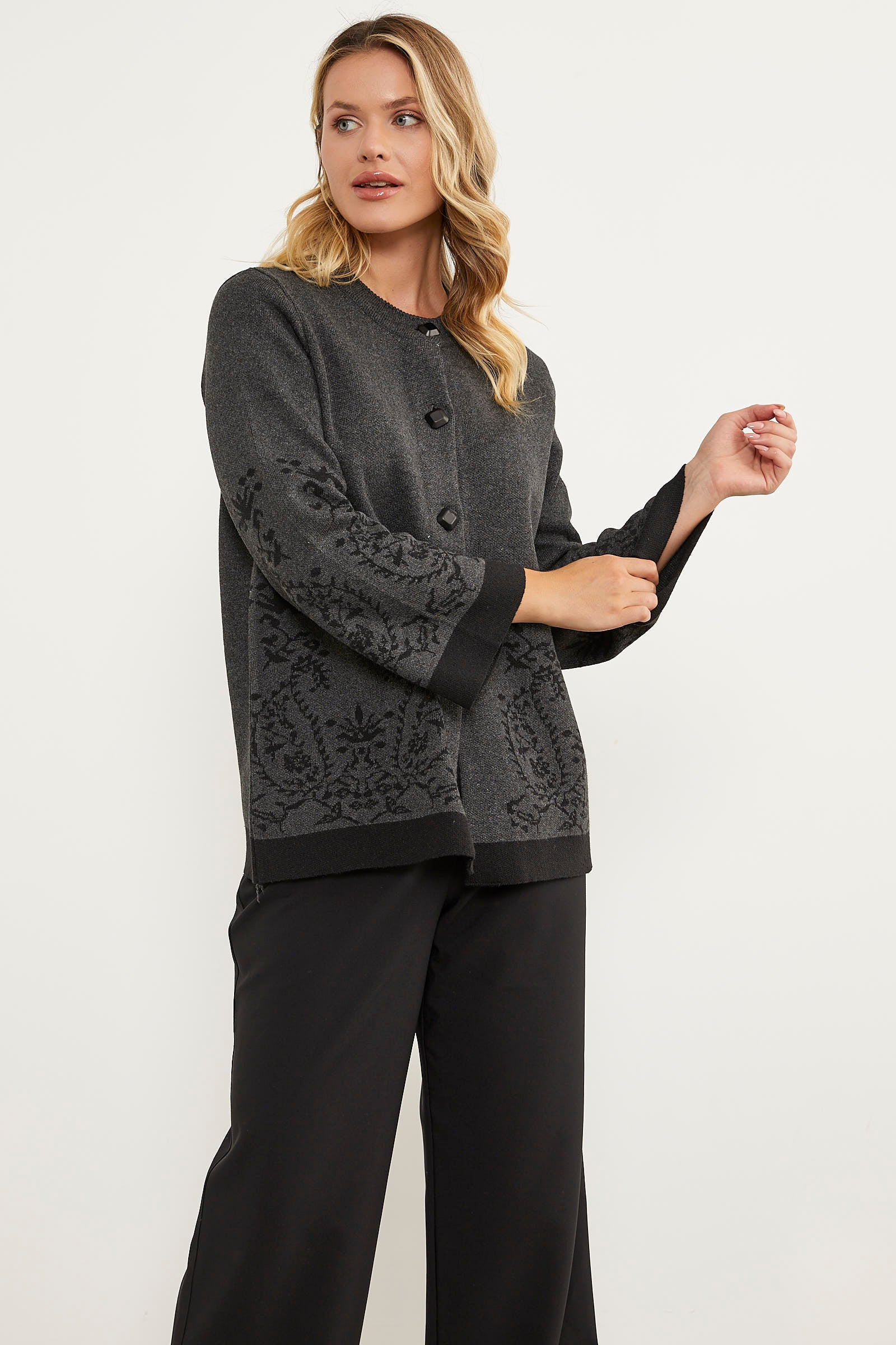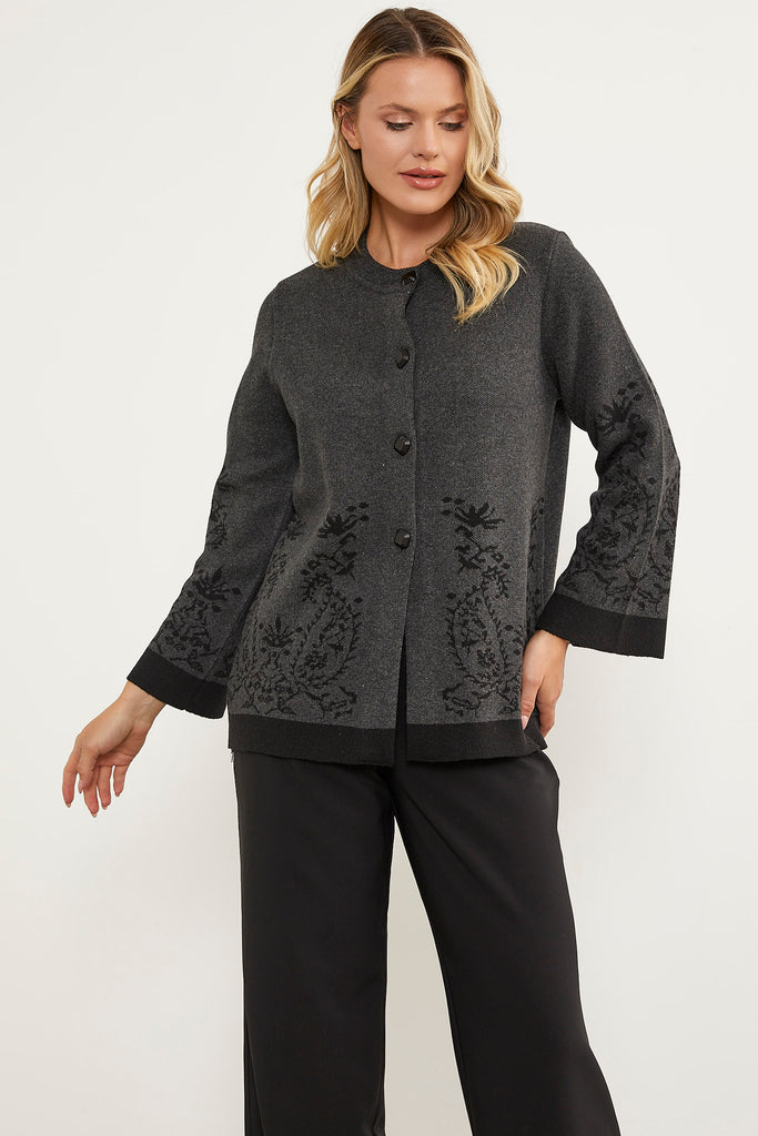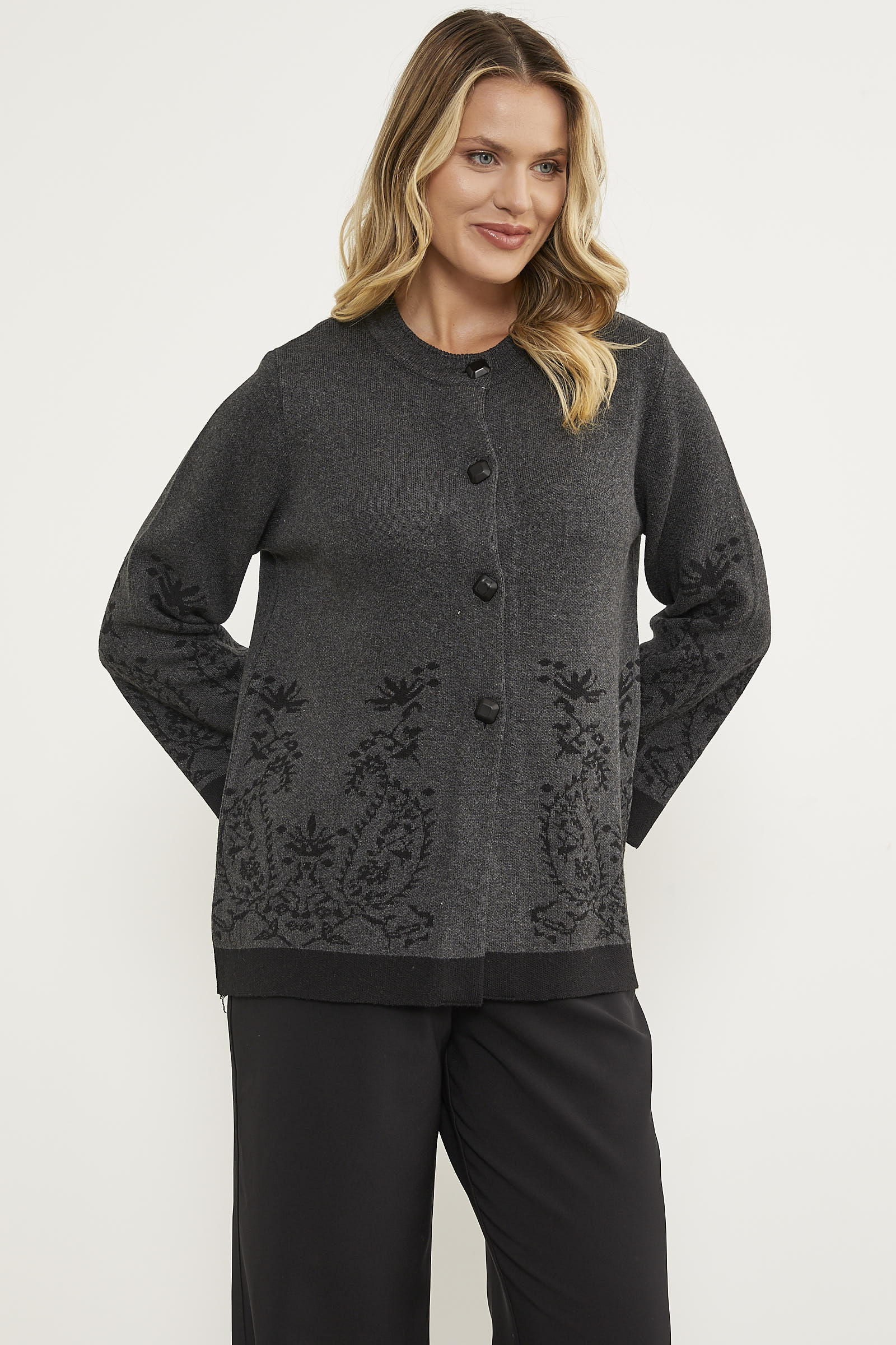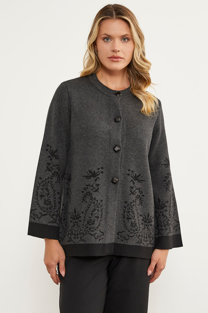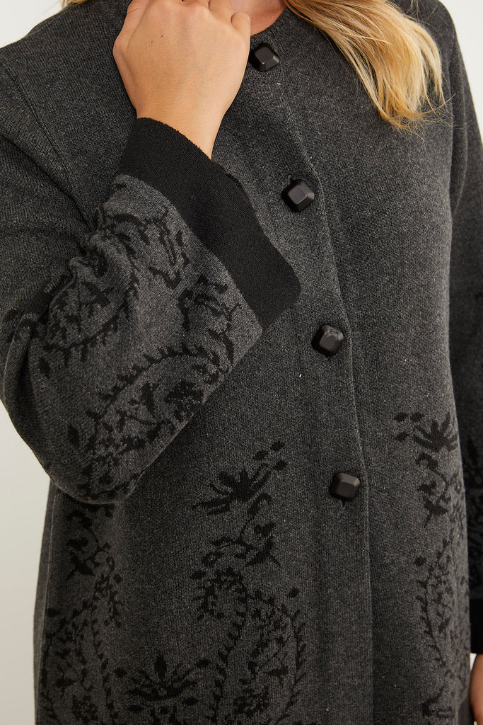 Solid Needle Buttoned Thick Knitwear Jacket - Anthracite