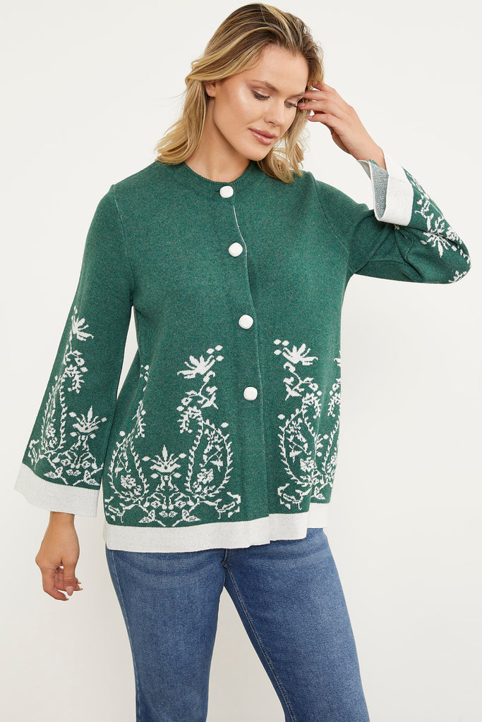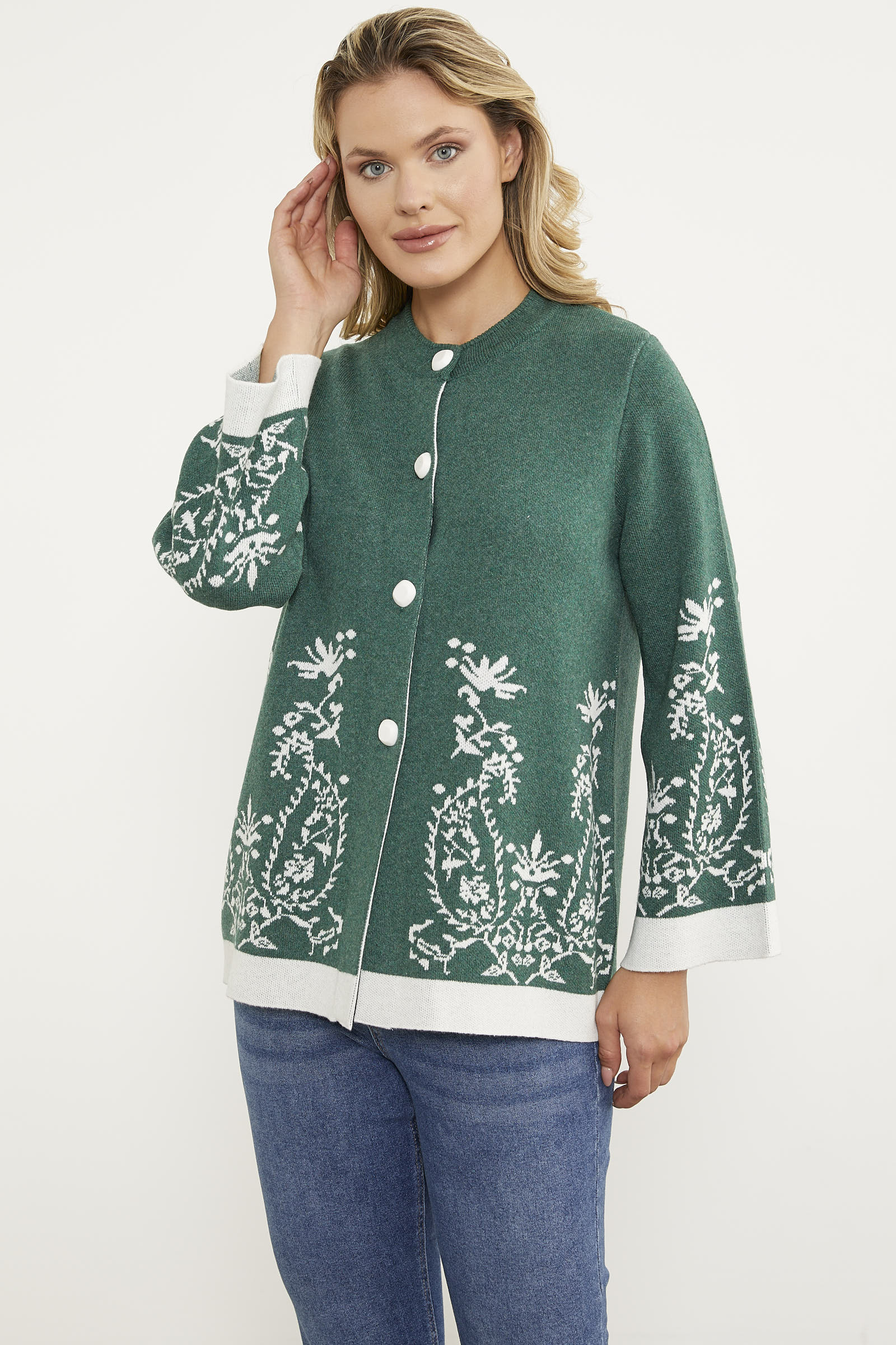 Solid Needle Buttoned Thick Knitwear Jacket - Green