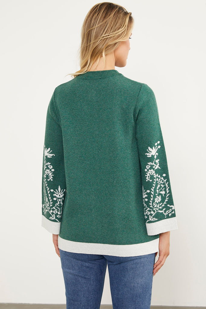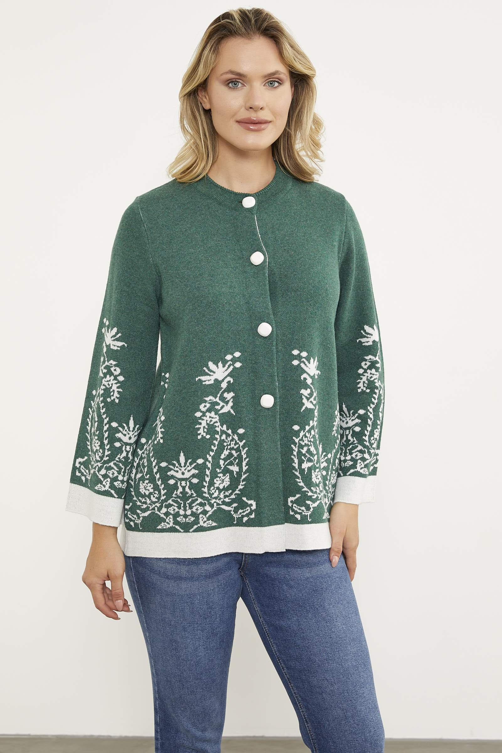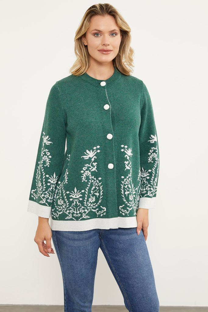 Designed in two colors, the buttoned tricot jacket offers you options with different color alternatives while providing comfort and difference with its Spanish sleeve cut. The stripe color detail on the hem and cuffs captures a perfect harmony with the front and sleeve patterns, saving the piece from being ordinary.