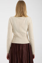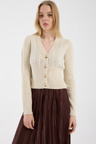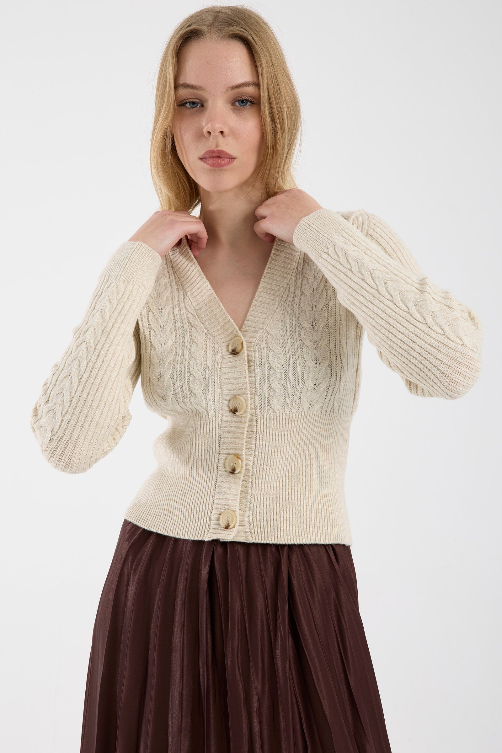 Düğmeli Pirinç Motifli Triko Hırka - Taş