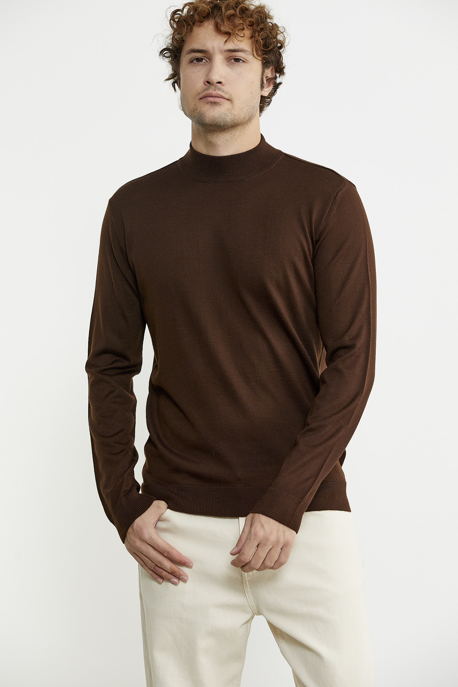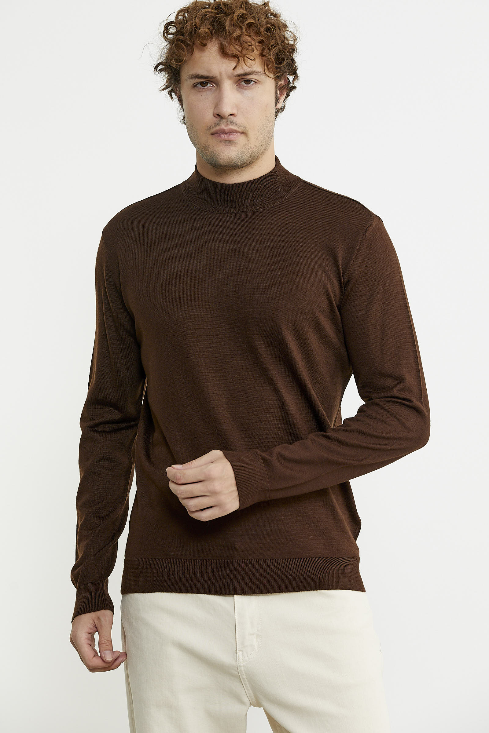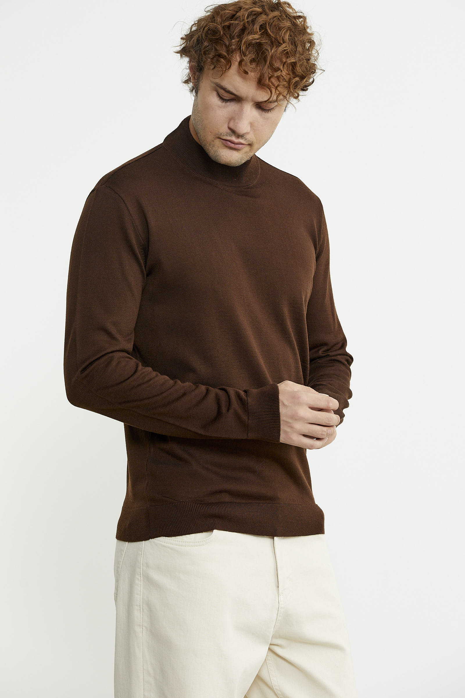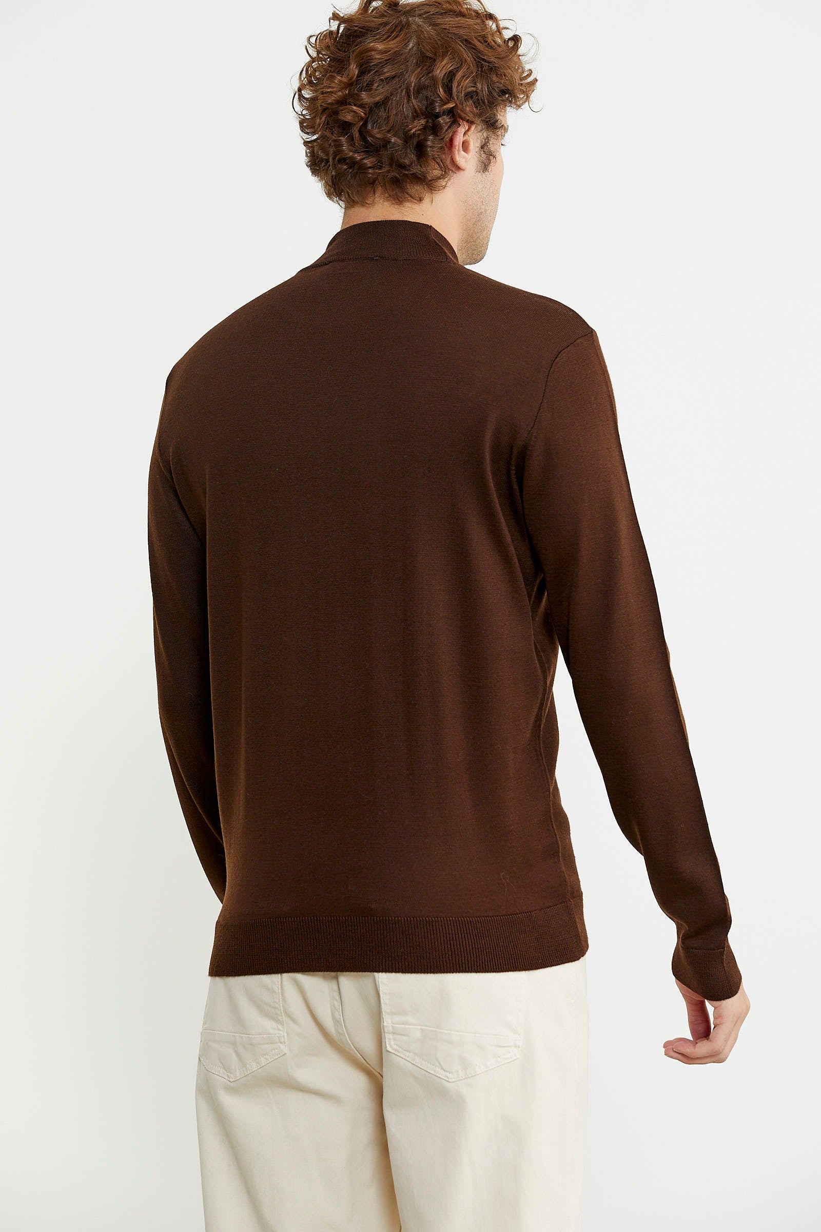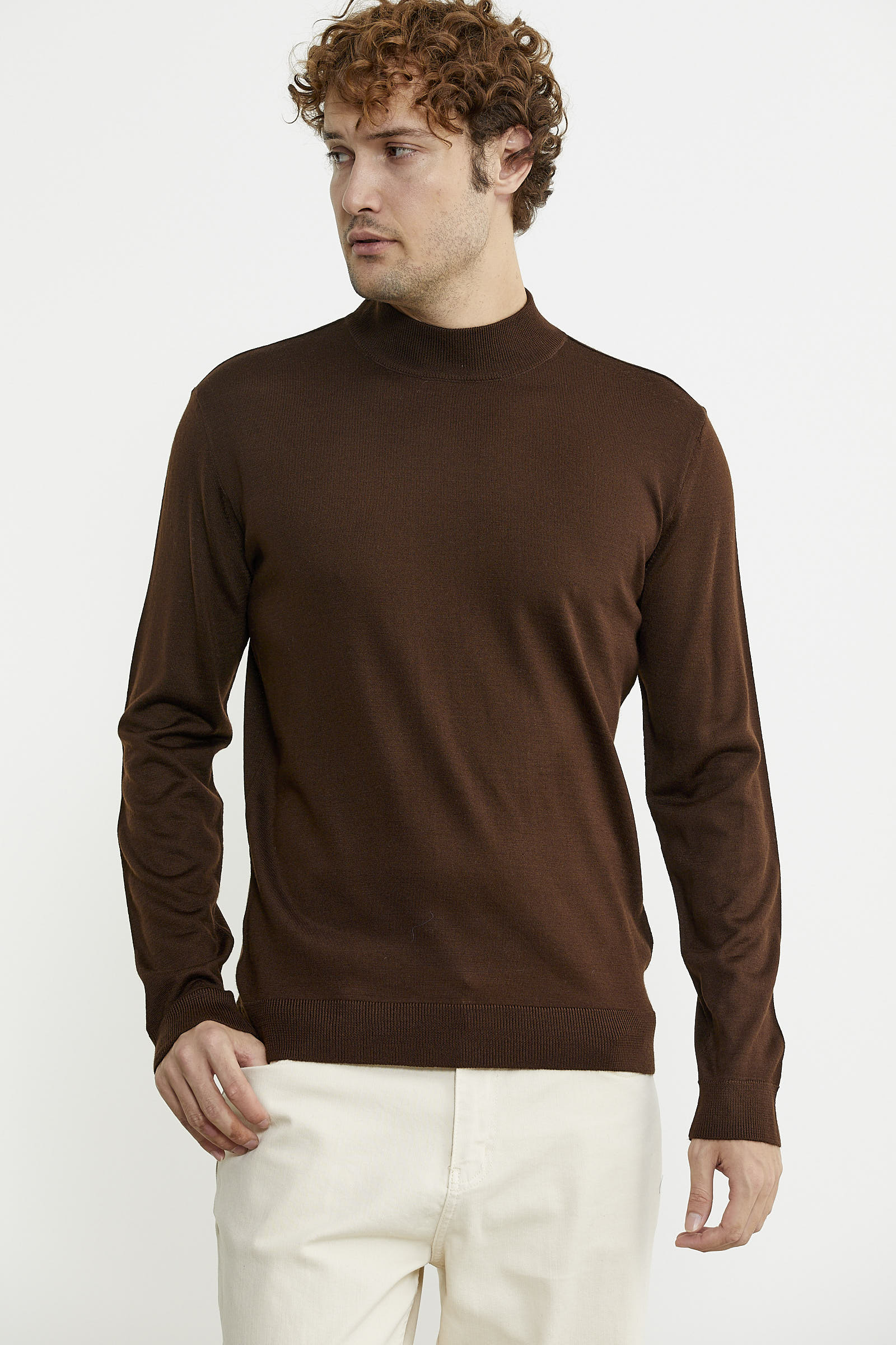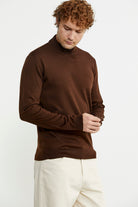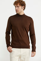 Men's Half Turtleneck Knitwear Sweater - Brown