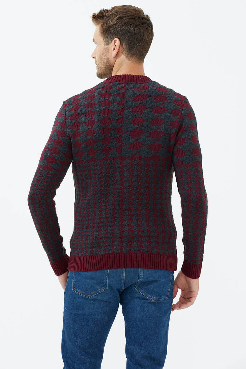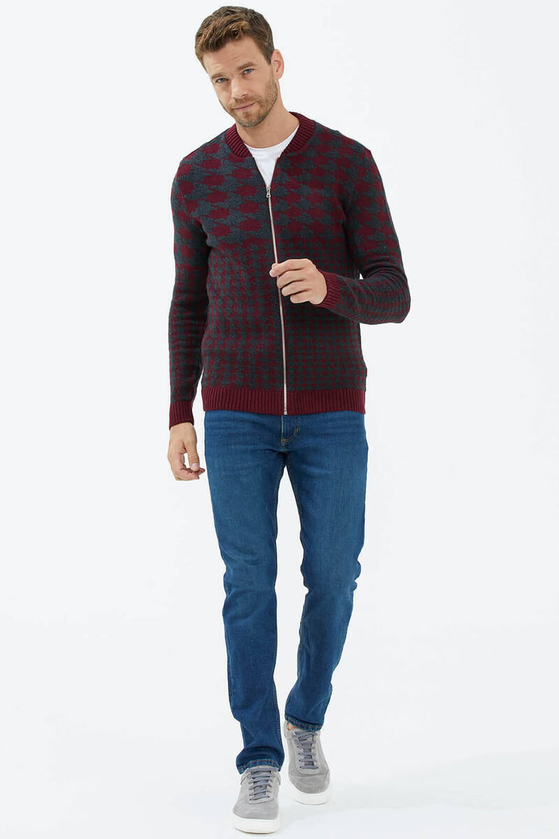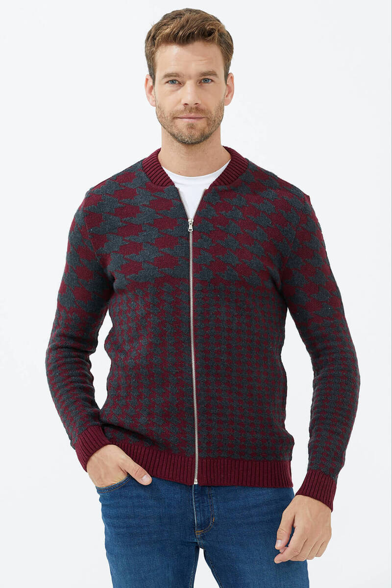 Zipper Block Pattern Knitwear Cardigan - Claret Red