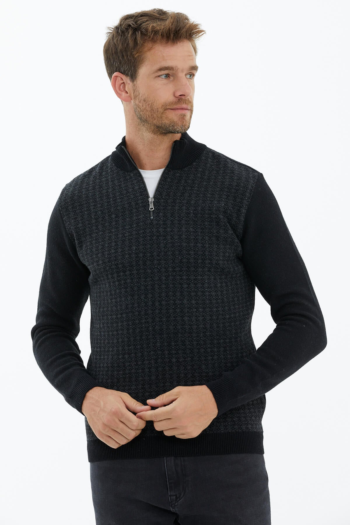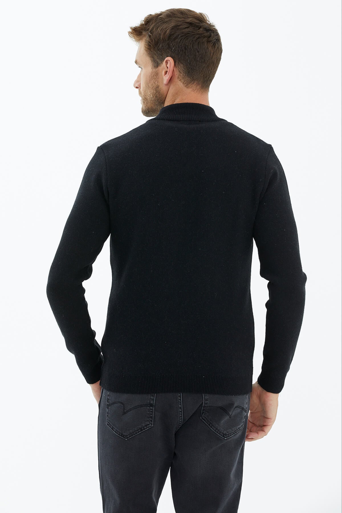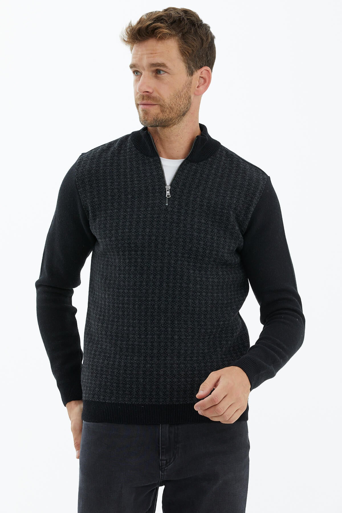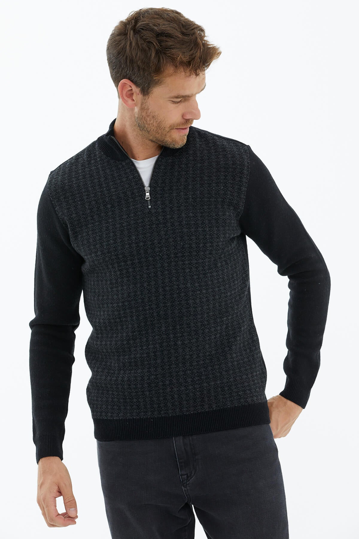 Zip Collar Knitwear Sweater - Black