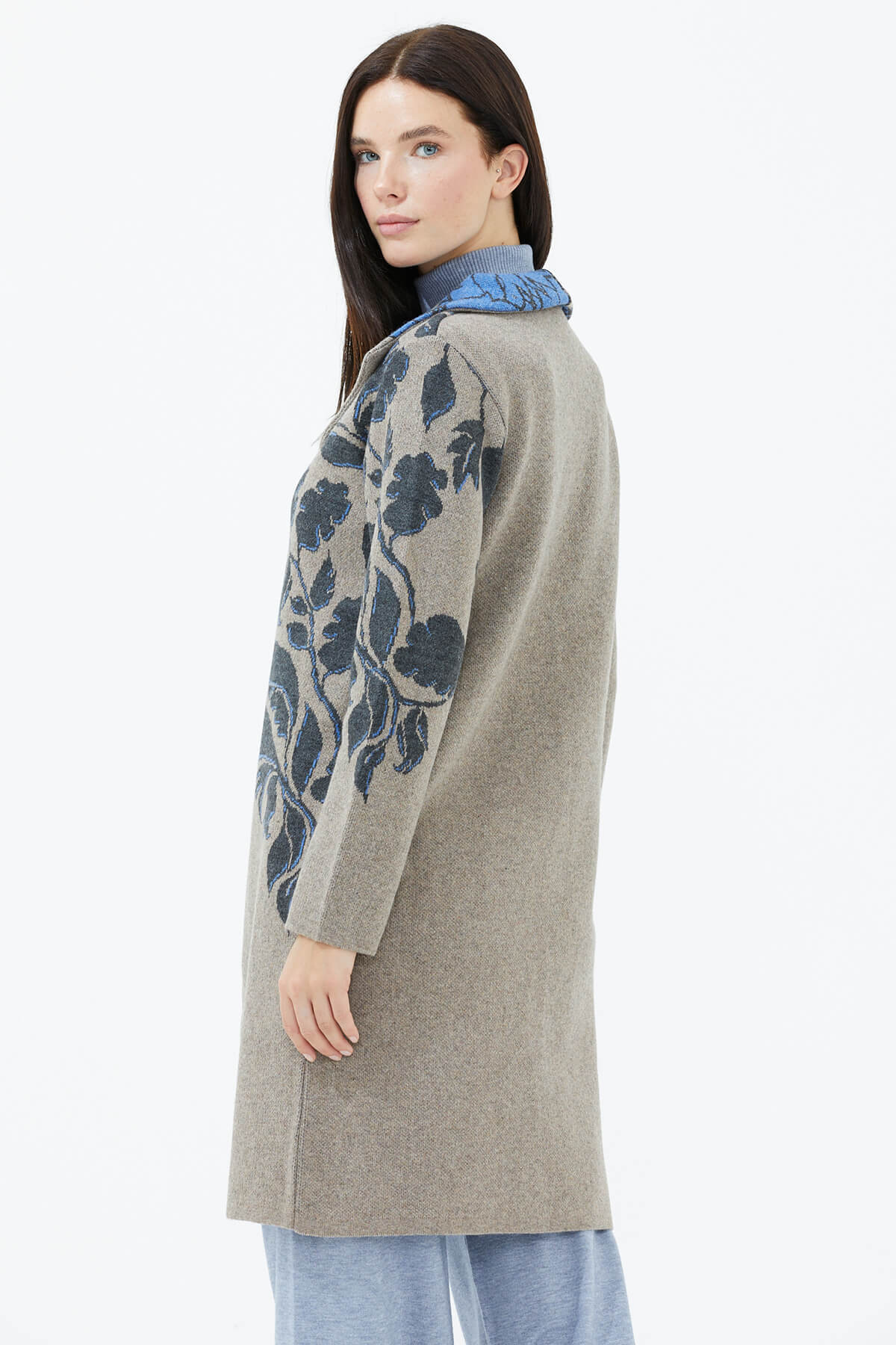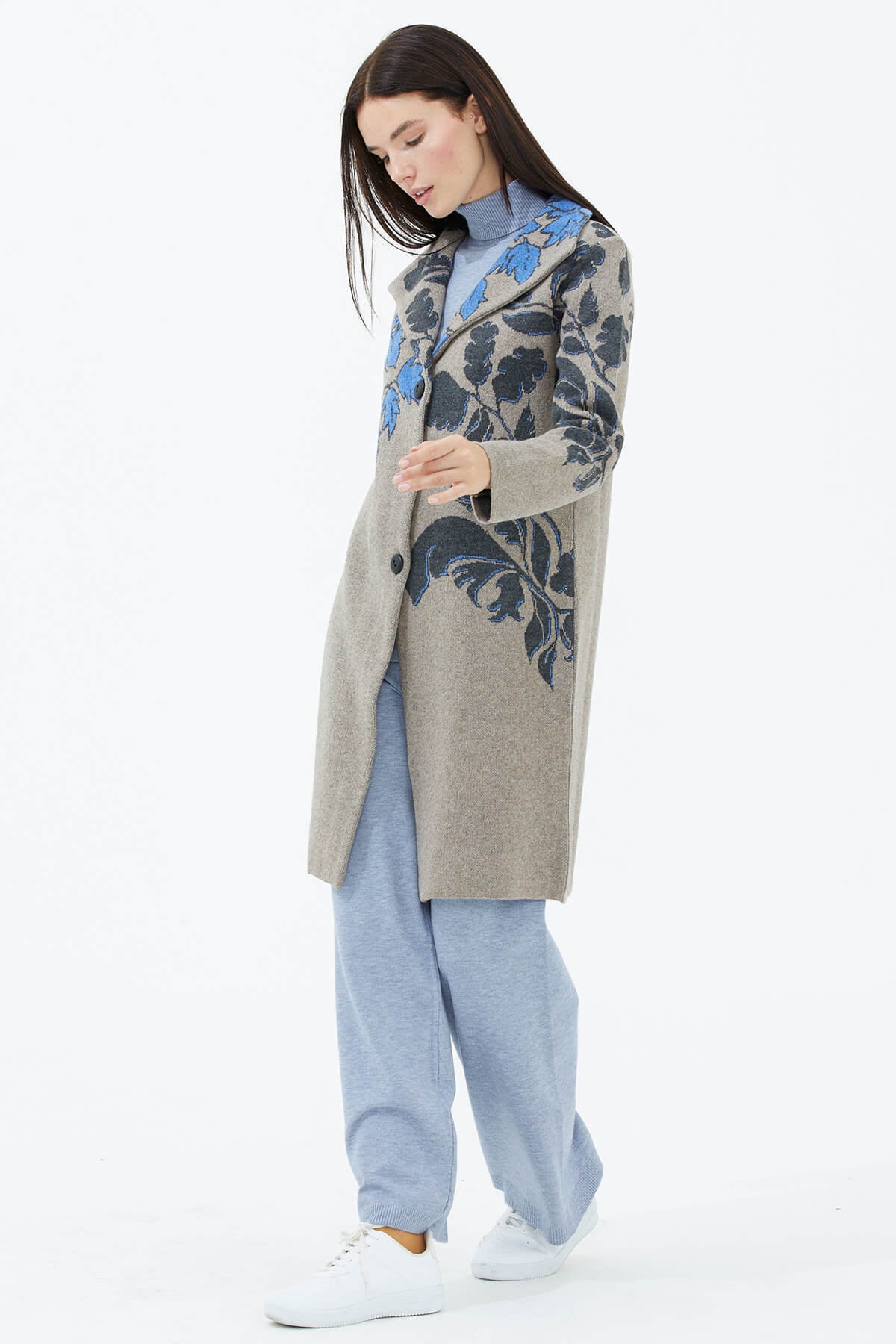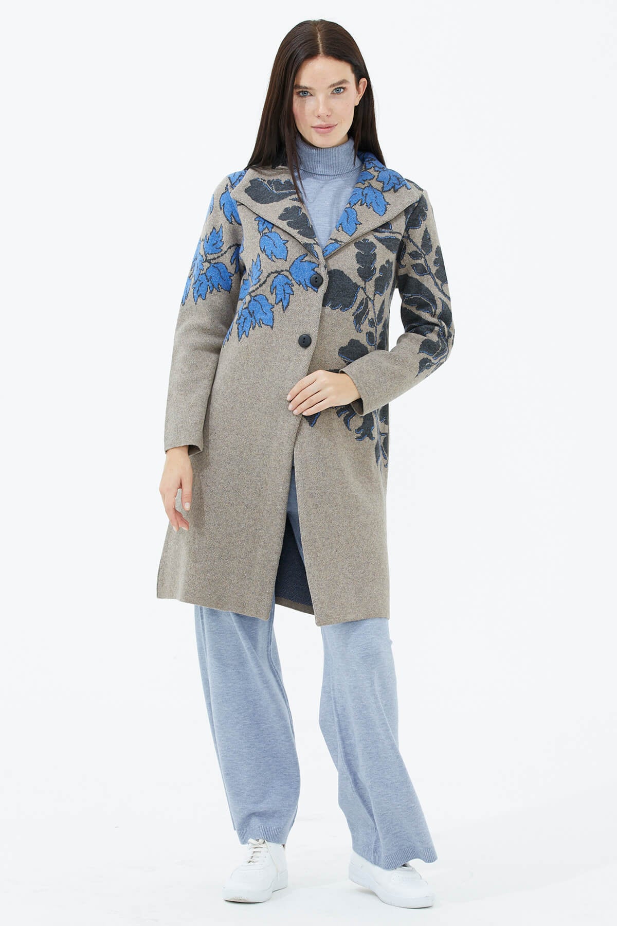 The cardigan form of the knitwear, which is the most ideal fabric for seasonal transitions, is the savior piece. You can achieve a fit and casual look with the most preferred patterned long knit sweater.