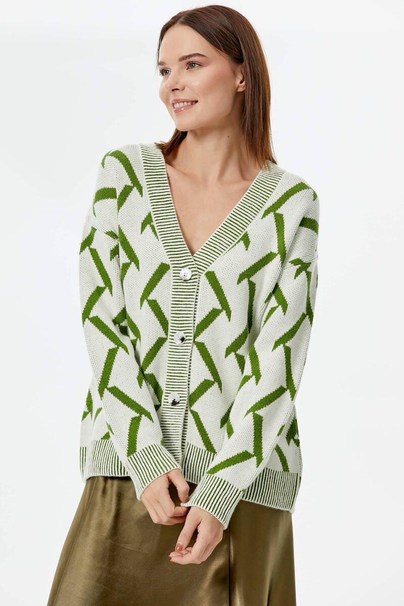 Geometric Patterned Knitwear Cardigan - Bone - Green