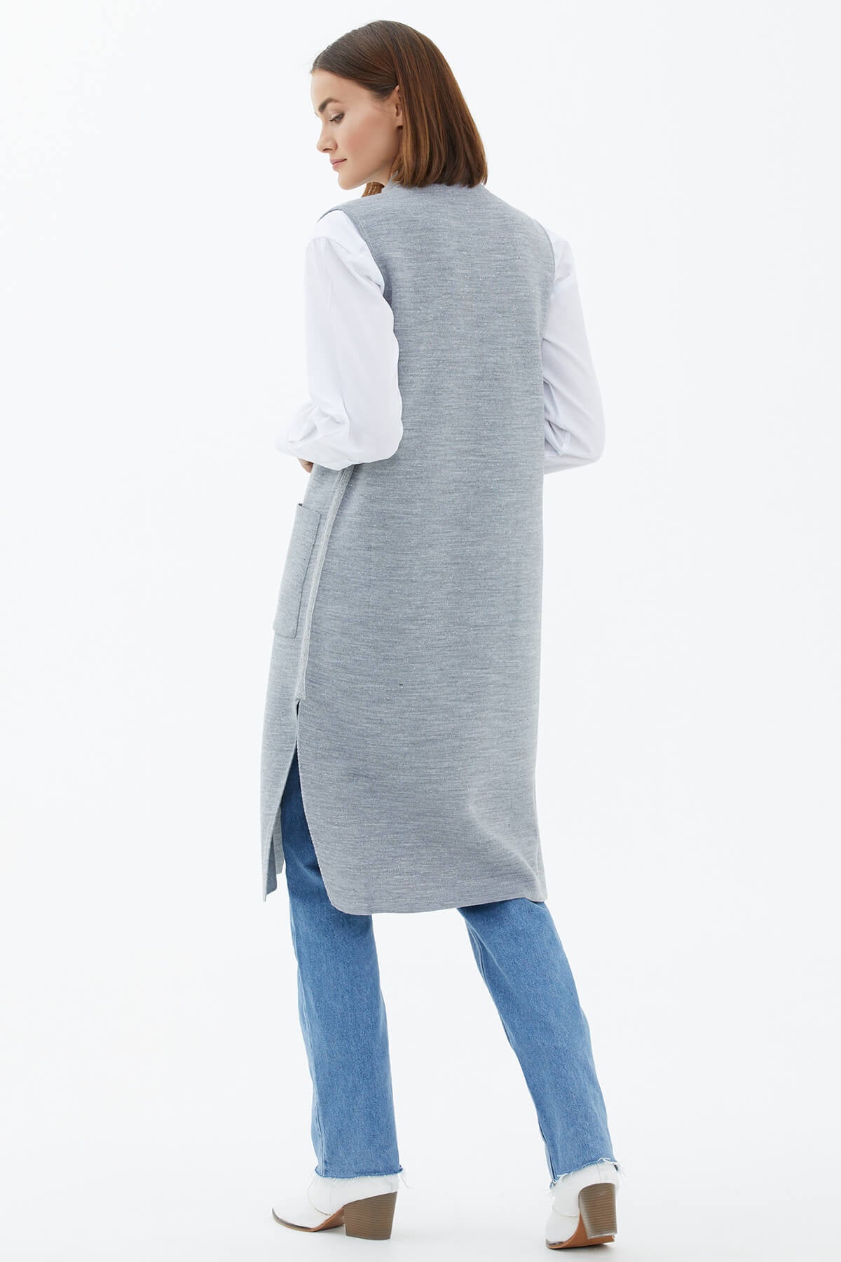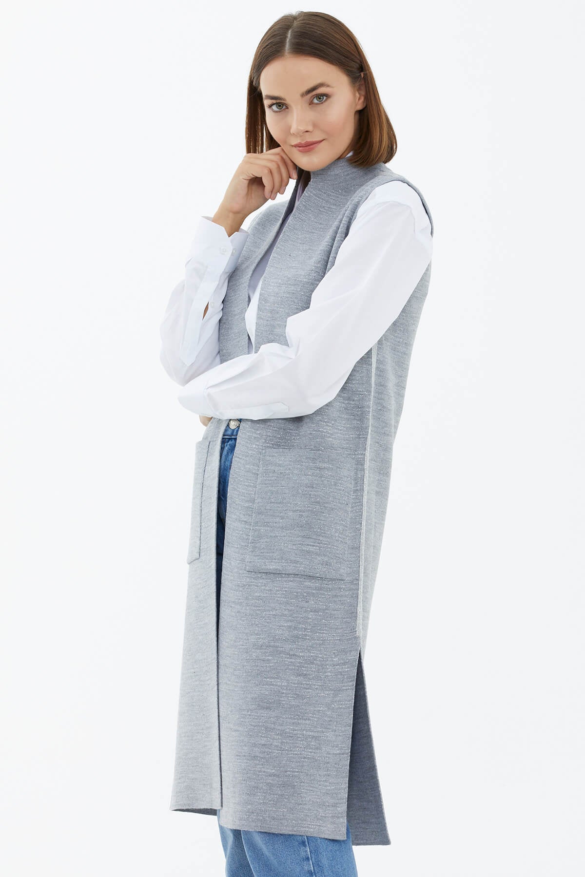 Glitter Detailed Knitwear Vest With Judge Collar Pocket - Gray