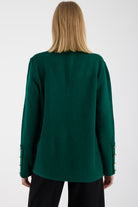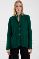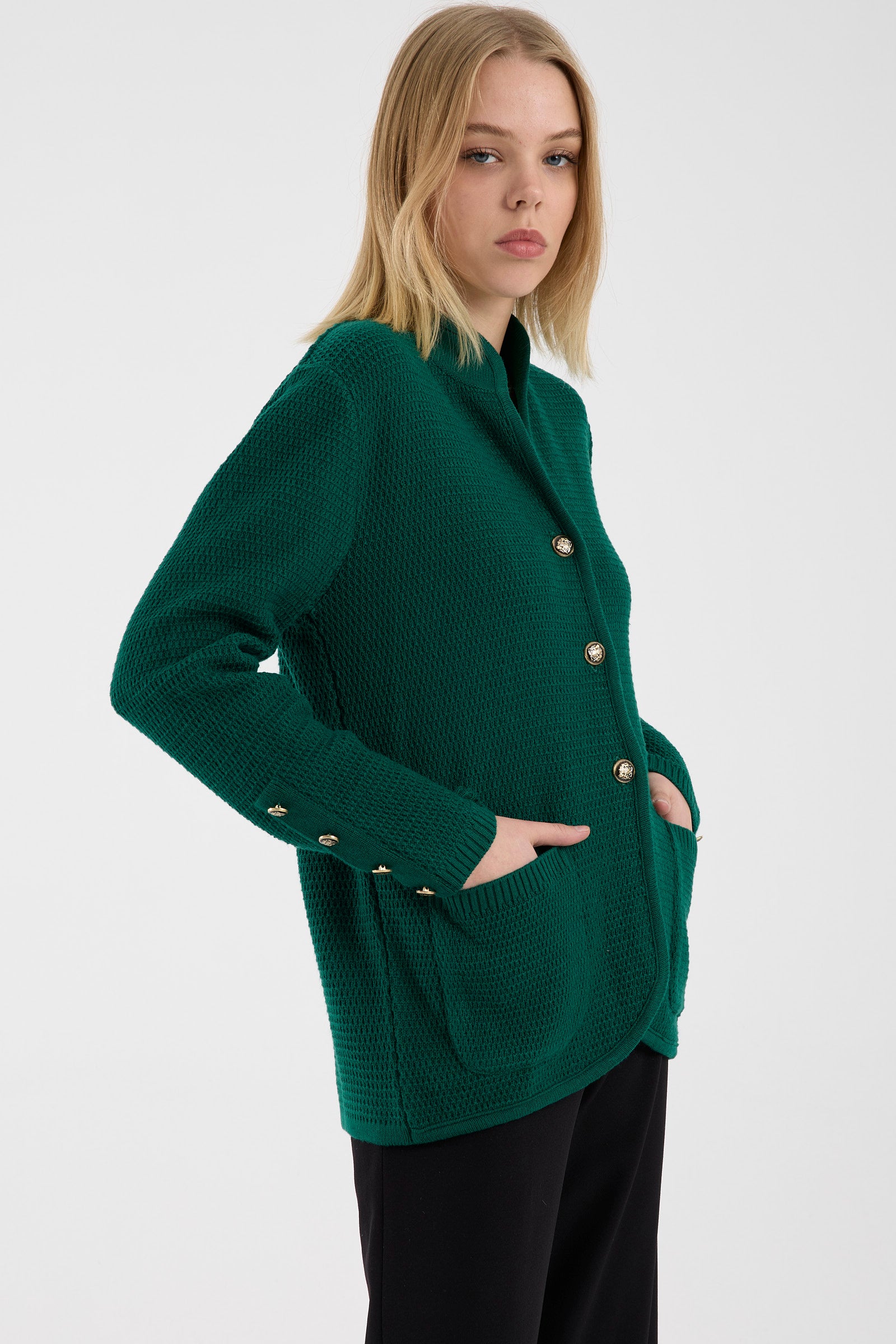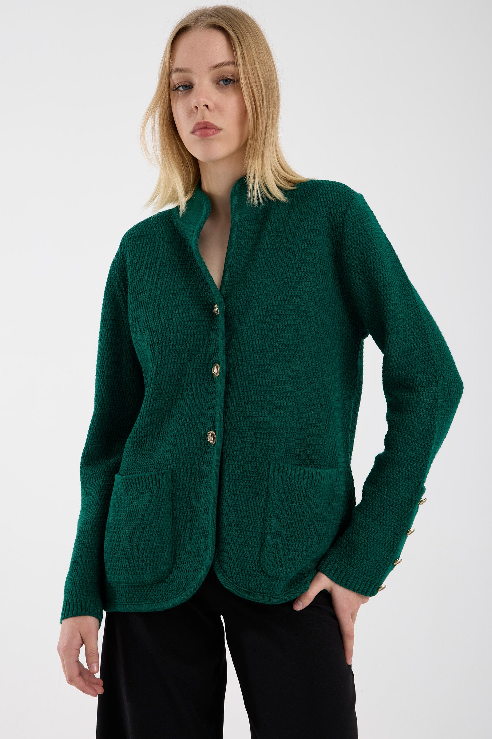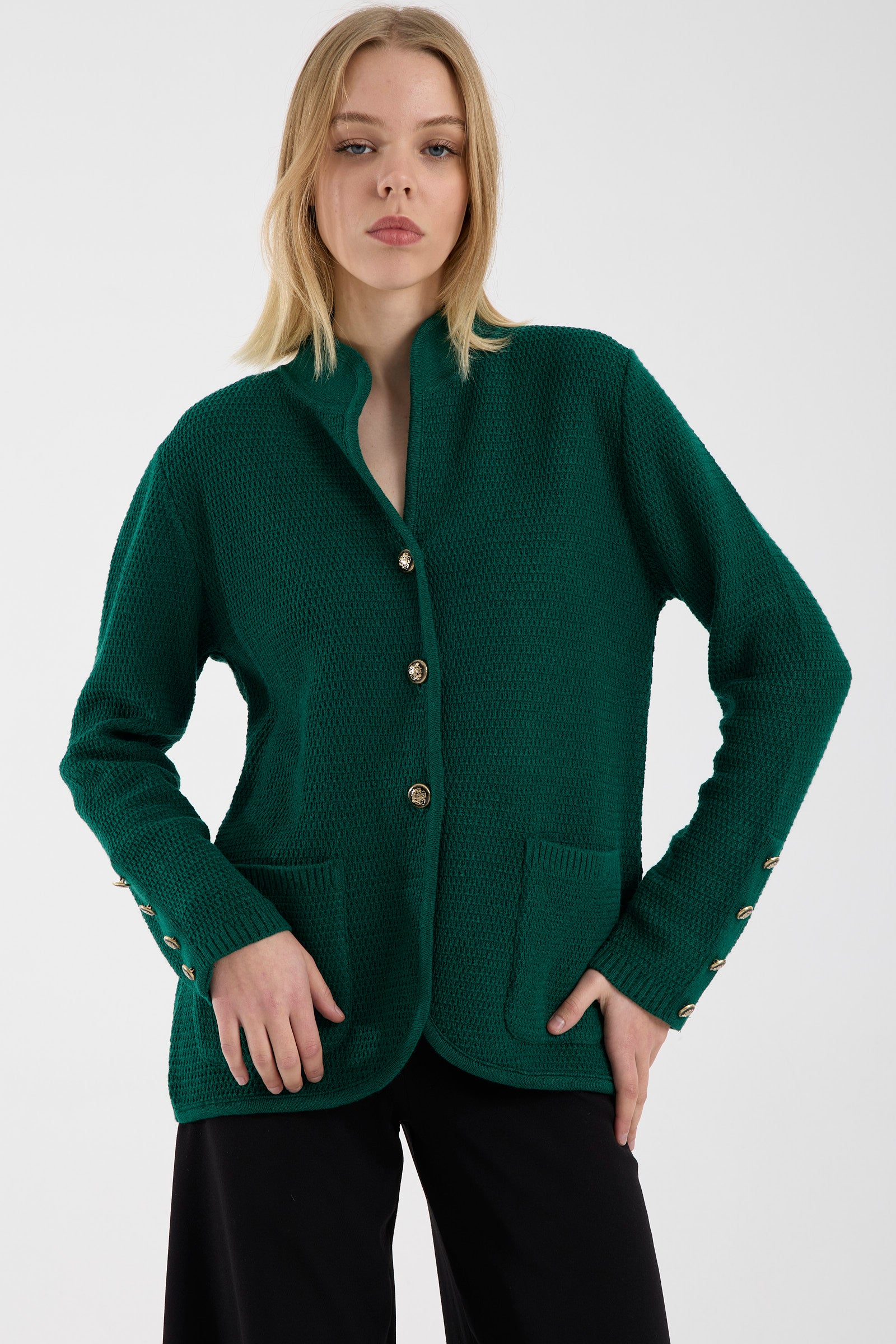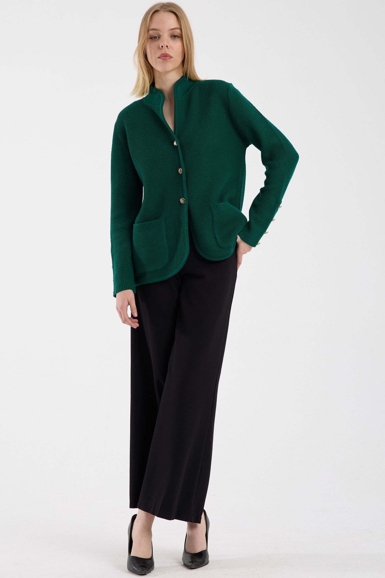 Hakim Yaka Düğmeli Yünlü Triko Ceket - Yeşil