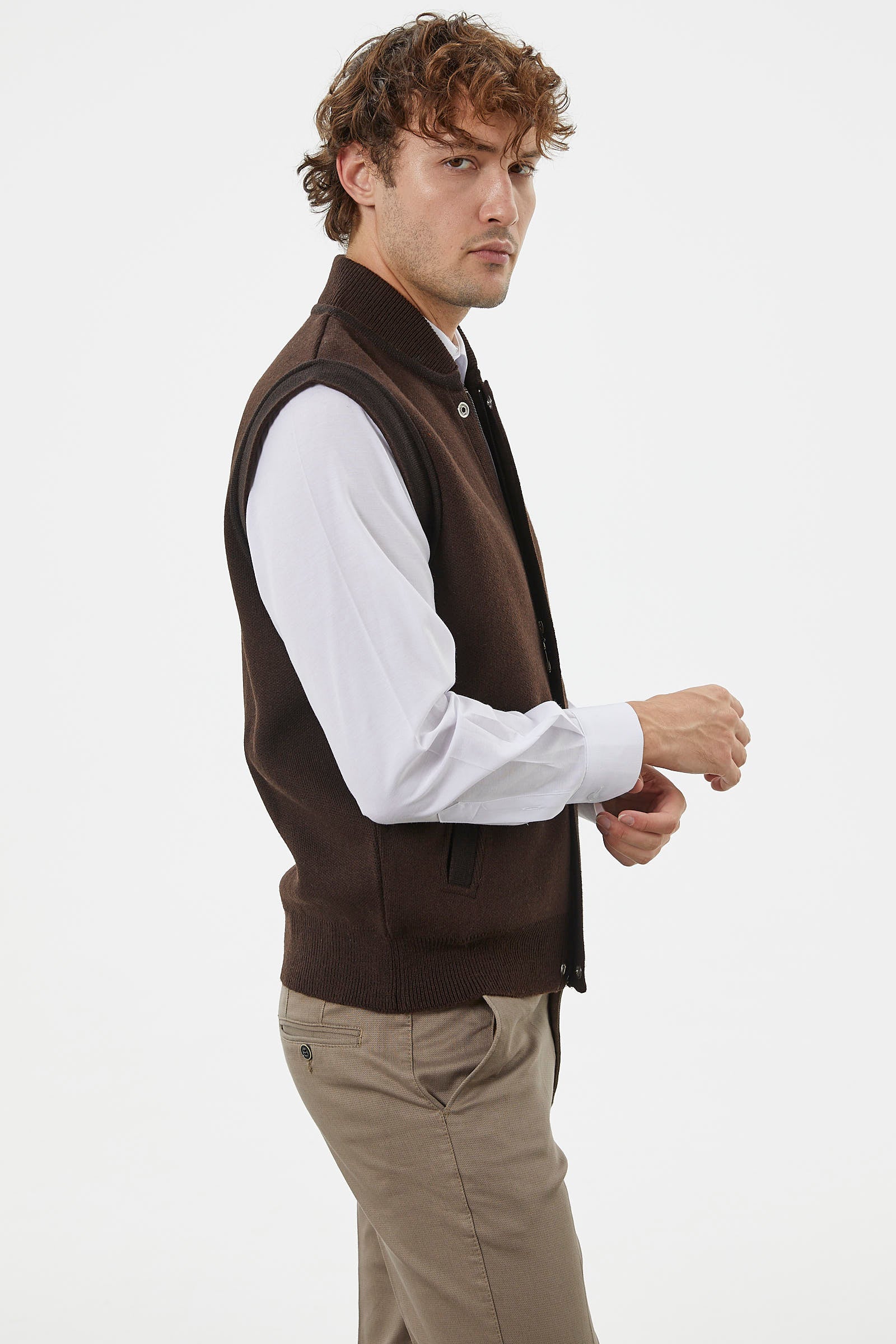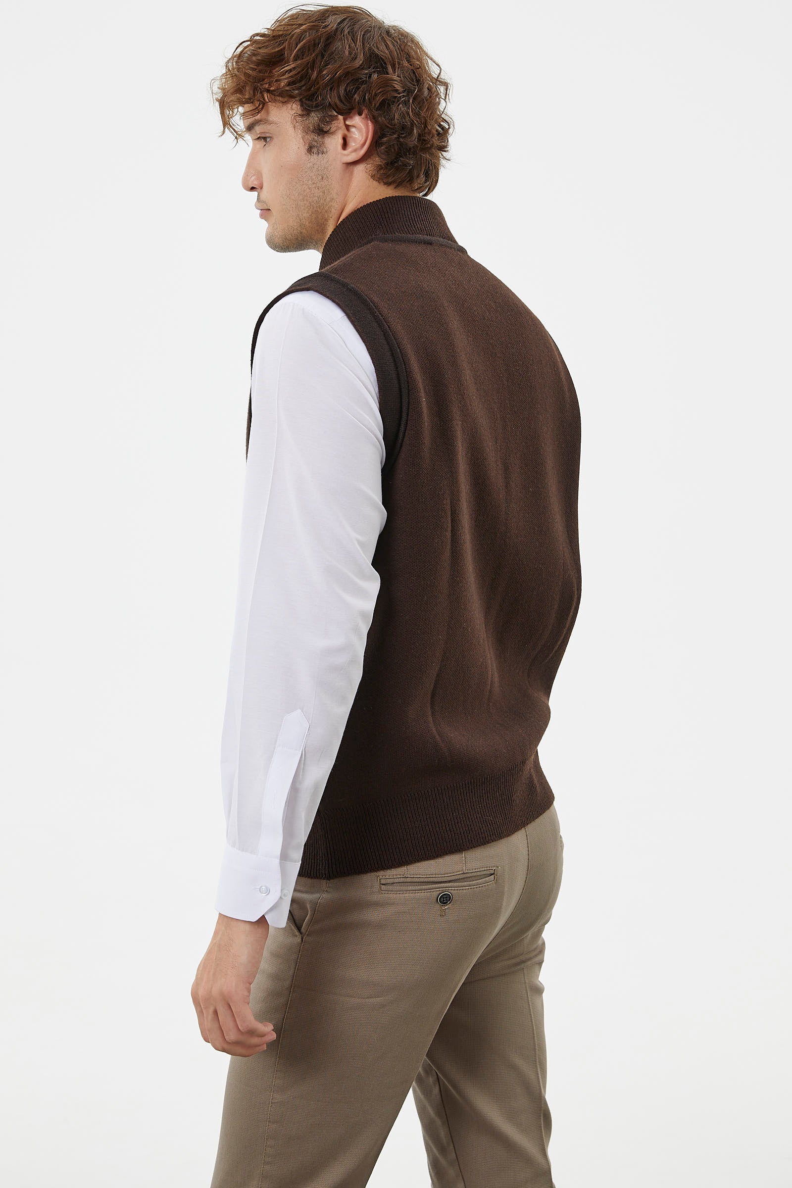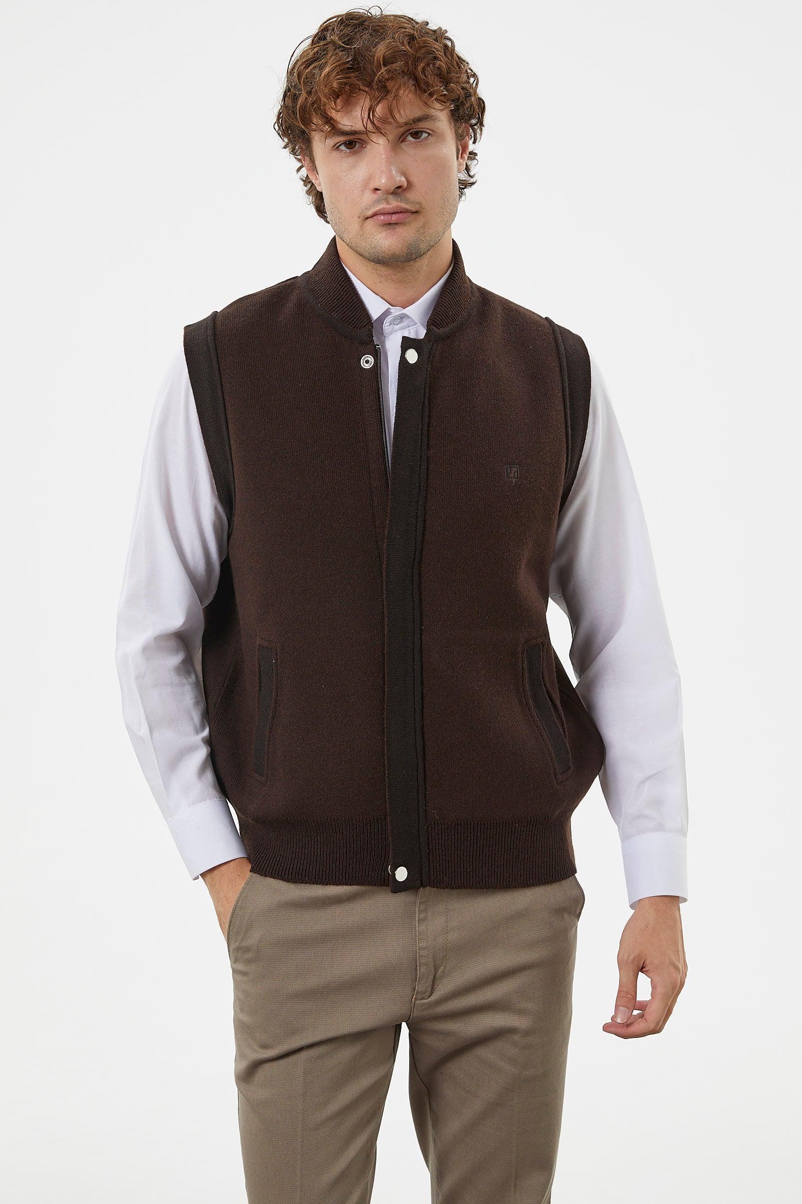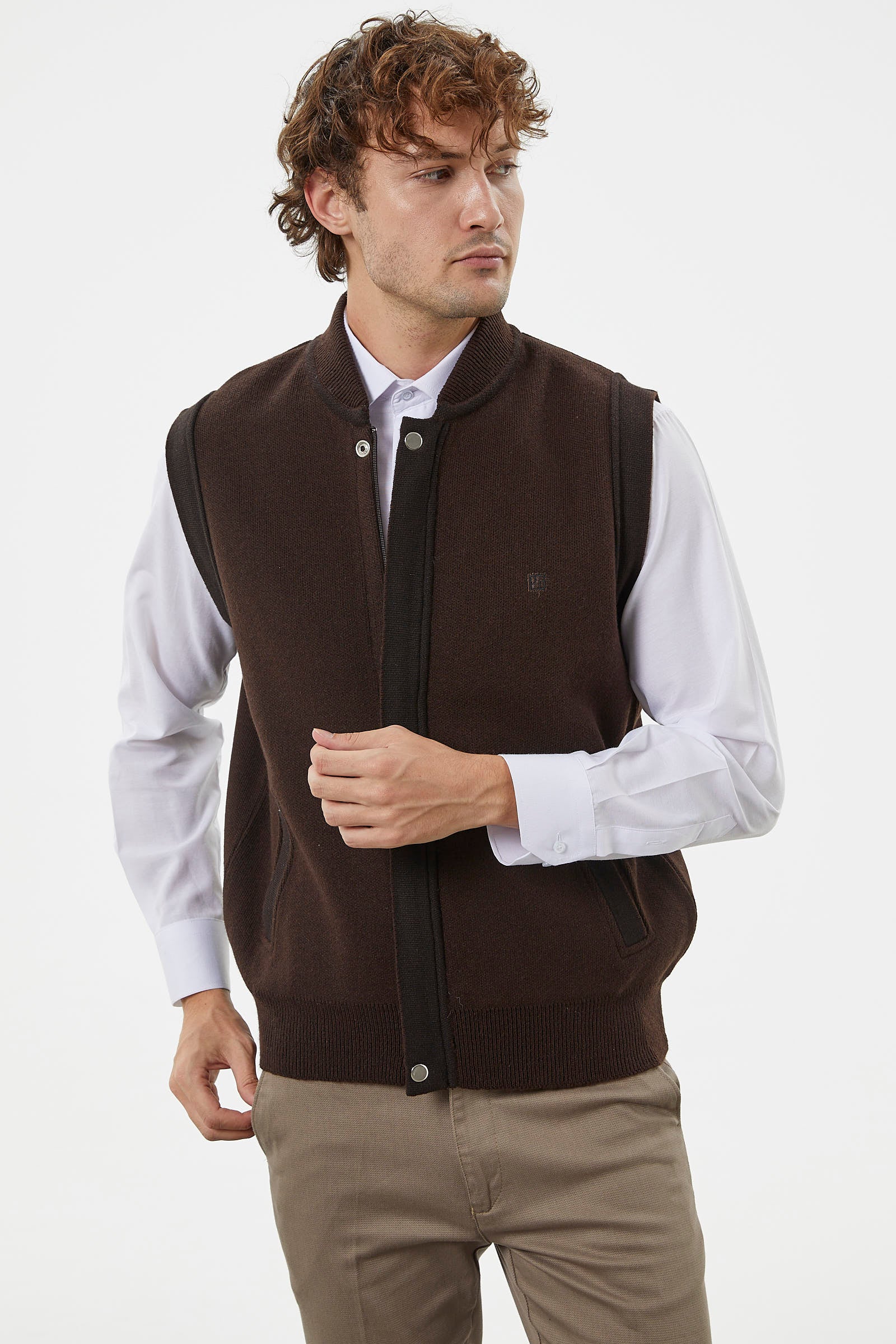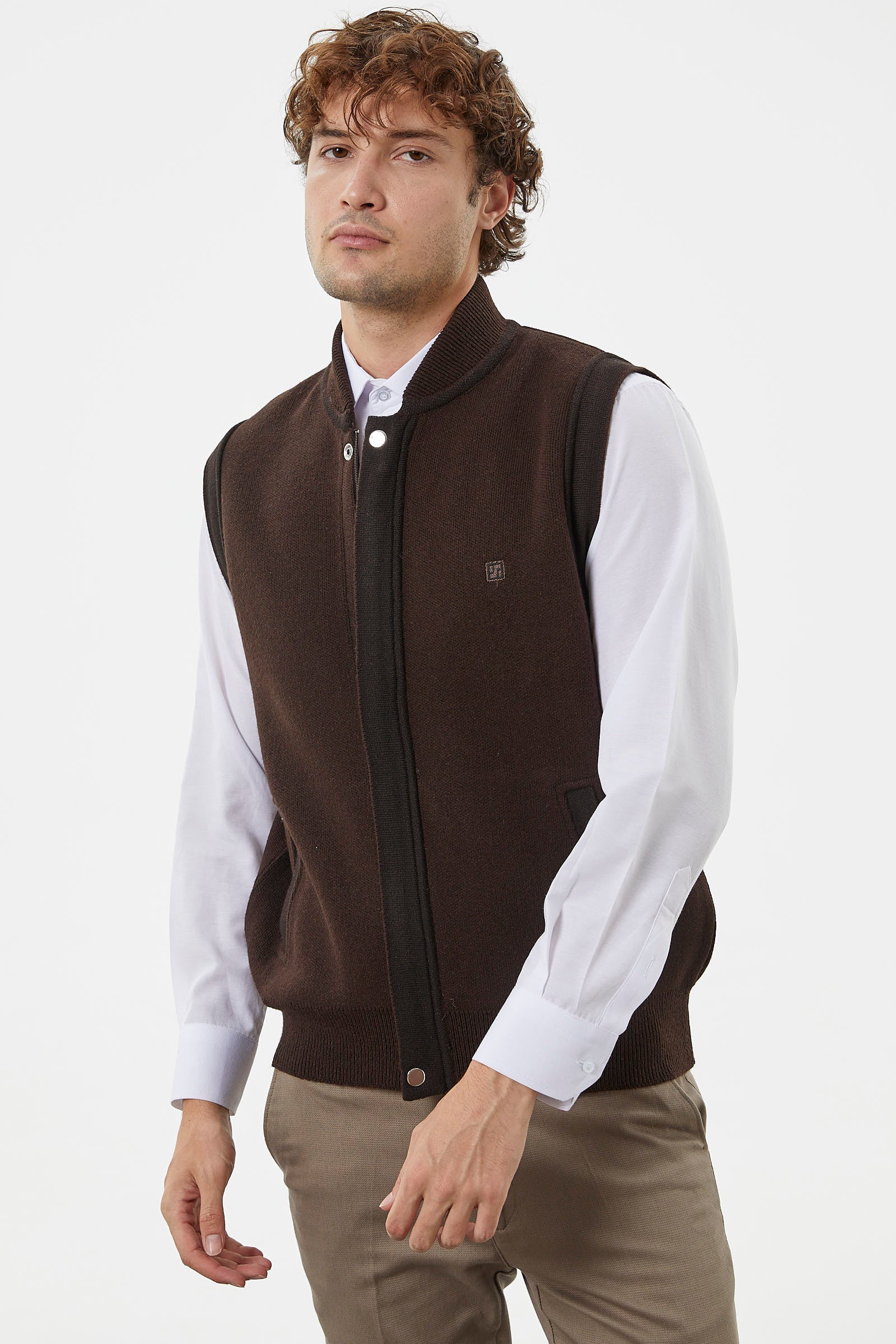 Magnificent Collar Zippered Knitwear Vest - Brown - Black