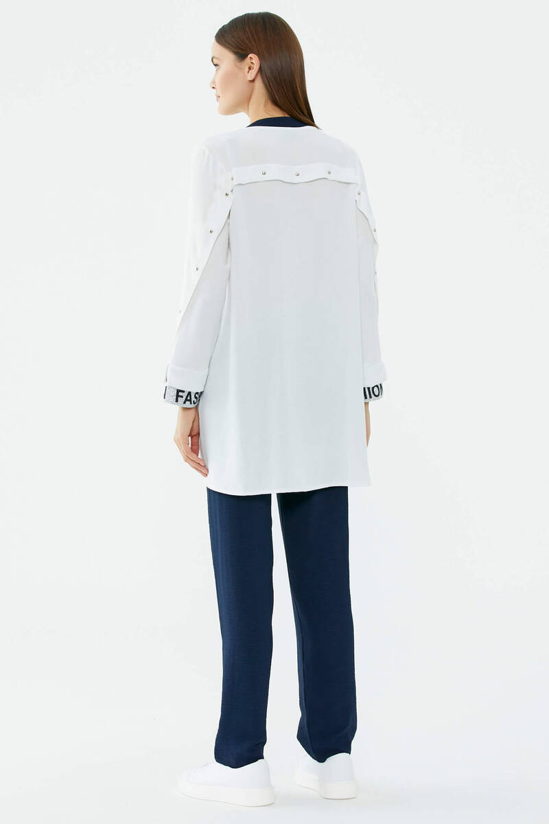 Command Collar Glitter Detailed Wide Mold Crepe Set - Ecru - Navy Blue