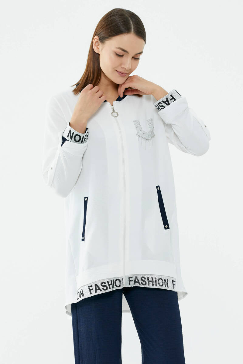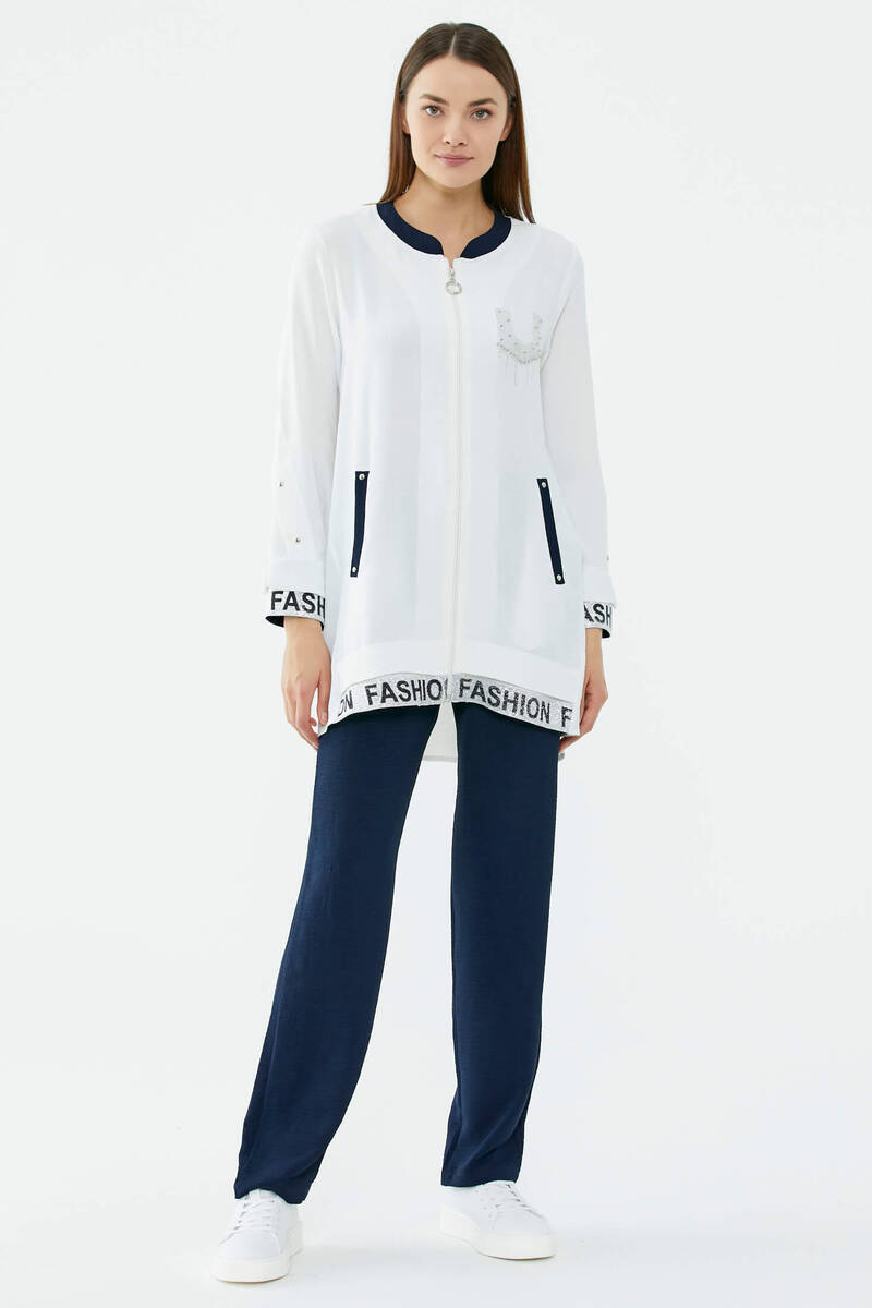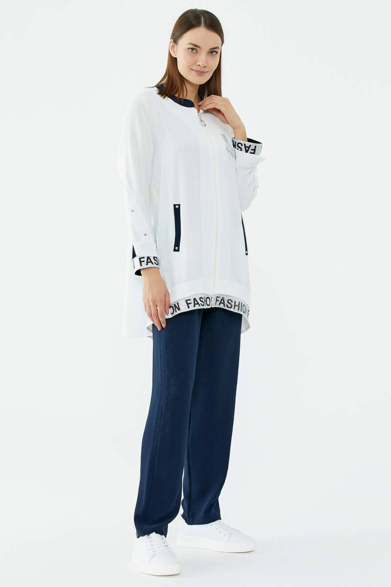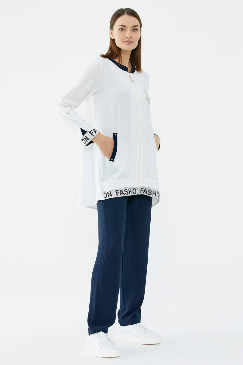 Create impressive looks with the suit consisting of a tunic with long sleeves, a zipper closure offering ease of use, a tunic with a text detail on the cuffs and a hem, and an elasticated waist, tube-leg trousers.