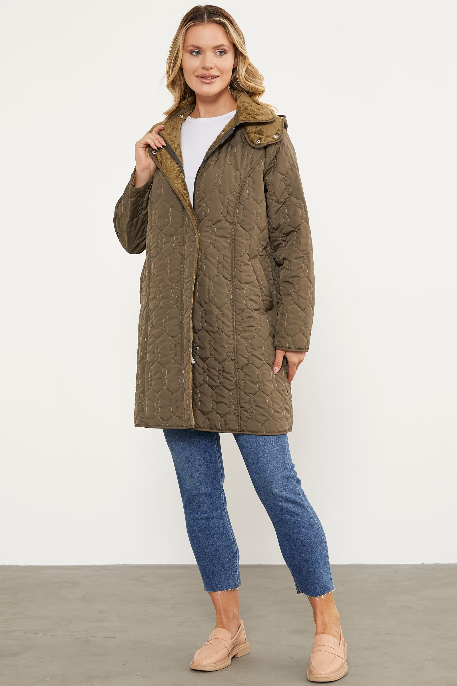 Designed in a plus size, fully plush inside, with a hood, full length snaps and zippers, the quilted coat gives you the opportunity to choose the one that suits your style thanks to its different colors.