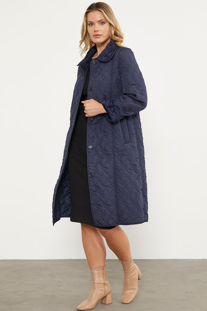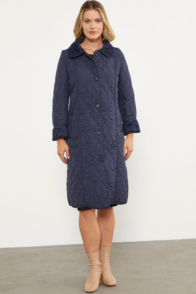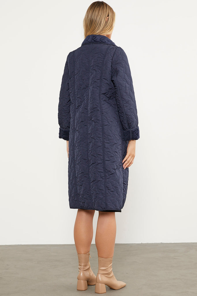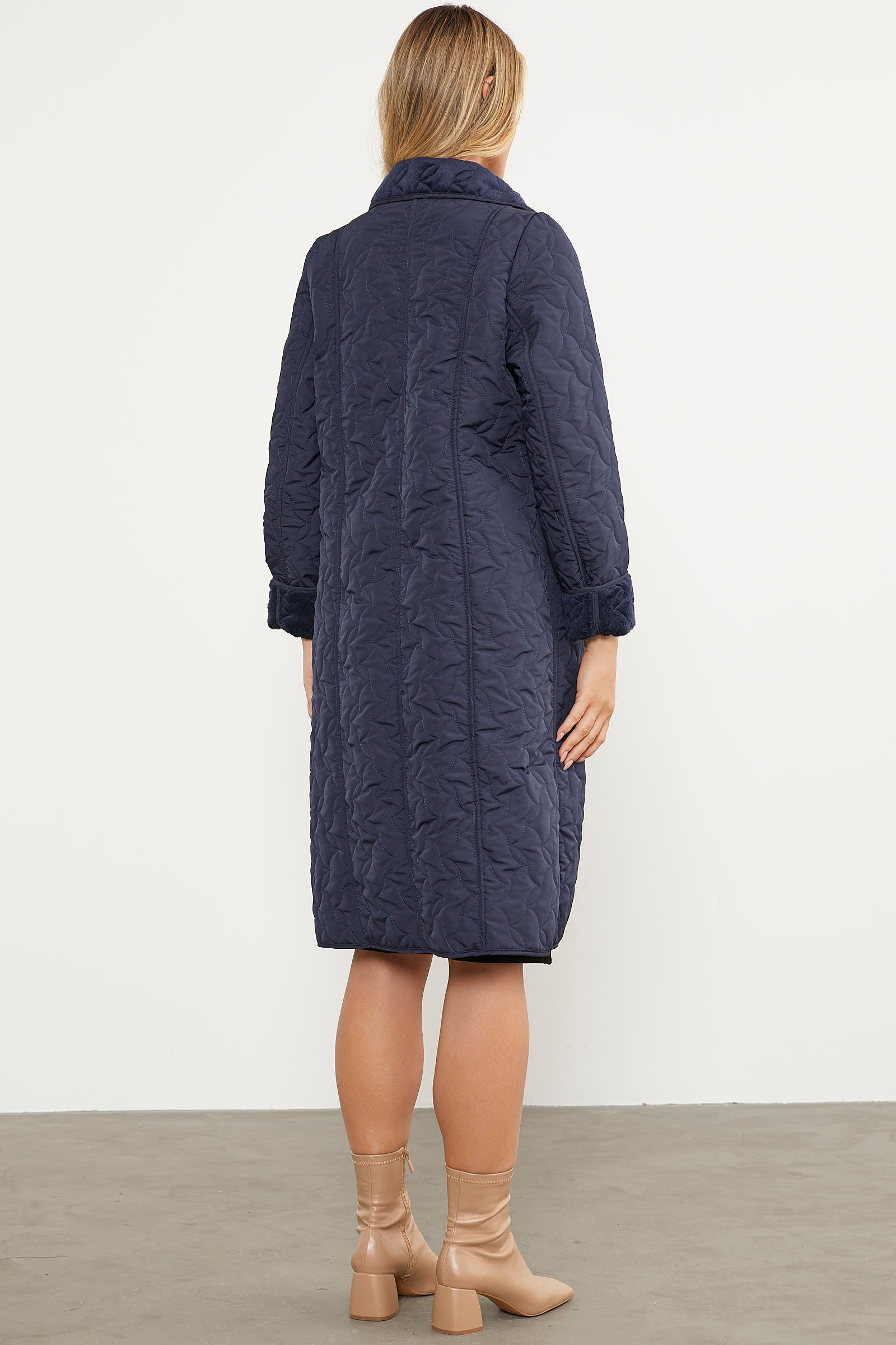 You can feel comfortable in the winter without being affected by the cold with this oversized coat with quilted details, a completely plush interior, and a shearling collar. The product has two side pockets and provides ease of use .