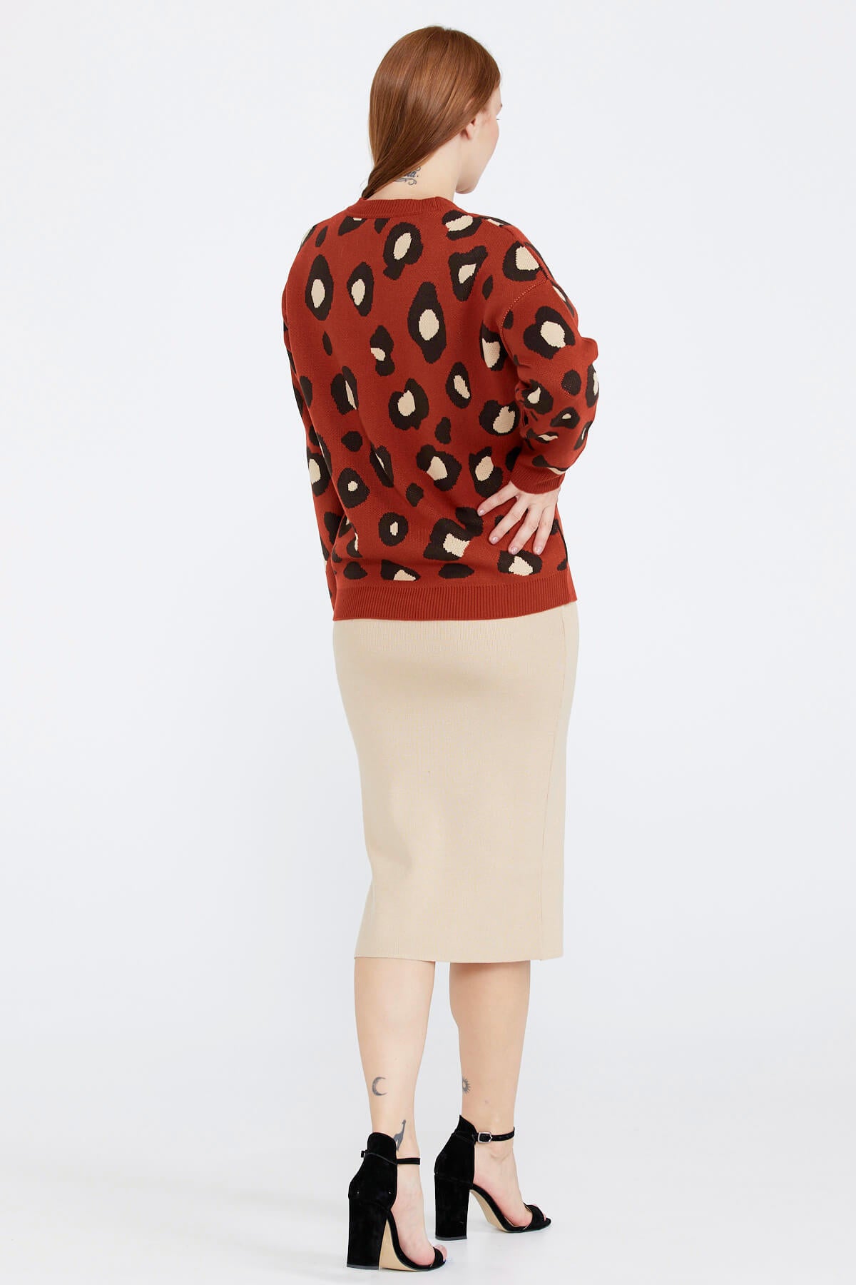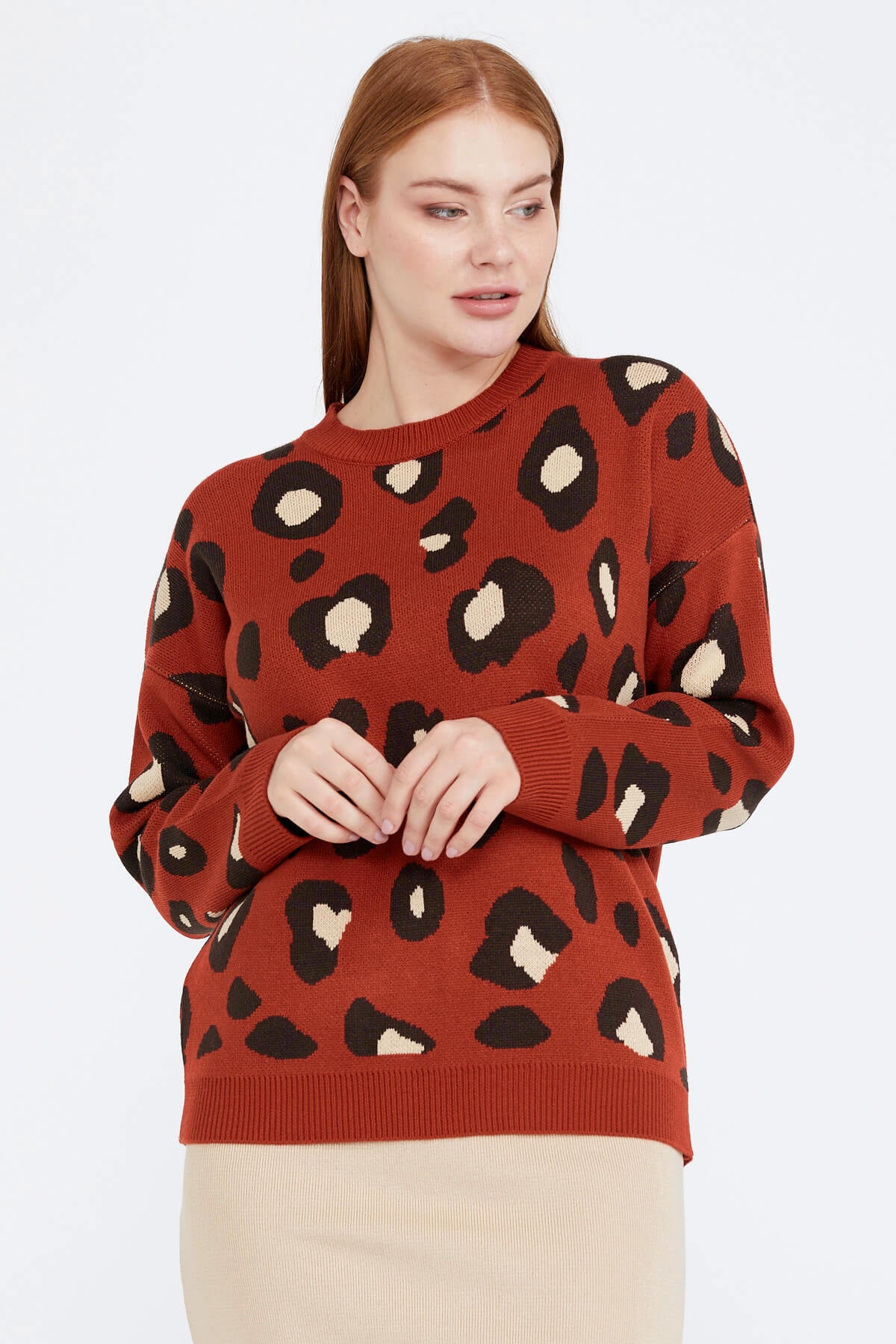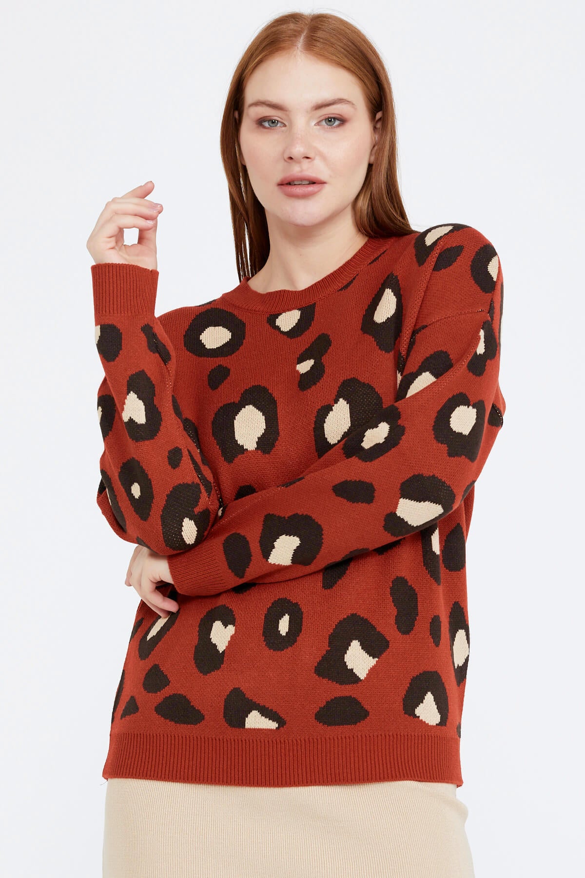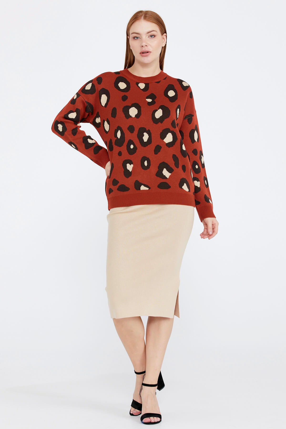 Women's Leopard Patterned Knitwear Sweater - Tan