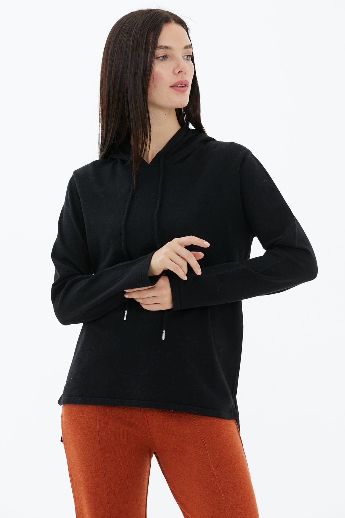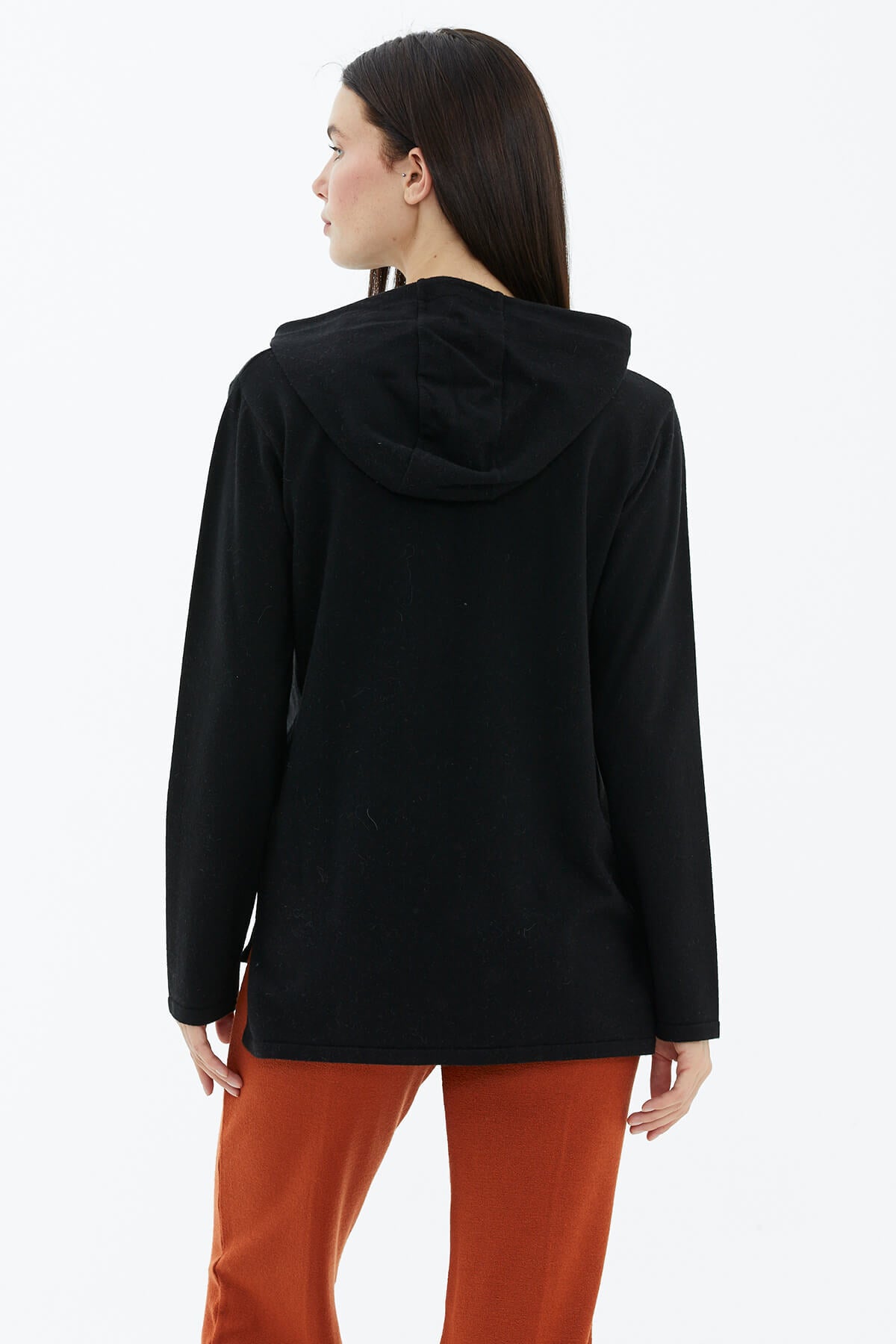 The hooded knit sweater model that will accompany your sporty stylish combinations will make you feel comfortable with its soft texture. You can create a team by combining the long-back hooded sweater with Sementa knit trousers, where you will catch effortless elegance.