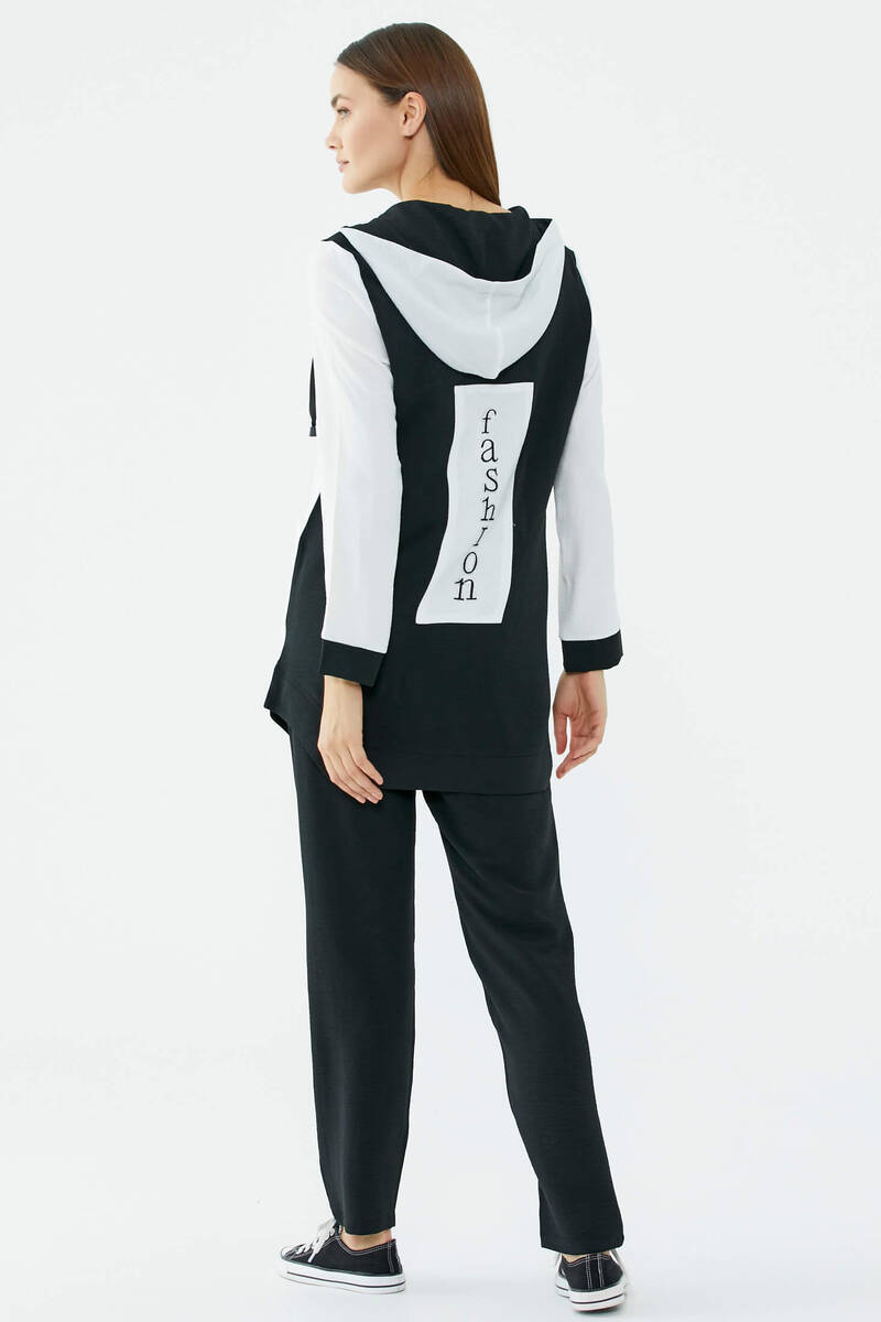 Hooded Double Color Comfort Fit Crepe Set - Ecru - Black