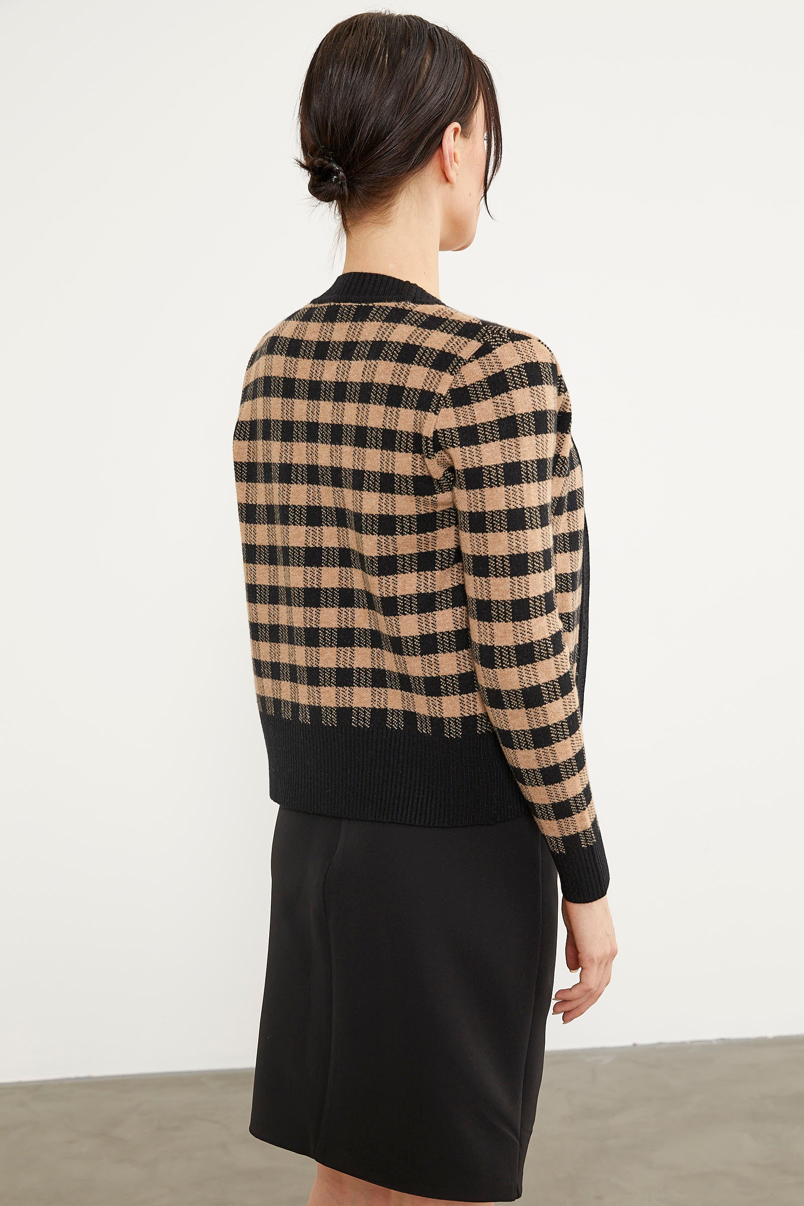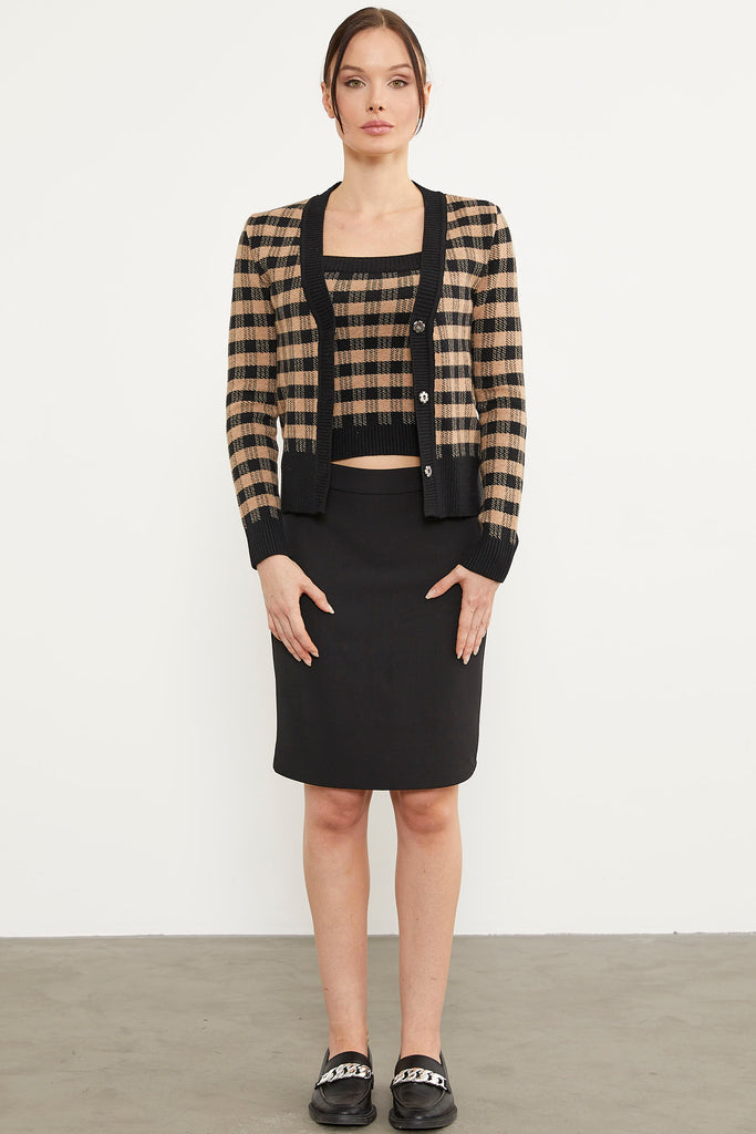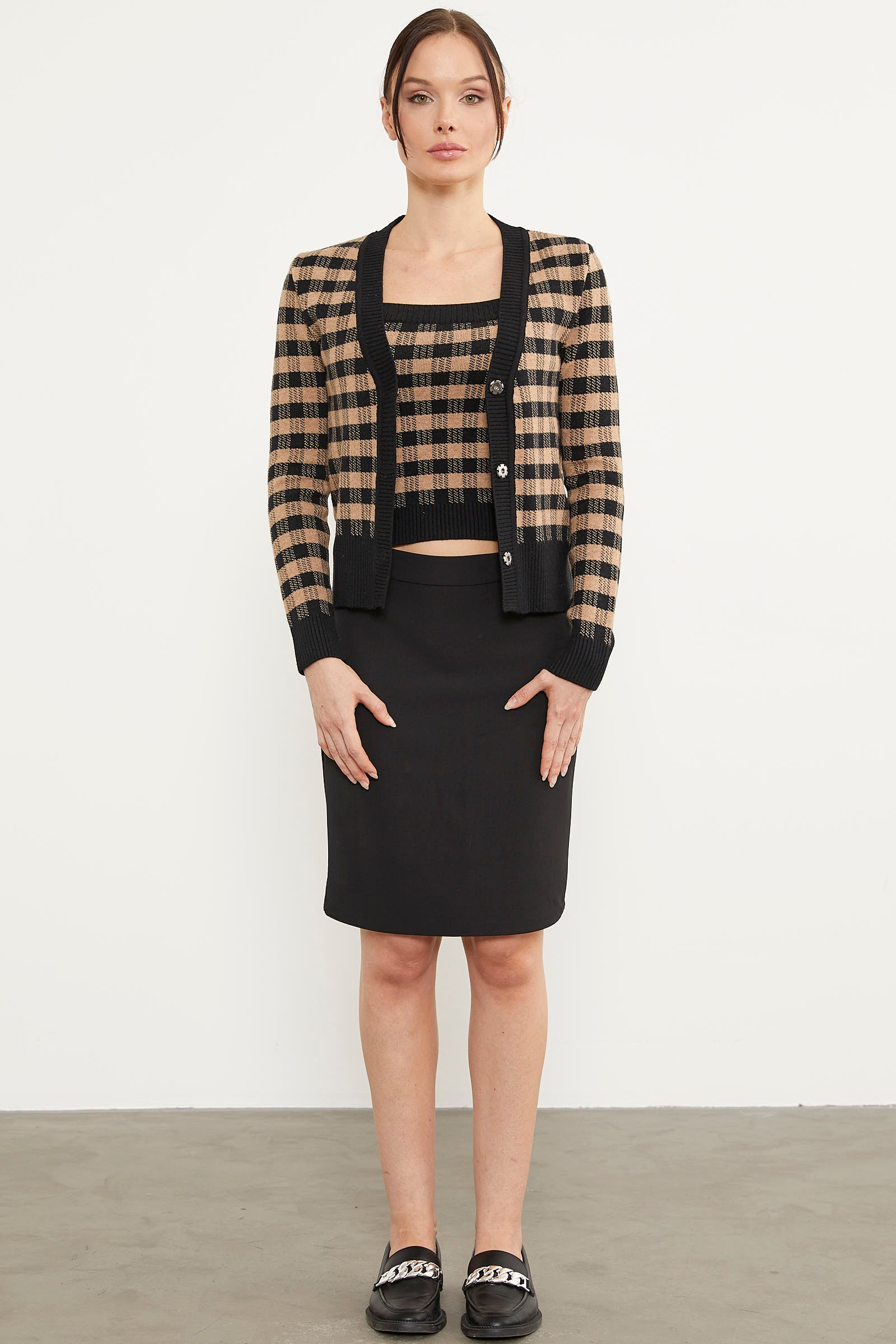 Square Pattern Blouse Cardigan Knitwear Set - Black
