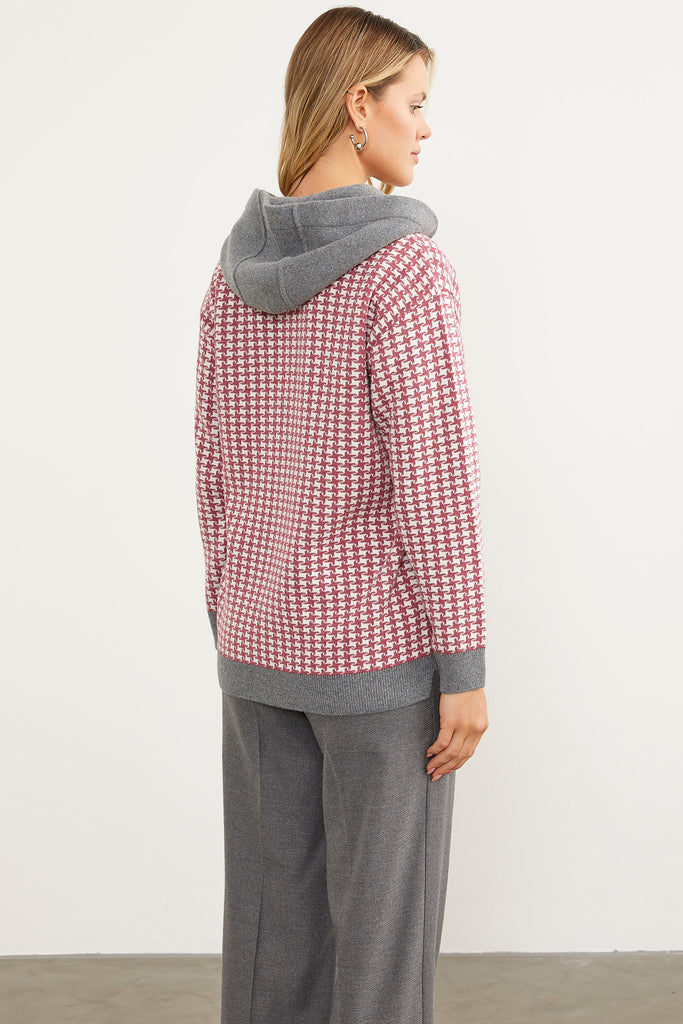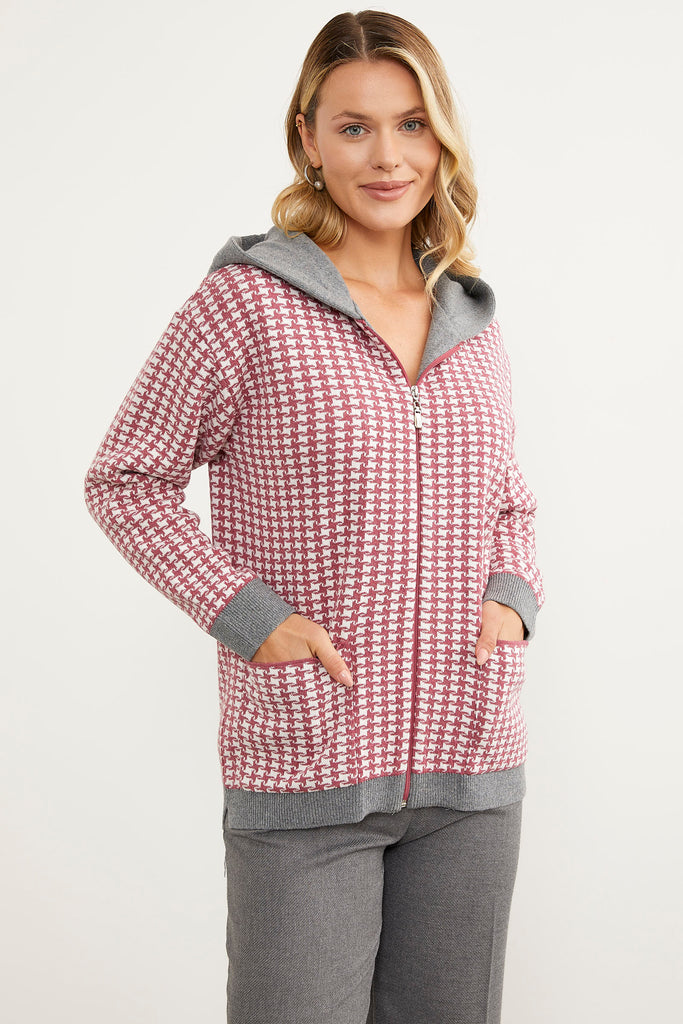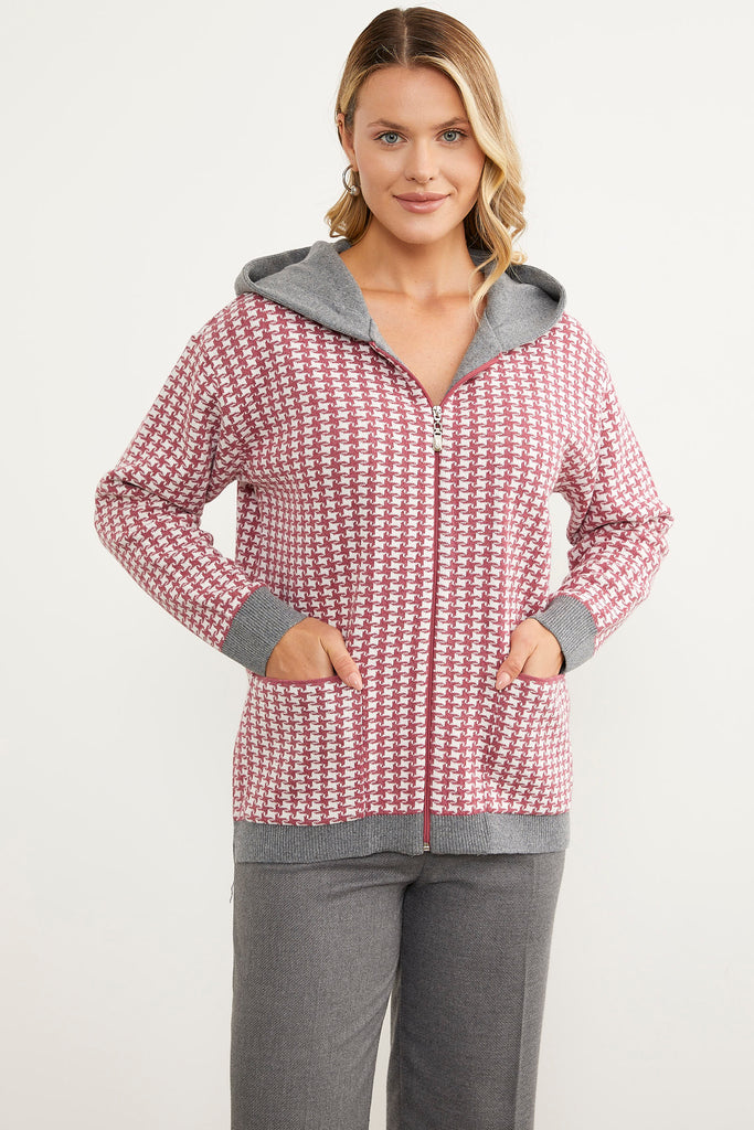 Would you like to add movement to even your simplest looks with colorful houndstooth patterns? The knitted cardigan, which provides ease of use with its zipper and pocket details, will be the piece you will often prefer on cold winter days.