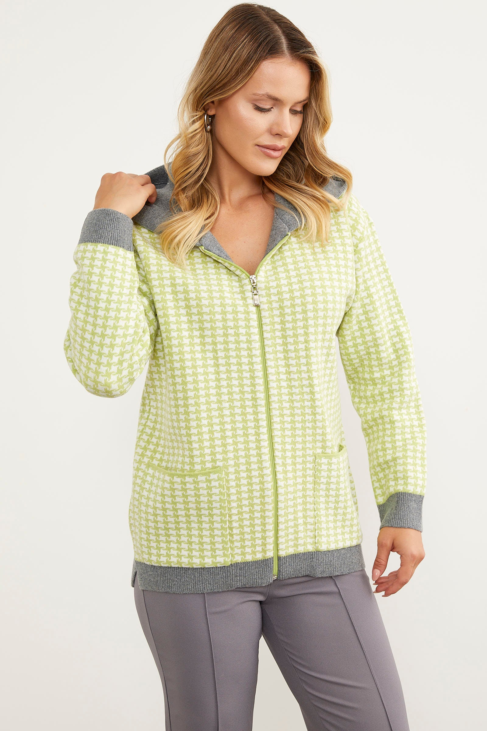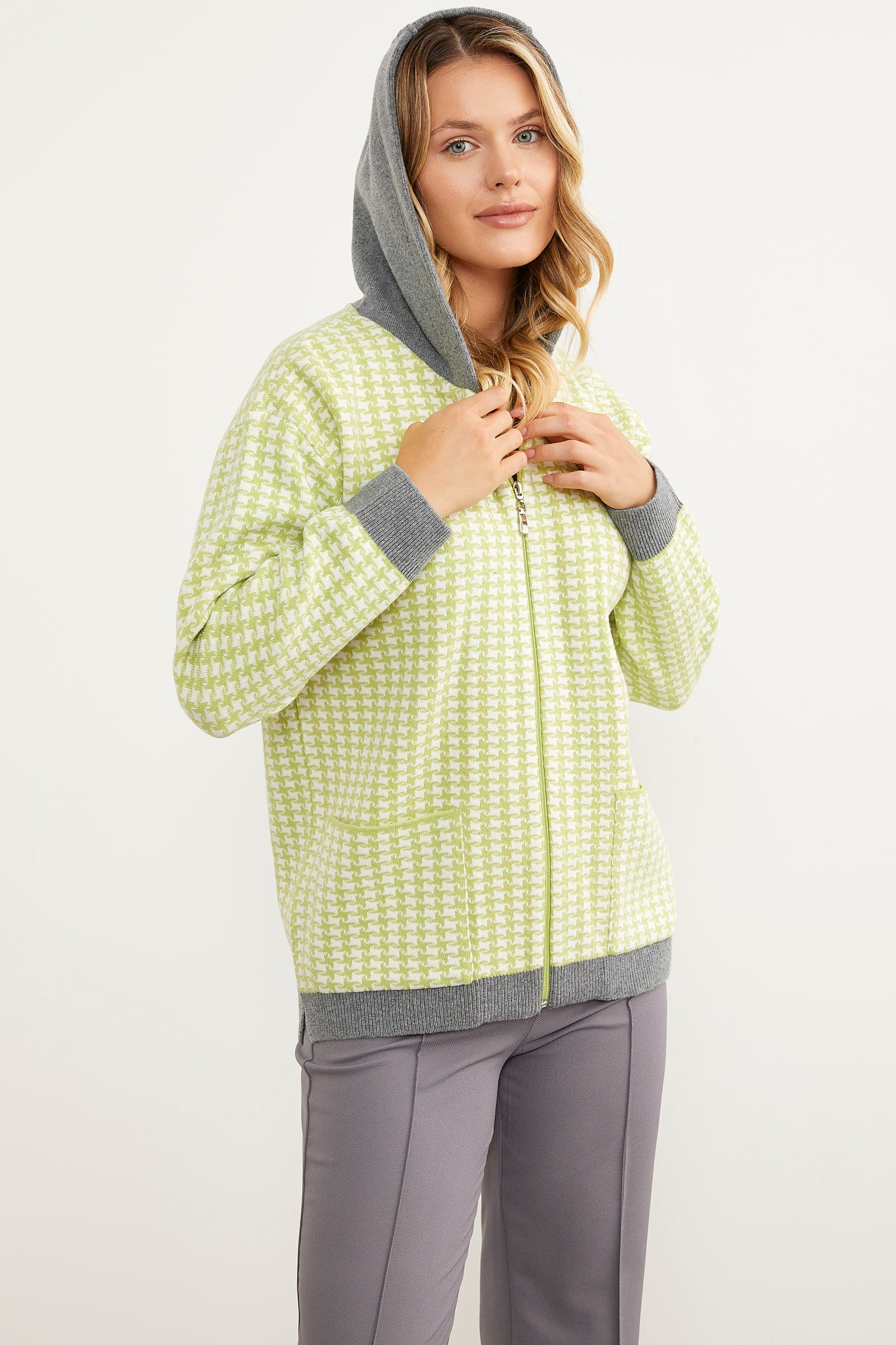 Would you like to add movement to even your simplest looks with colorful houndstooth patterns? The knitted cardigan, which provides ease of use with its zipper and pocket details, will be the piece you will often prefer on cold winter days.