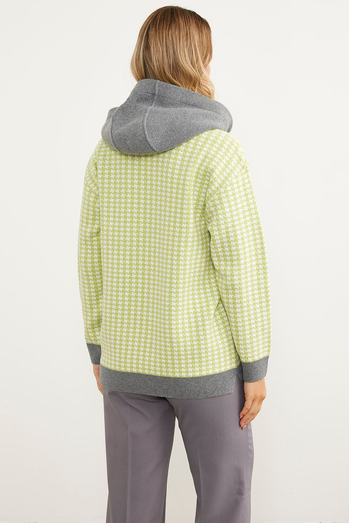 Houndstooth Patterned Pocket Knitted Cardigan - Green