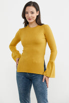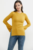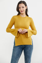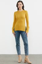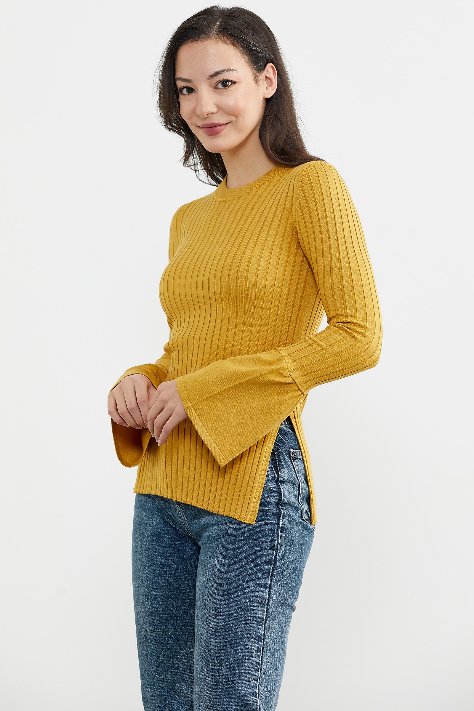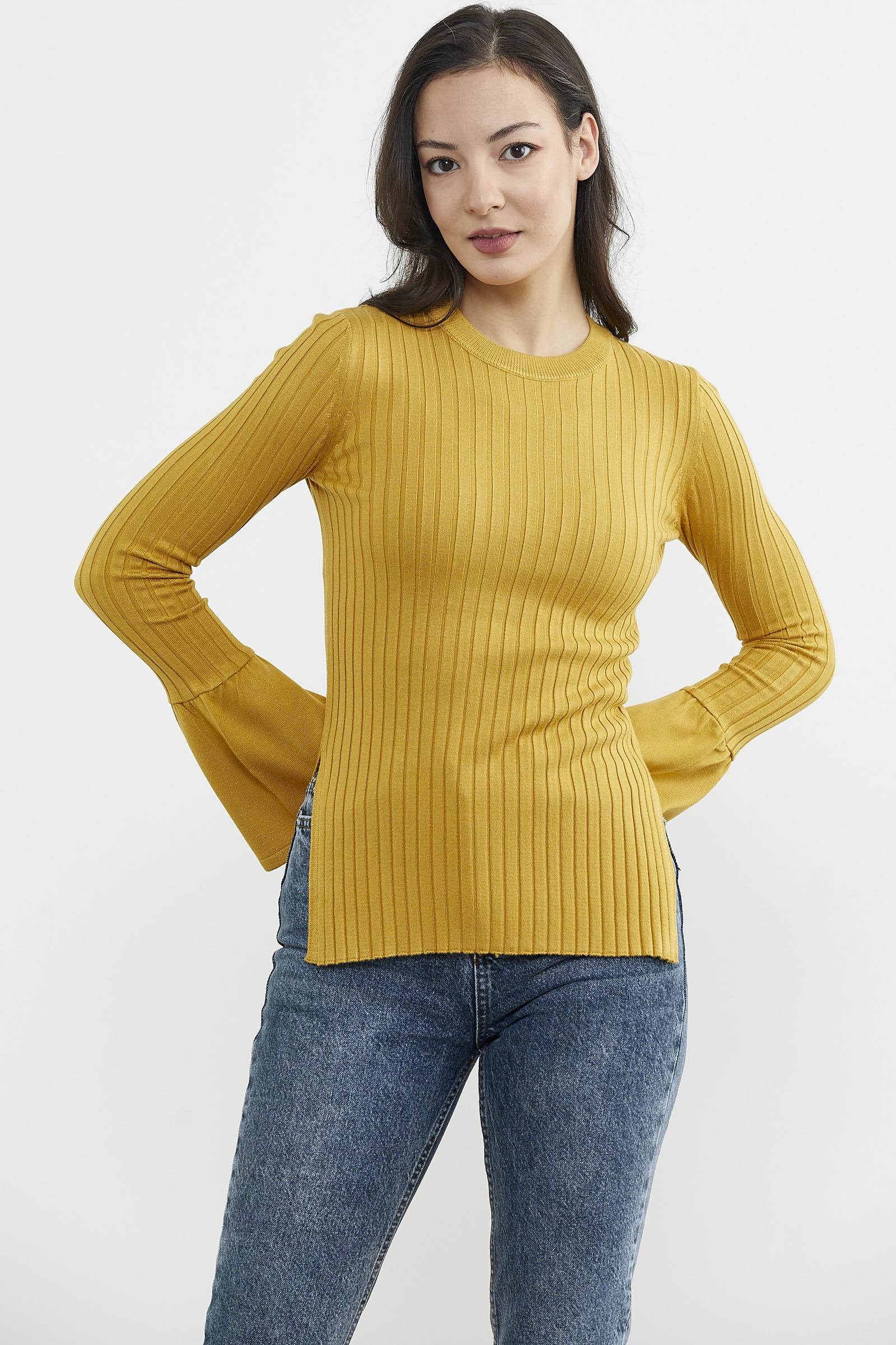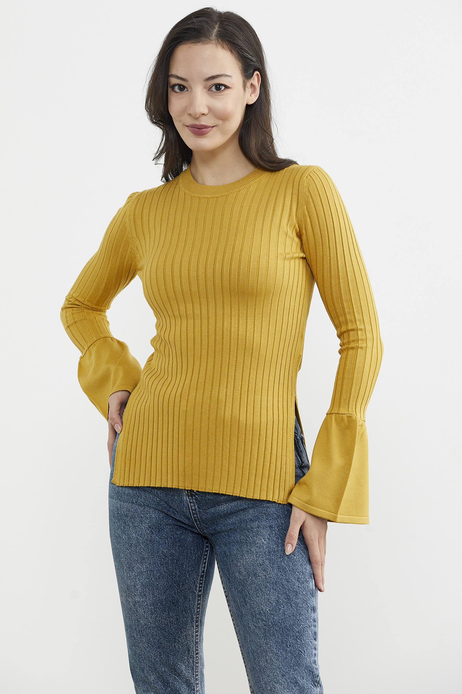 Sleeve Detailed Derbili Knitwear Sweater - Mustard